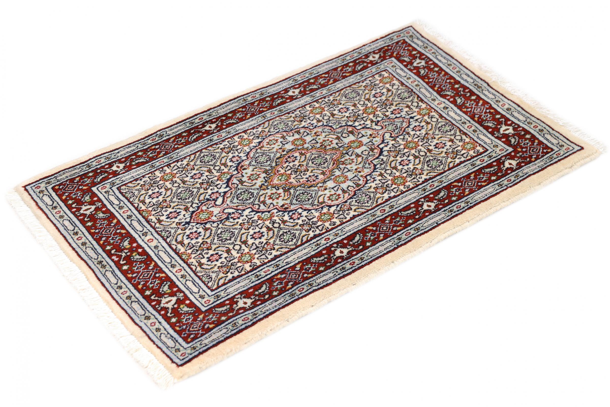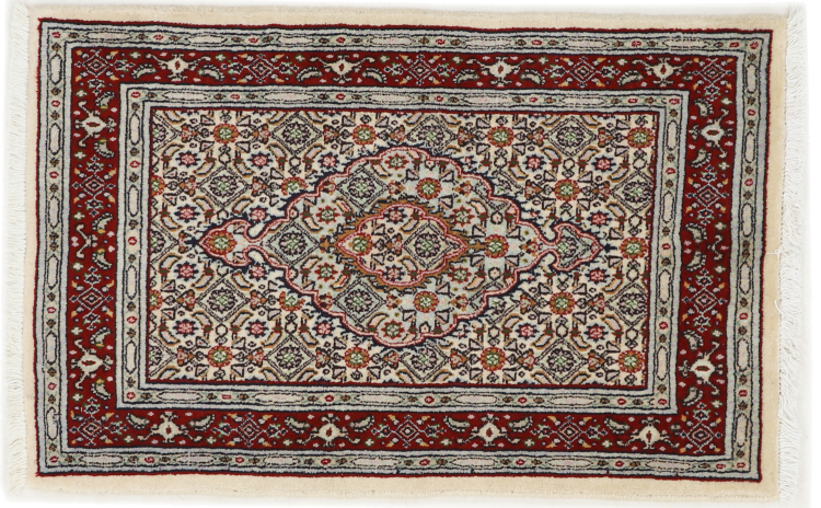 Alfombra número: 141016008820715 Tamaño: 91x58 cm Espesor: alrededor de 10 mm Nudos: 360 000 - 400 000 / m² Elaboración: Anudado a mano Crespón: Lana con seda Urdimbre: Algodón Origen: Persia / Iran Edad: Nuevo Peso: alrededor de 2 kg Cantidad en stock: Única - Solo 1 en stock
