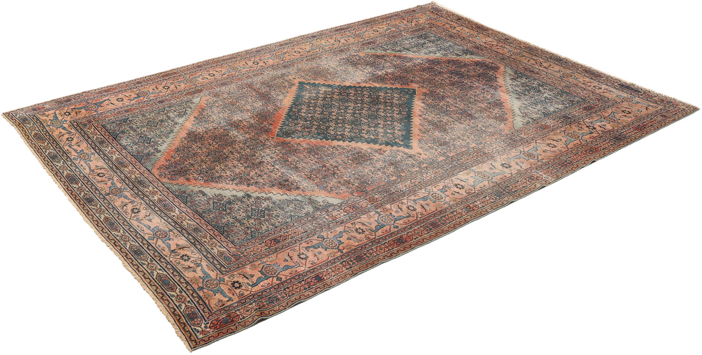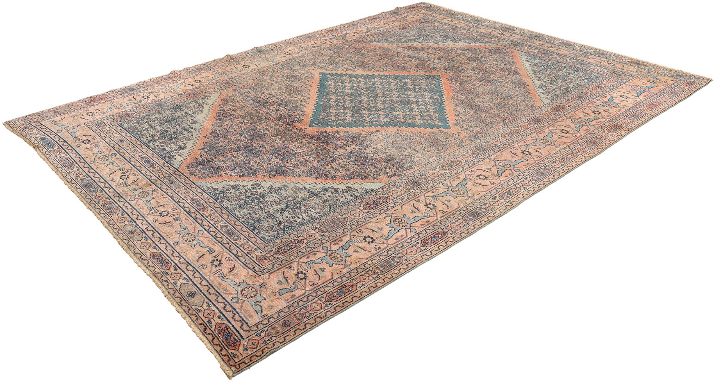 Alfombra número: 316340001291012 Tamaño: 392x273 cm Espesor: alrededor de 10 mm Nudos: 320 000 - 360 000 / m² Elaboración: Anudado a mano Crespón: Lana hilada a mano Urdimbre: Algodón Estado / Conservación Perfecta Origen: Persia / Iran Edad: Antigua, mayor de 80 años Peso: alrededor de 37 kg Cantidad en stock: Única - Solo 1 en stock