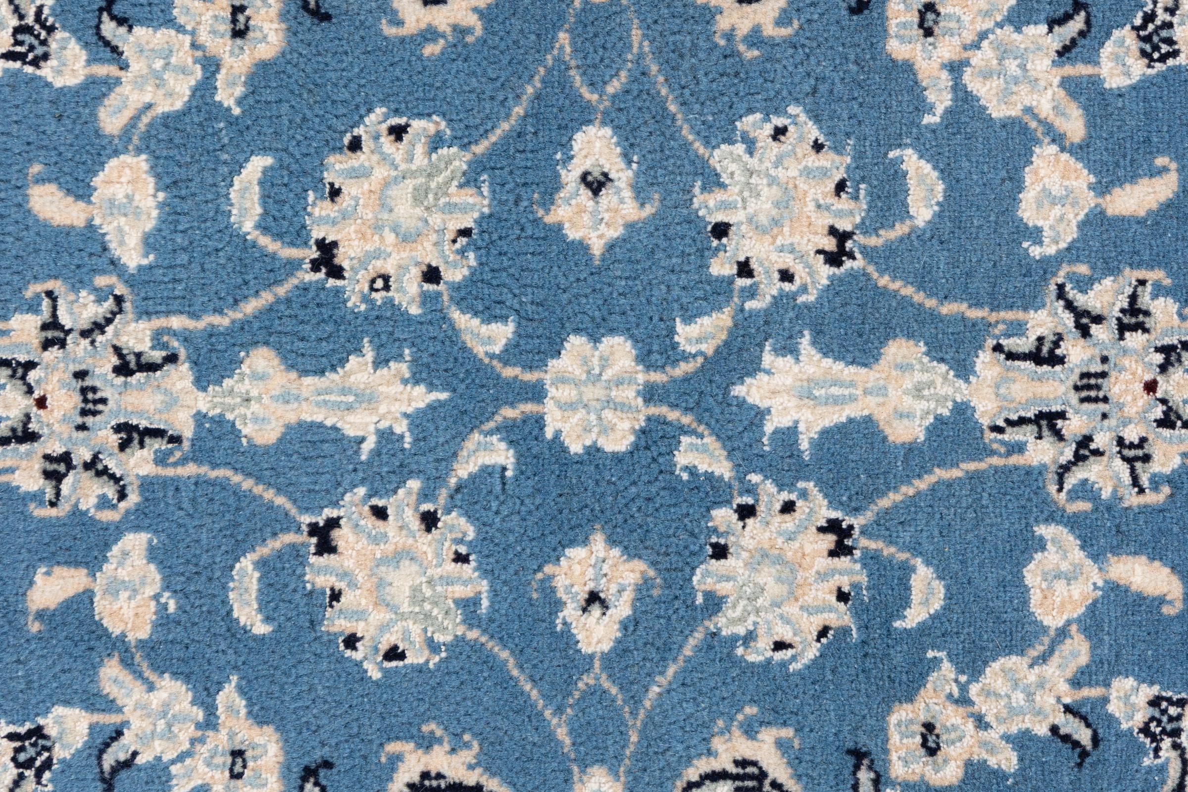 Esta alfombra Nain está clasificada como 9La. Su excelente calidad y su bello diseño oriental con motivos curvilíneos harán las delicias de cualquier comprador. Esta alfombra persa fue anudada a mano en la ciudad de Nain, situada en el extremo occidental del desierto de Dasht-e-Kavir, con lana de alta calidad y seda natural. Las alfombras Nain 9La son claramente más finas que las 12La y ya muestran bellos detalles.