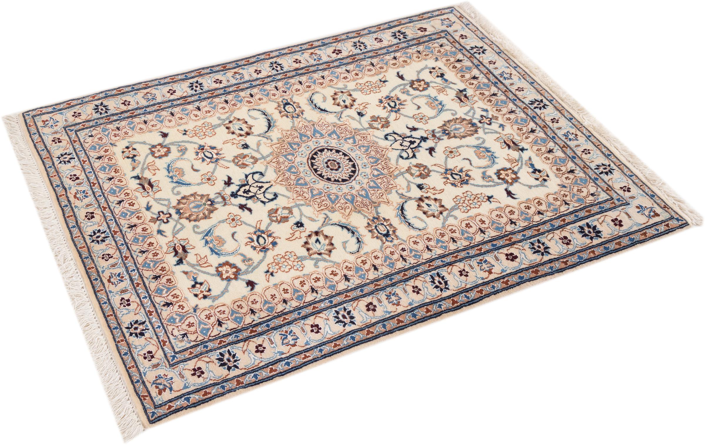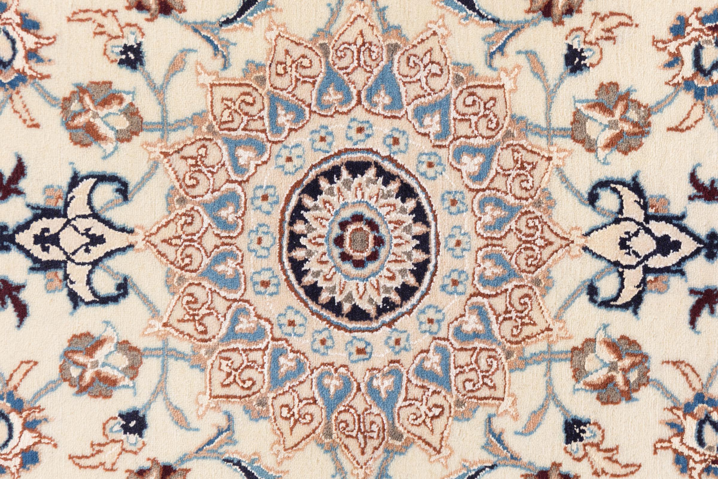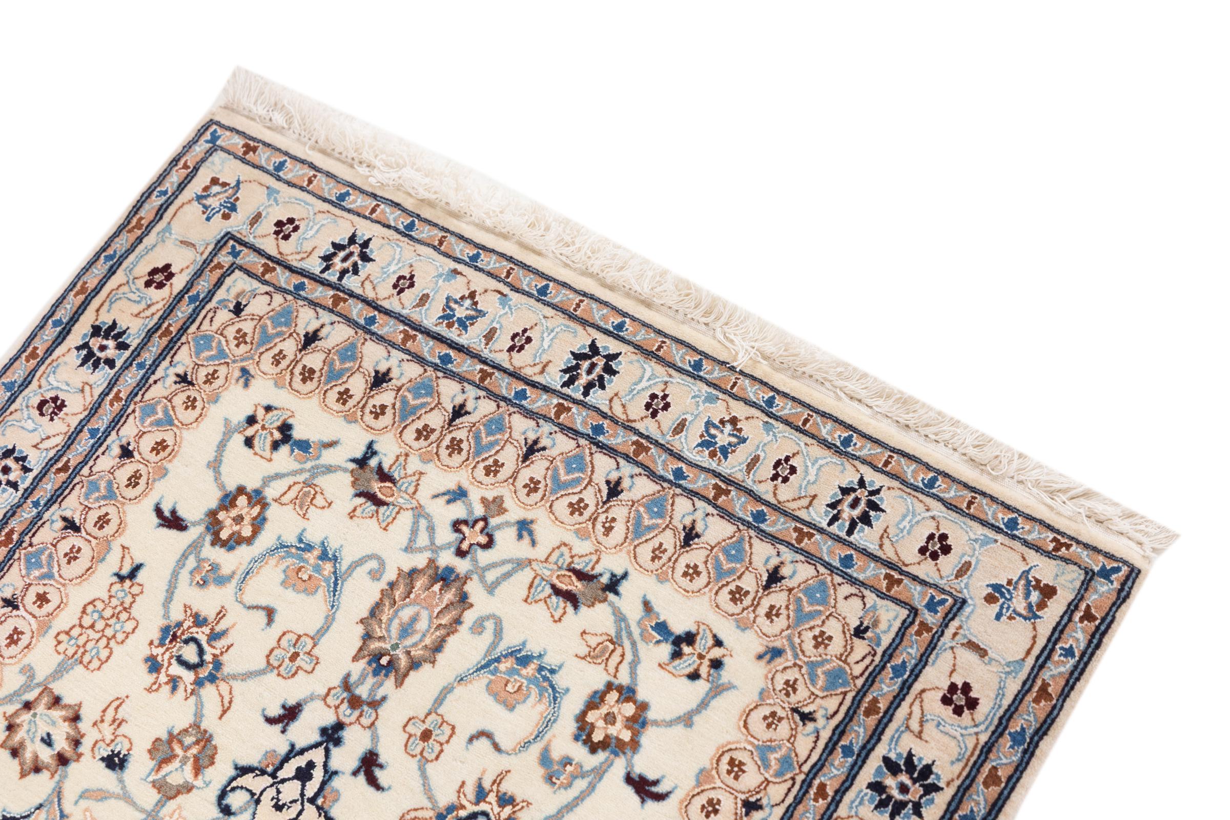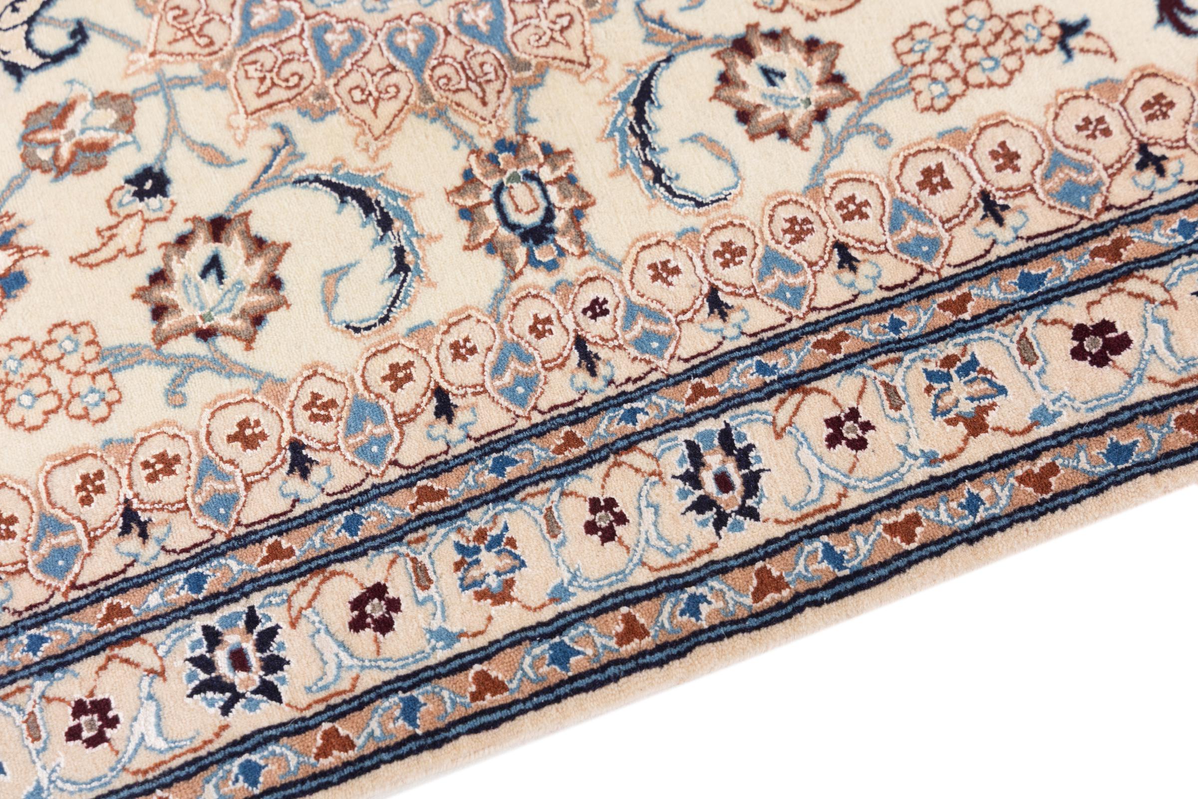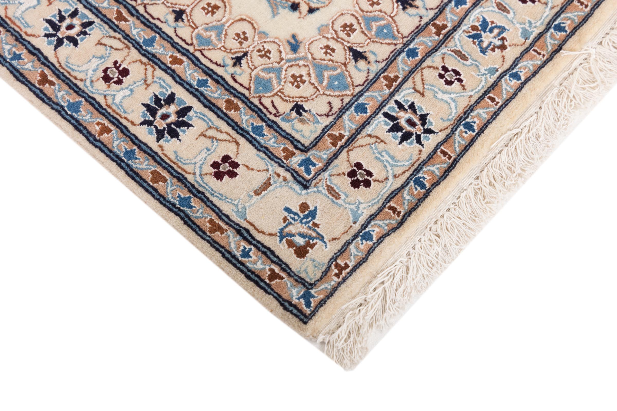 Esta alfombra Nain aporta una combinación perfecta de calidad, tradición y un diseño inconfundible. Fue elaborada en la ciudad de Nain, con lana de corcho de alta calidad y anudada a mano con seda natural. A los amantes de las valiosas alfombras iraníes les encantará esta alfombra persa. Con las alfombras Nain de la clasificación 6La y 4La no existe lugar para errores.