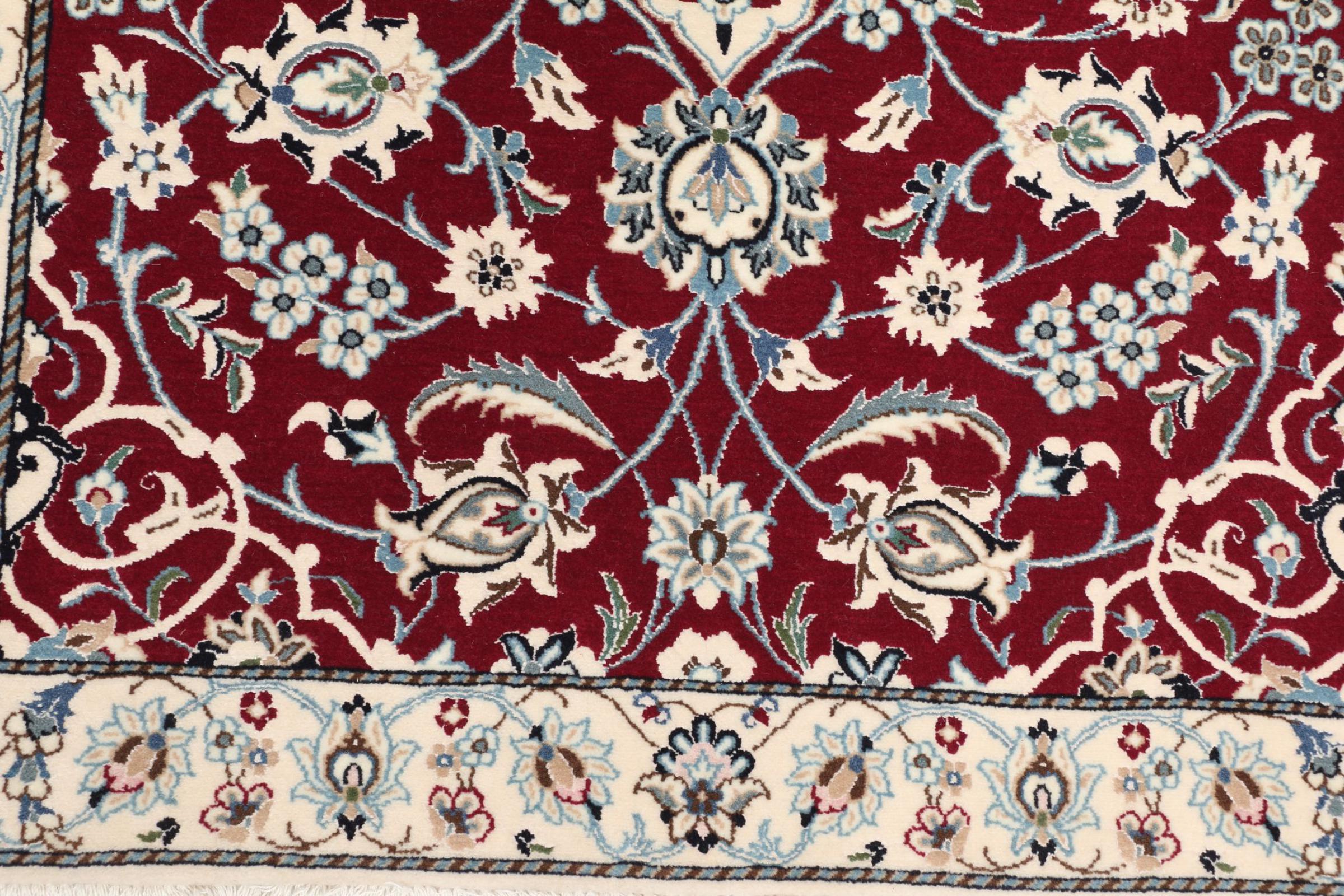 Esta alfombra Nain aporta una combinación perfecta de calidad, tradición y un diseño inconfundible. Fue elaborada en la ciudad de Nain, con lana de corcho de alta calidad y anudada a mano con seda natural. A los amantes de las valiosas alfombras iraníes les encantará esta alfombra persa. Con las alfombras Nain de la clasificación 6La y 4La no existe lugar para errores.