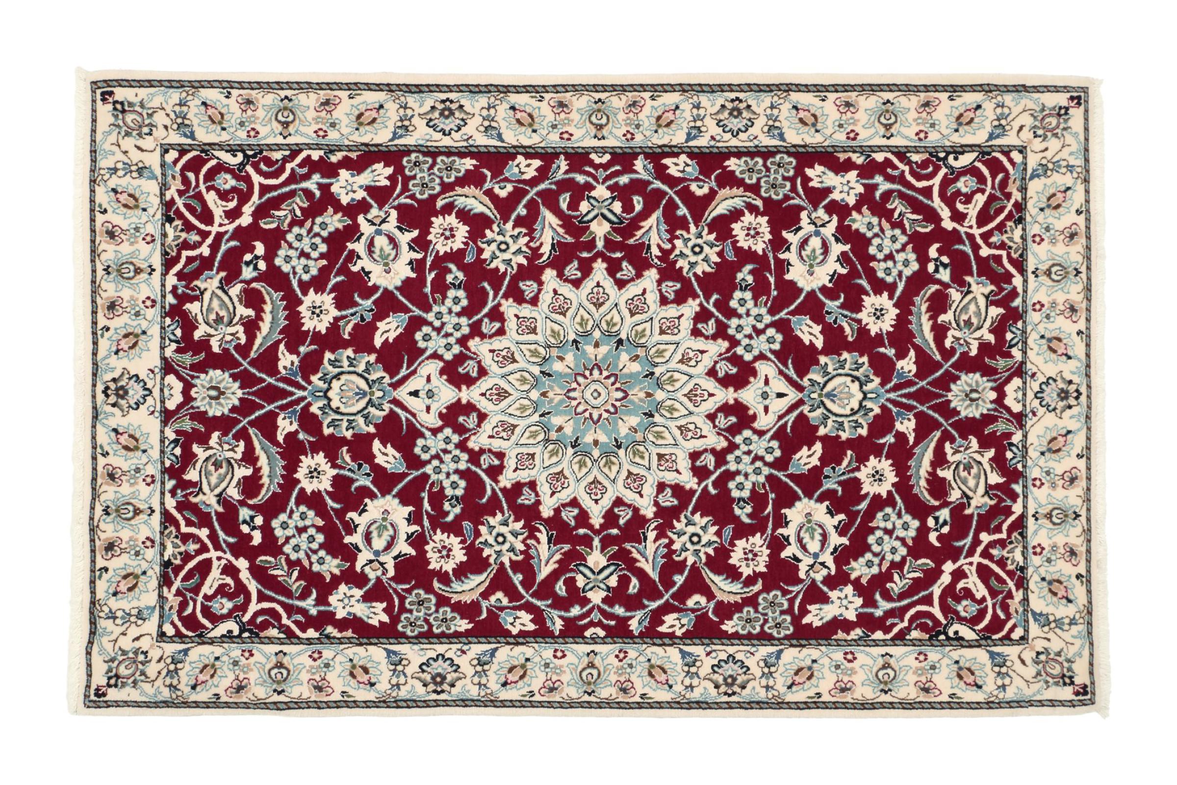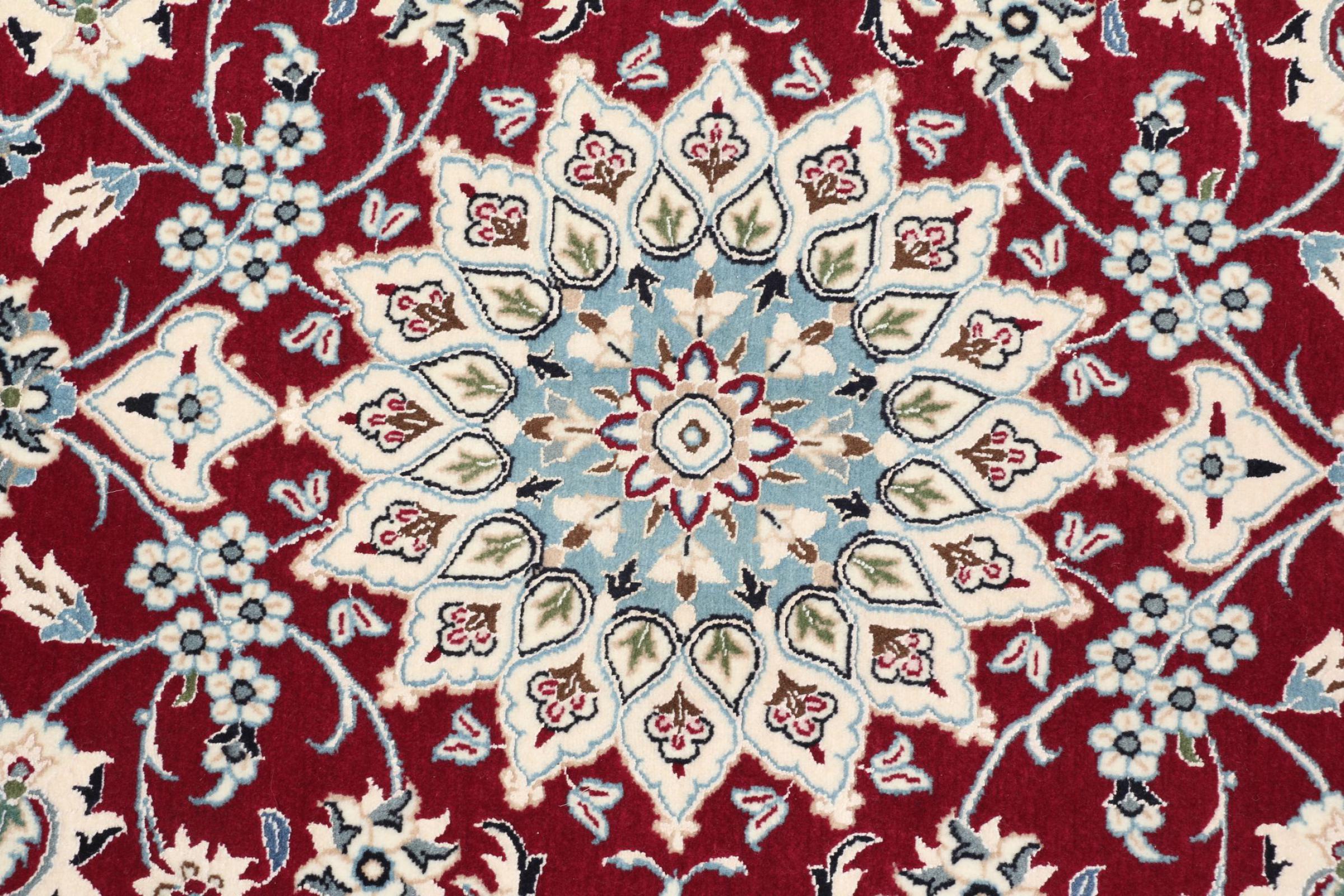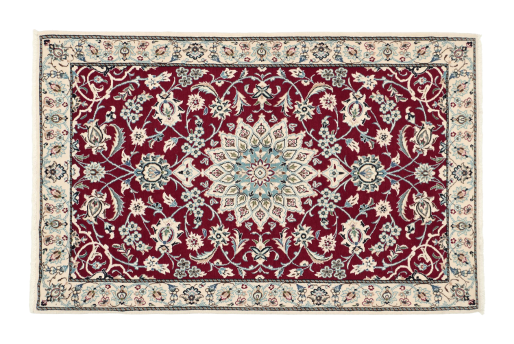Las alfombras de la ciudad de Nain, en la frontera de uno de los mayores desiertos de Irán, están entre las alfombras persas más famosas del mundo. Su diseño típico es inconfundible con adornos florales, un medallón central y tonos beige y rojo o azul. Gracias a sus designaciones 4La, 6La, 9La y 12La, las sutilezas de una alfombra de Nain se pueden ver a simple vista. Cuanto más bajo sea el número "La", más alta es la densidad del nudo y por lo tanto más fina es la alfombra.