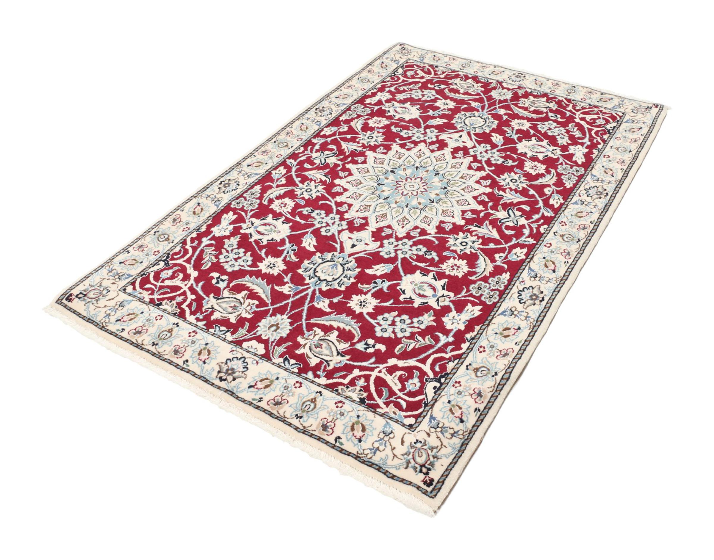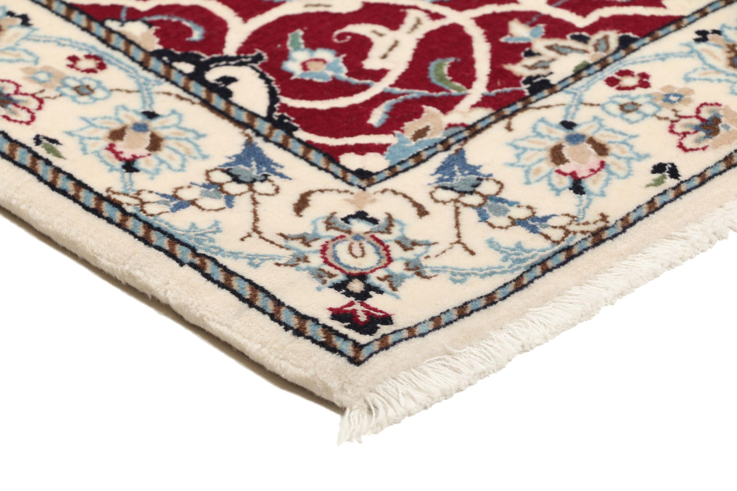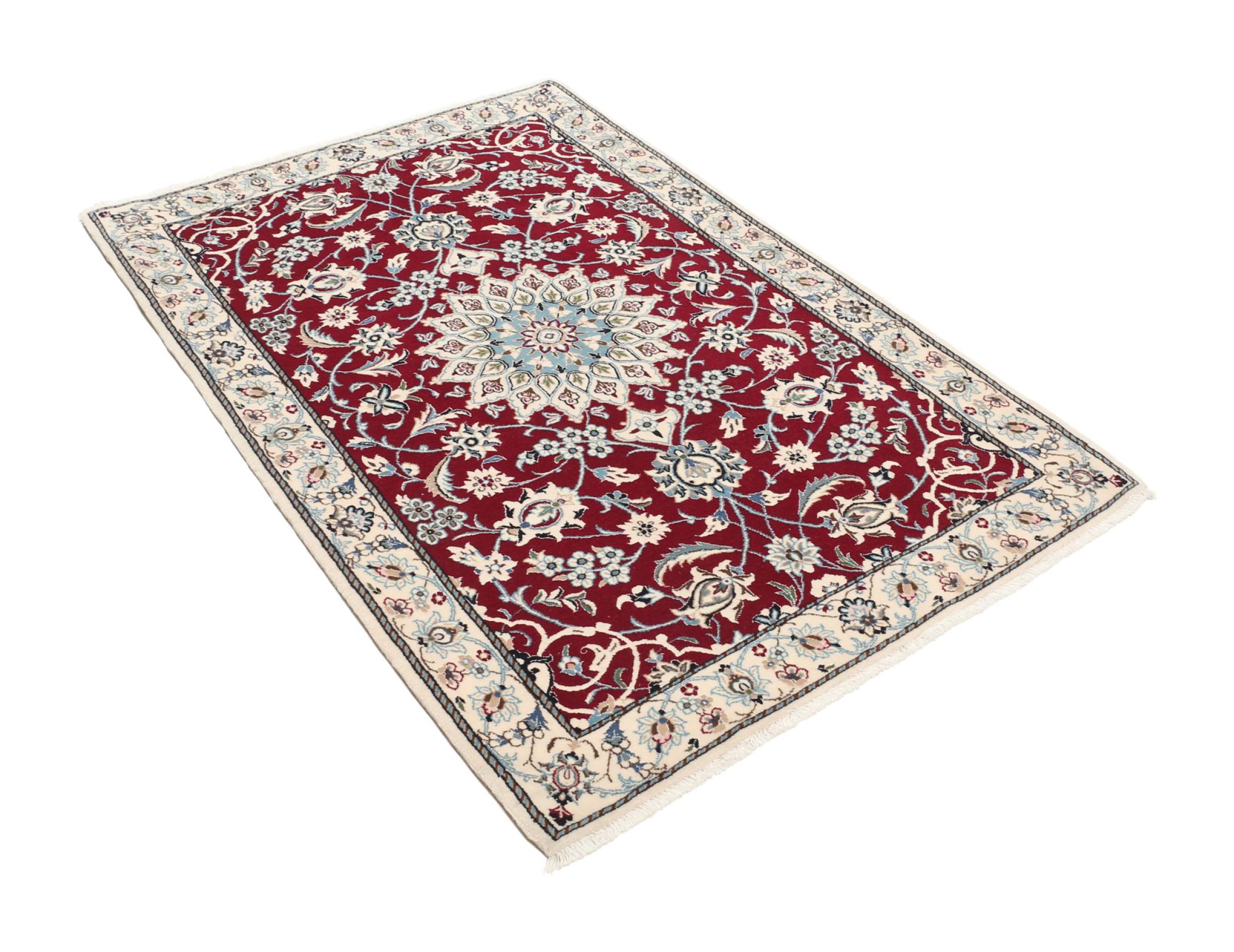 Las alfombras de la ciudad de Nain, en la frontera de uno de los mayores desiertos de Irán, están entre las alfombras persas más famosas del mundo. Su diseño típico es inconfundible con adornos florales, un medallón central y tonos beige y rojo o azul. Gracias a sus designaciones 4La, 6La, 9La y 12La, las sutilezas de una alfombra de Nain se pueden ver a simple vista. Cuanto más bajo sea el número "La", más alta es la densidad del nudo y por lo tanto más fina es la alfombra.