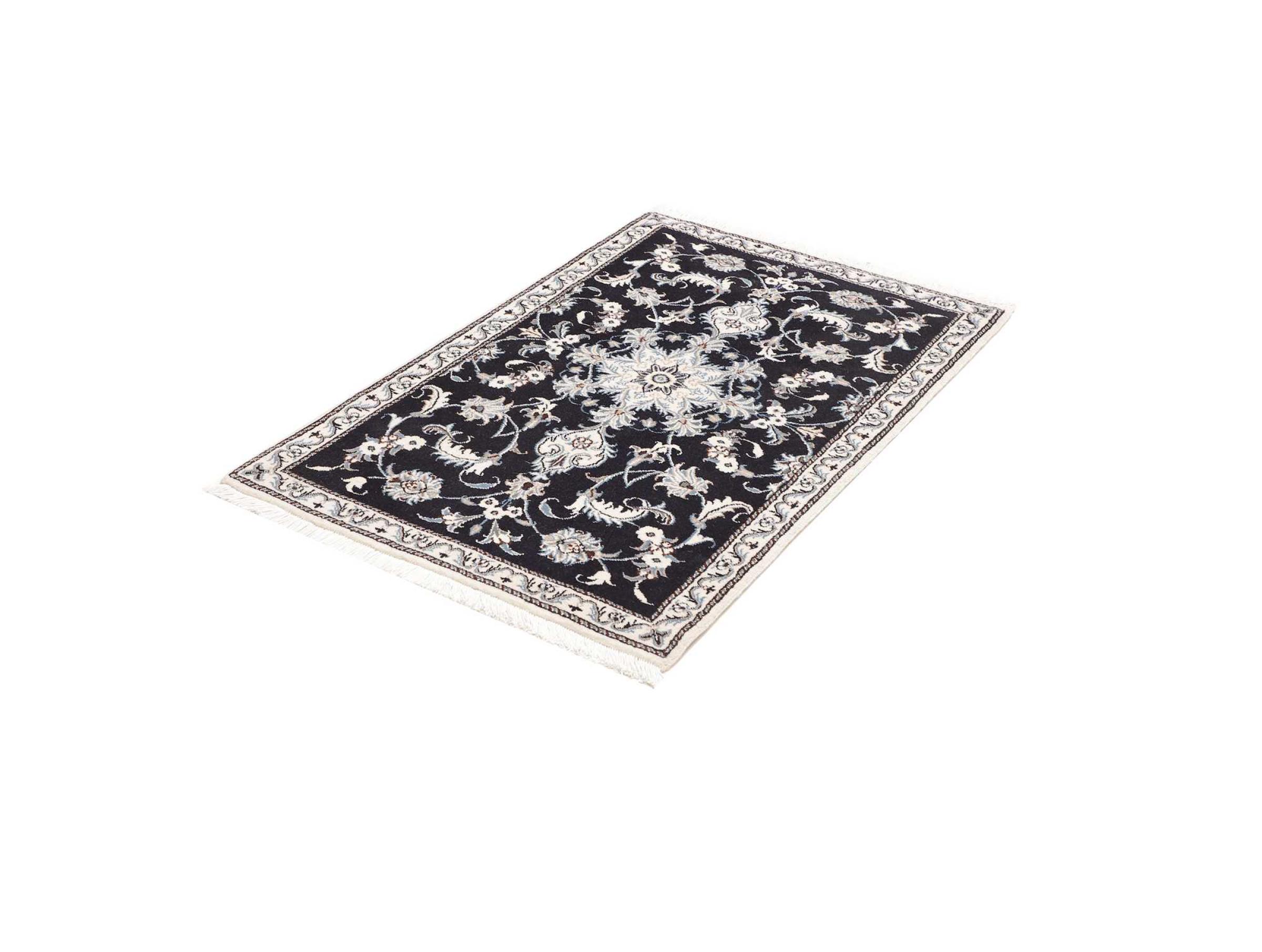 Alfombra número: 313019005649269 Tamaño: 138x93 cm Espesor: alrededor de 12 mm Nudos: 128 000 - 160 000 / m² Elaboración: Anudado a mano Crespón: Lana con seda Urdimbre: Algodón Origen: Persia / Iran Edad: Nuevo Peso: alrededor de 5 kg Cantidad en stock: Única - Solo 1 en stock