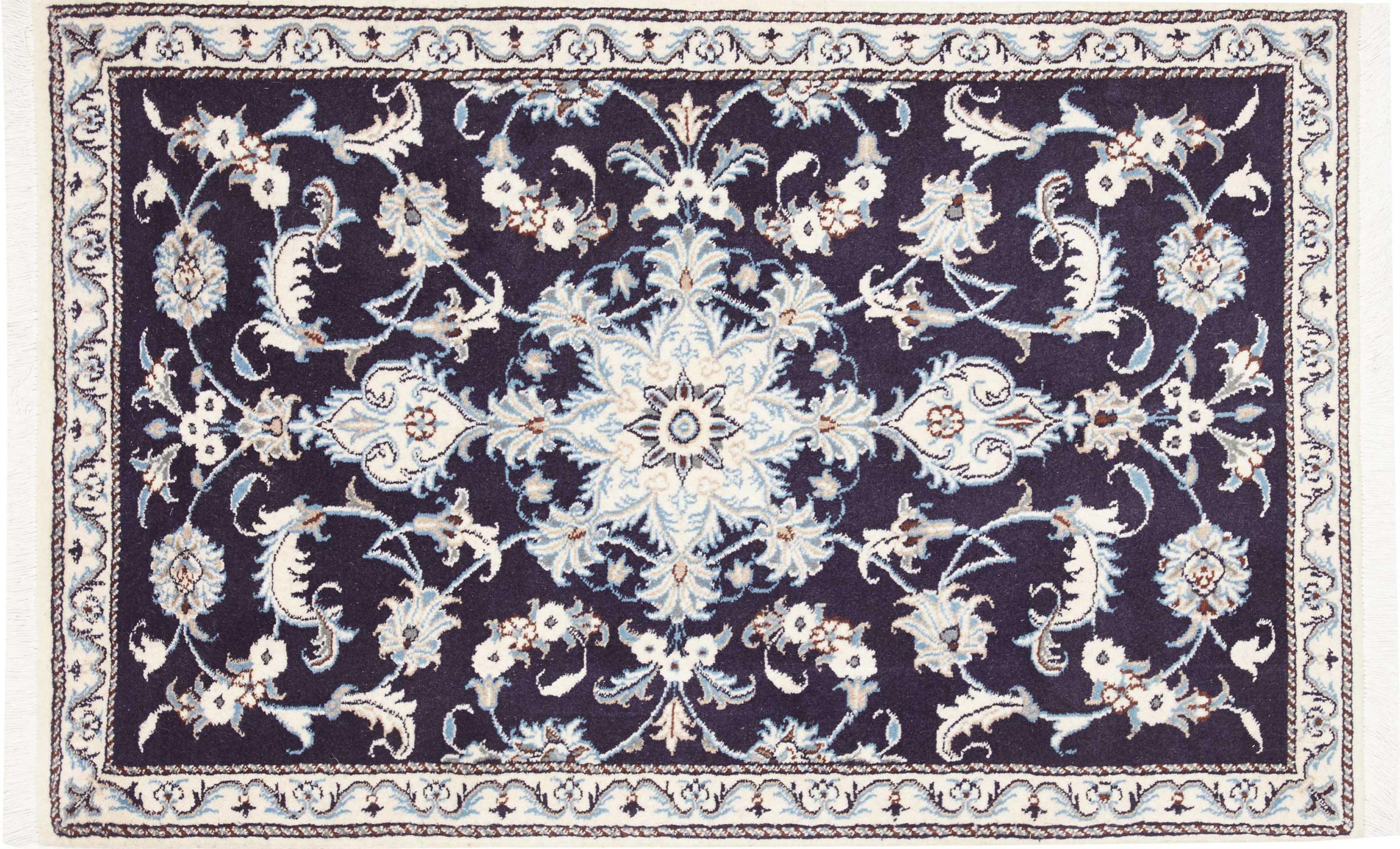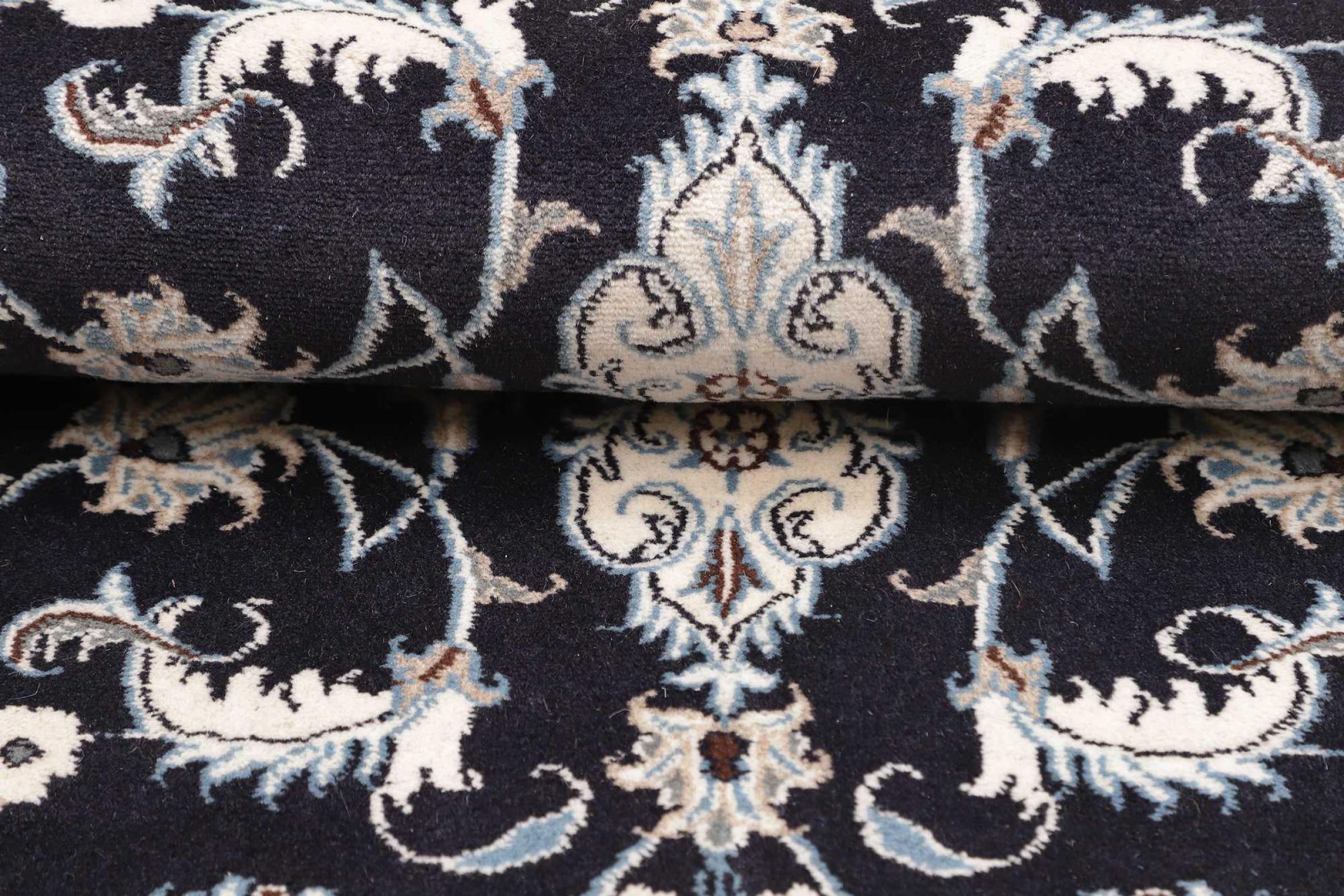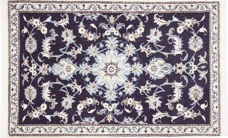 Las alfombras de la ciudad de Nain, en la frontera de uno de los mayores desiertos de Irán, están entre las alfombras persas más famosas del mundo. Su diseño típico es inconfundible con adornos florales, un medallón central y tonos beige y rojo o azul. Gracias a sus designaciones 4La, 6La, 9La y 12La, las sutilezas de una alfombra de Nain se pueden ver a simple vista. Cuanto más bajo sea el número "La", más alta es la densidad del nudo y por lo tanto más fina es la alfombra.