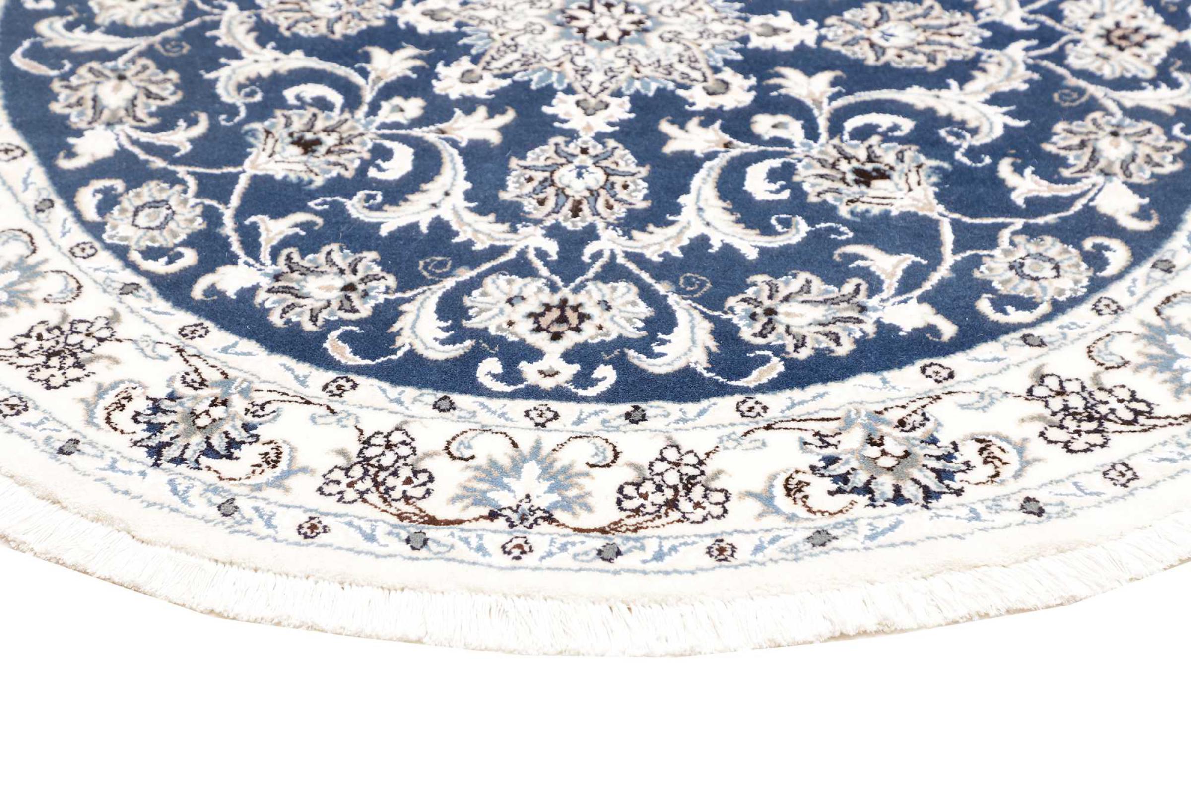 Las alfombras de la ciudad de Nain, en la frontera de uno de los mayores desiertos de Irán, están entre las alfombras persas más famosas del mundo. Su diseño típico es inconfundible con adornos florales, un medallón central y tonos beige y rojo o azul. Gracias a sus designaciones 4La, 6La, 9La y 12La, las sutilezas de una alfombra de Nain se pueden ver a simple vista. Cuanto más bajo sea el número "La", más alta es la densidad del nudo y por lo tanto más fina es la alfombra.
