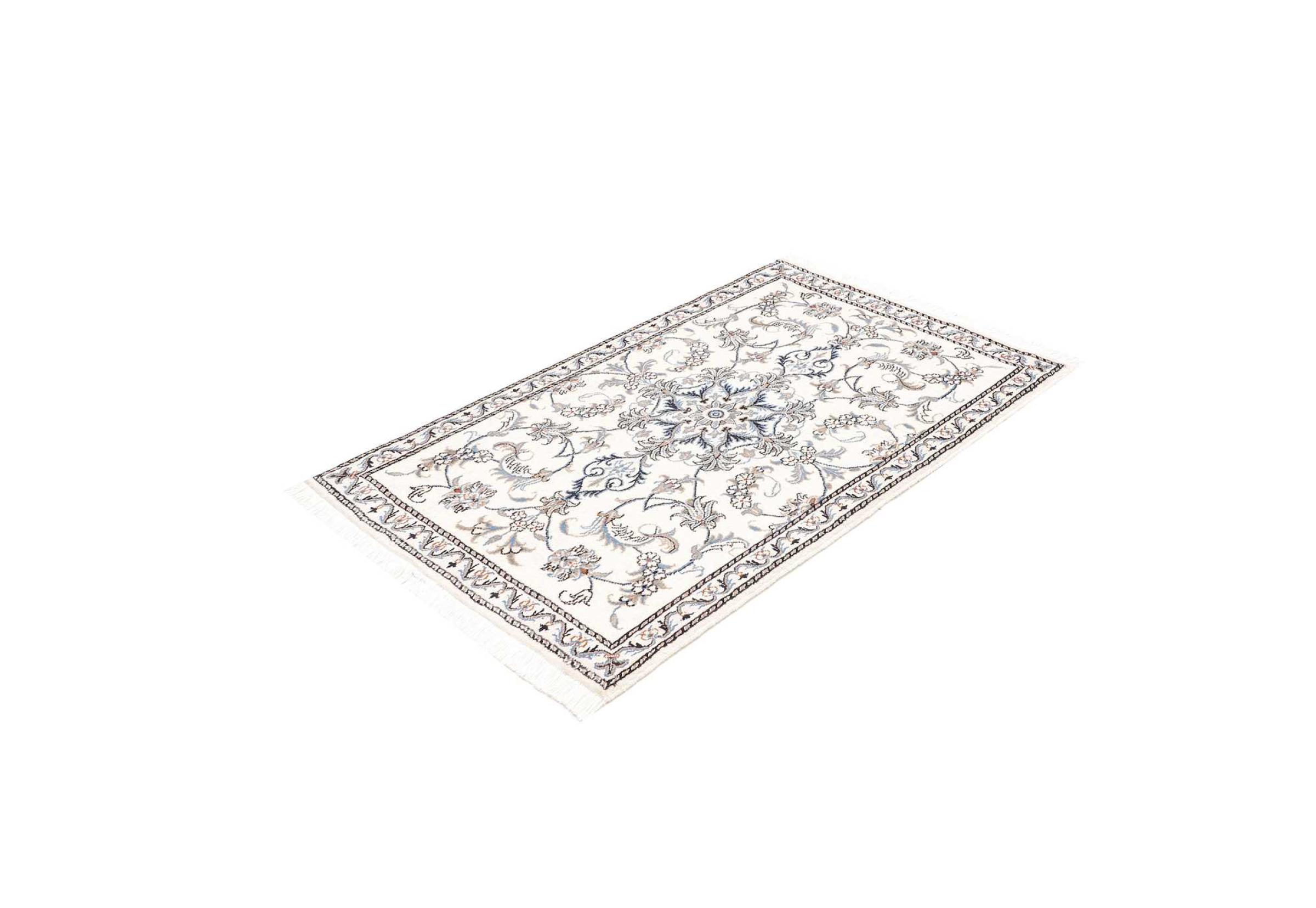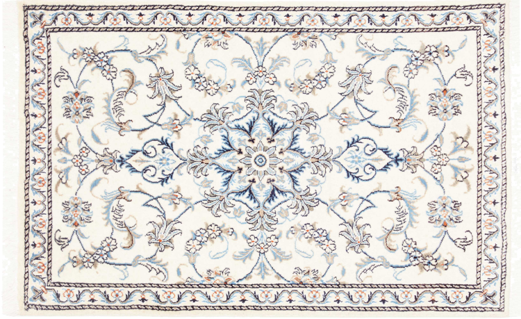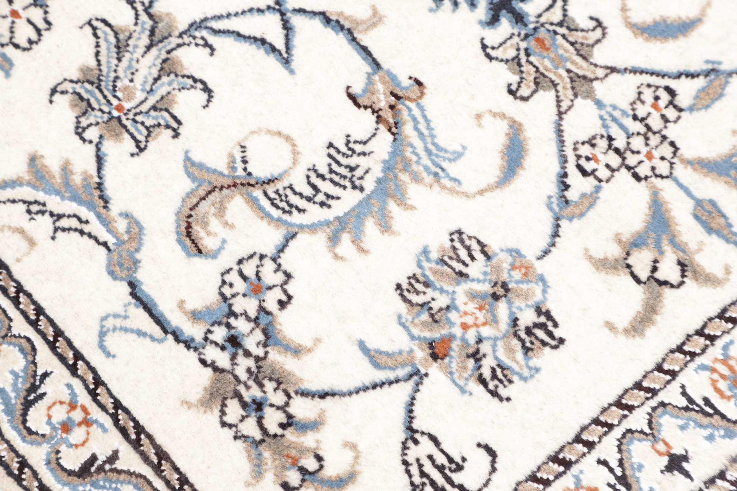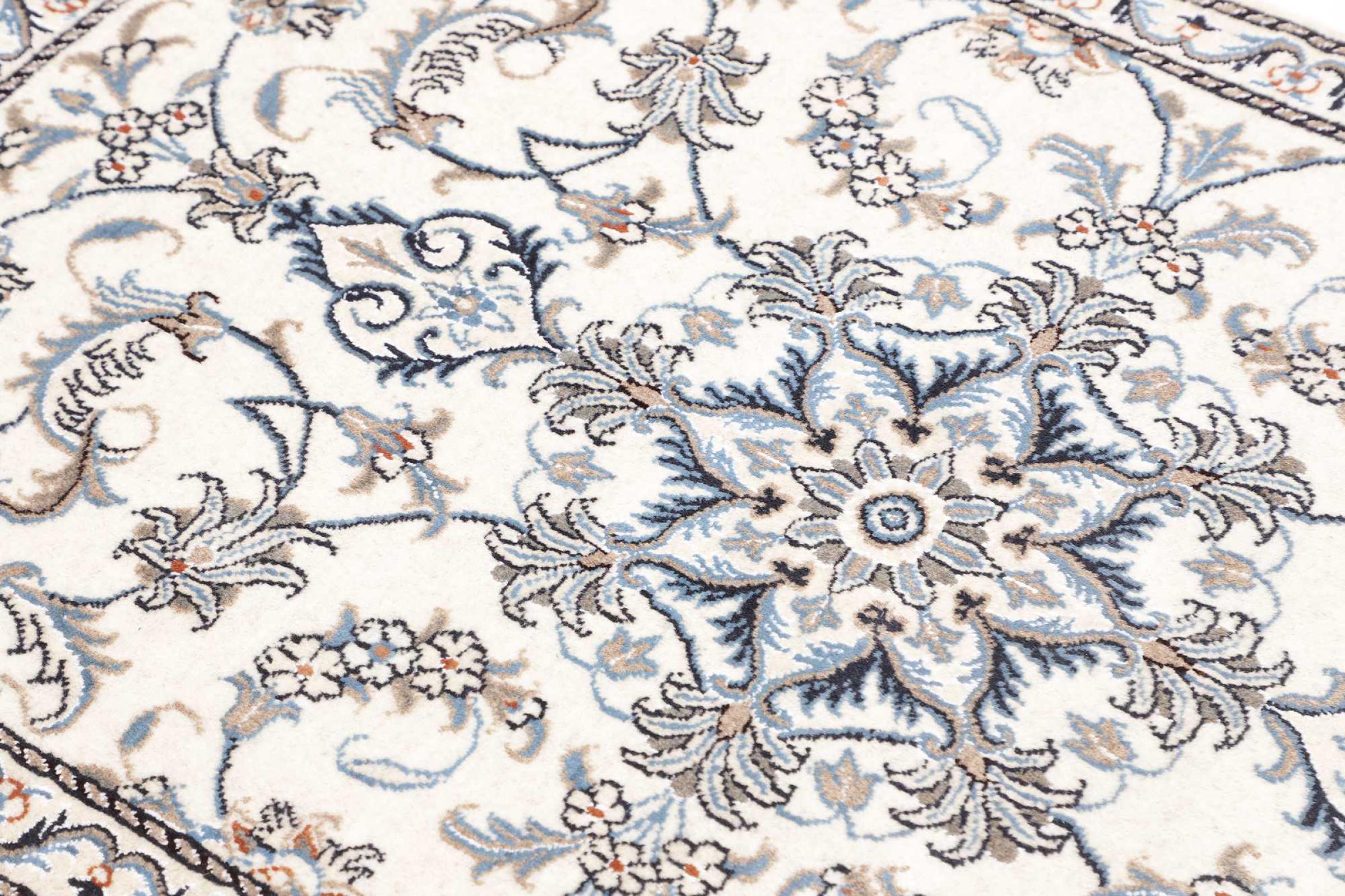 Las alfombras de la ciudad de Nain, en la frontera de uno de los mayores desiertos de Irán, están entre las alfombras persas más famosas del mundo. Su diseño típico es inconfundible con adornos florales, un medallón central y tonos beige y rojo o azul. Gracias a sus designaciones 4La, 6La, 9La y 12La, las sutilezas de una alfombra de Nain se pueden ver a simple vista. Cuanto más bajo sea el número "La", más alta es la densidad del nudo y por lo tanto más fina es la alfombra.