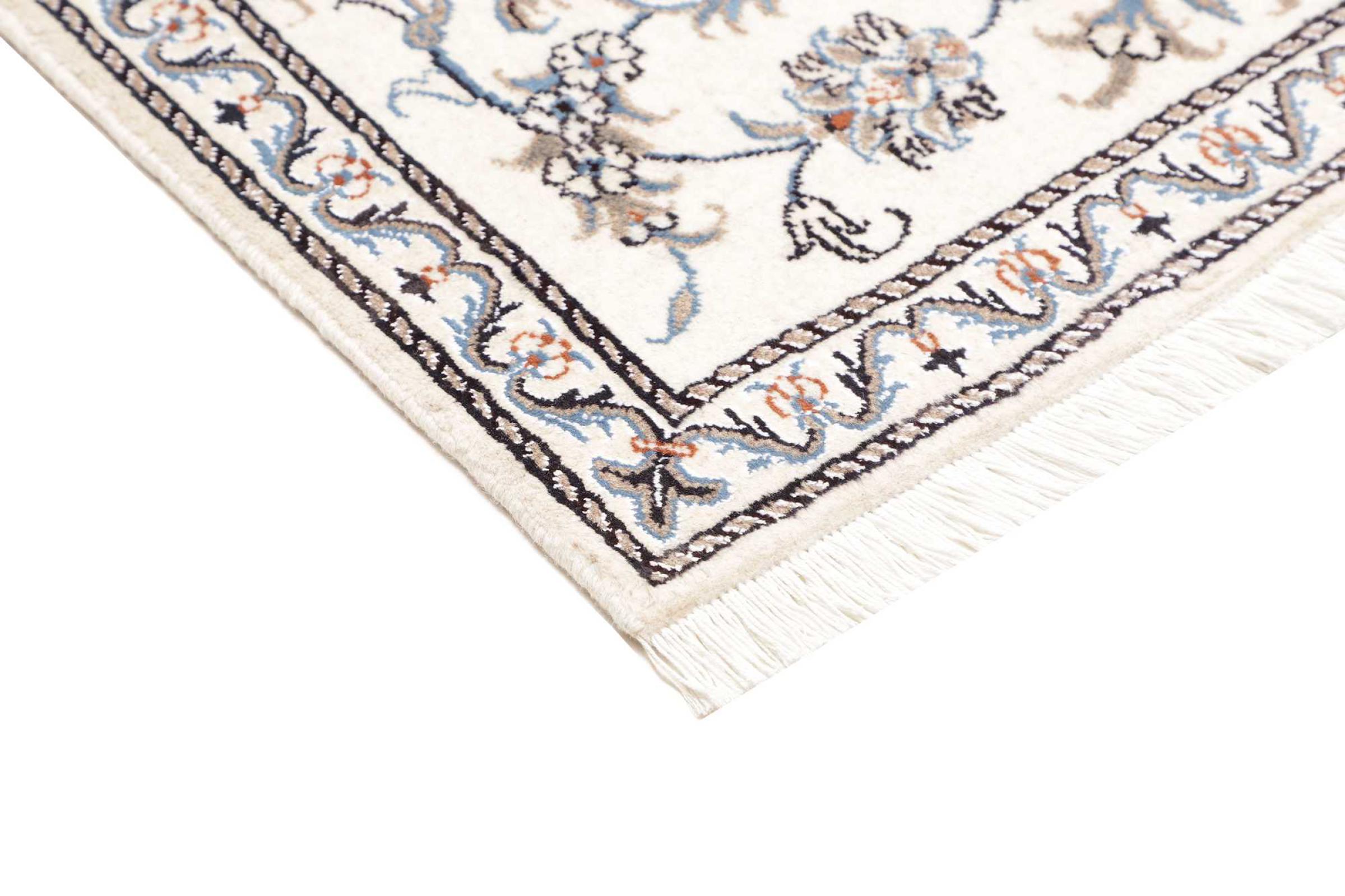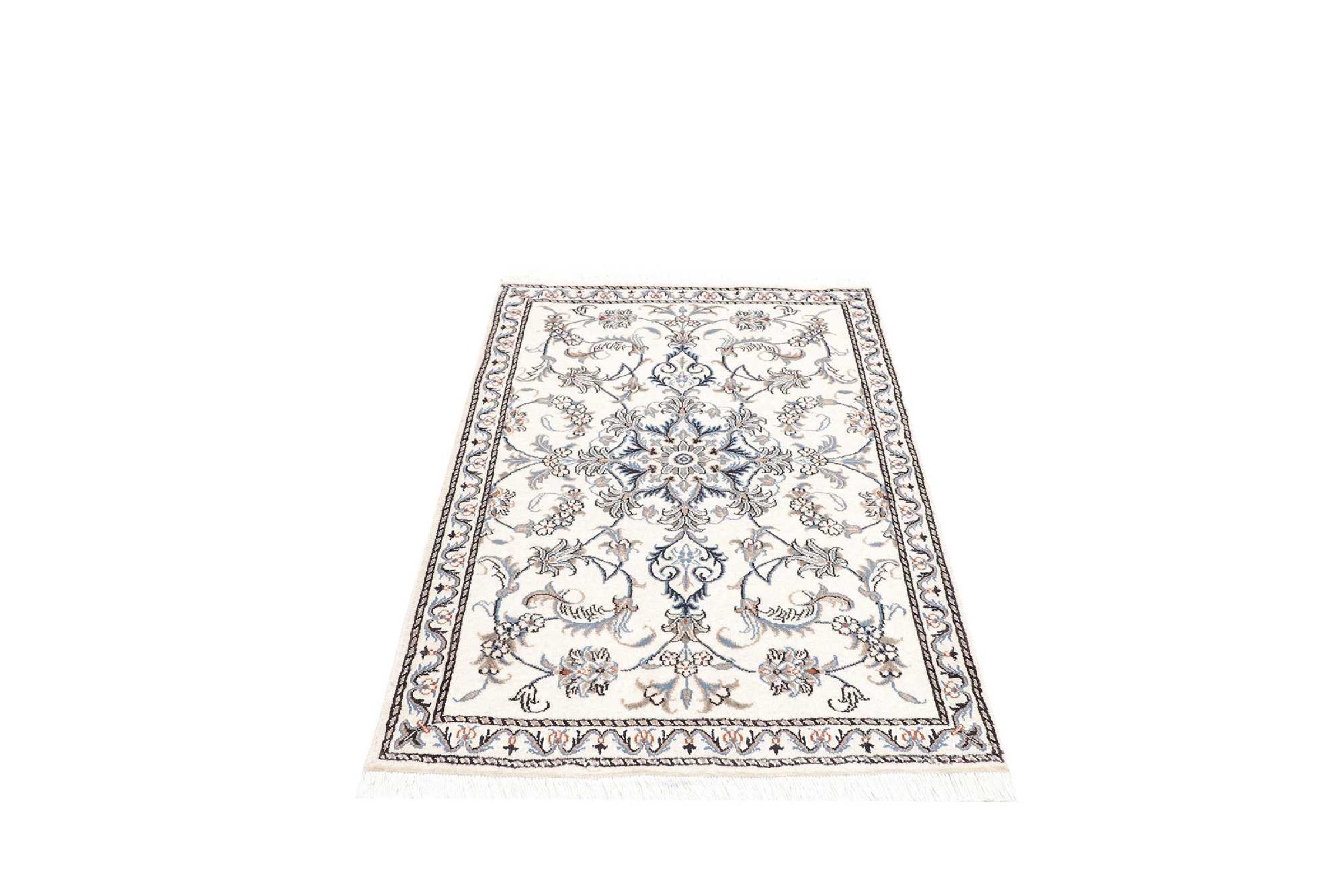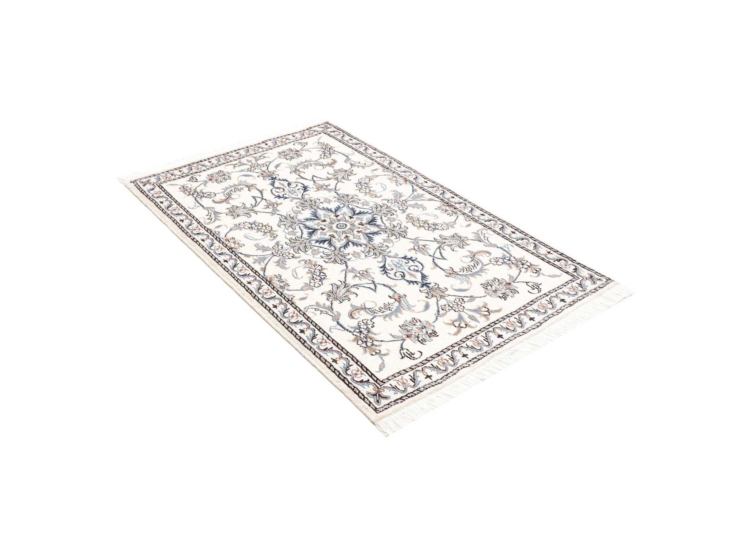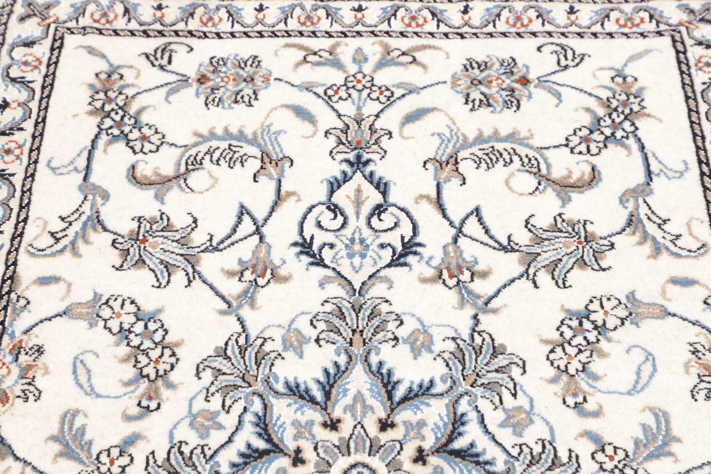 Las alfombras de la ciudad de Nain, en la frontera de uno de los mayores desiertos de Irán, están entre las alfombras persas más famosas del mundo. Su diseño típico es inconfundible con adornos florales, un medallón central y tonos beige y rojo o azul. Gracias a sus designaciones 4La, 6La, 9La y 12La, las sutilezas de una alfombra de Nain se pueden ver a simple vista. Cuanto más bajo sea el número "La", más alta es la densidad del nudo y por lo tanto más fina es la alfombra.