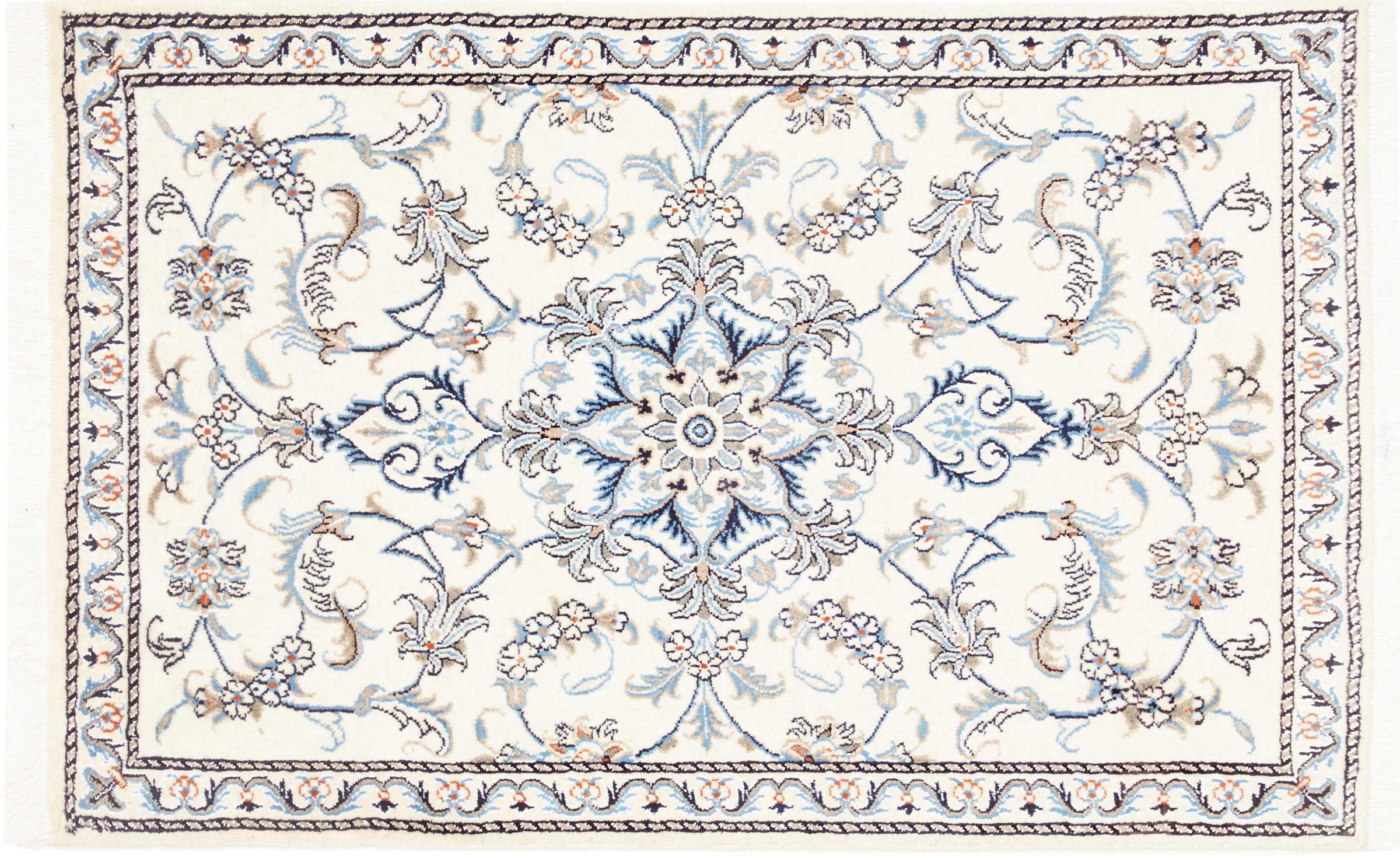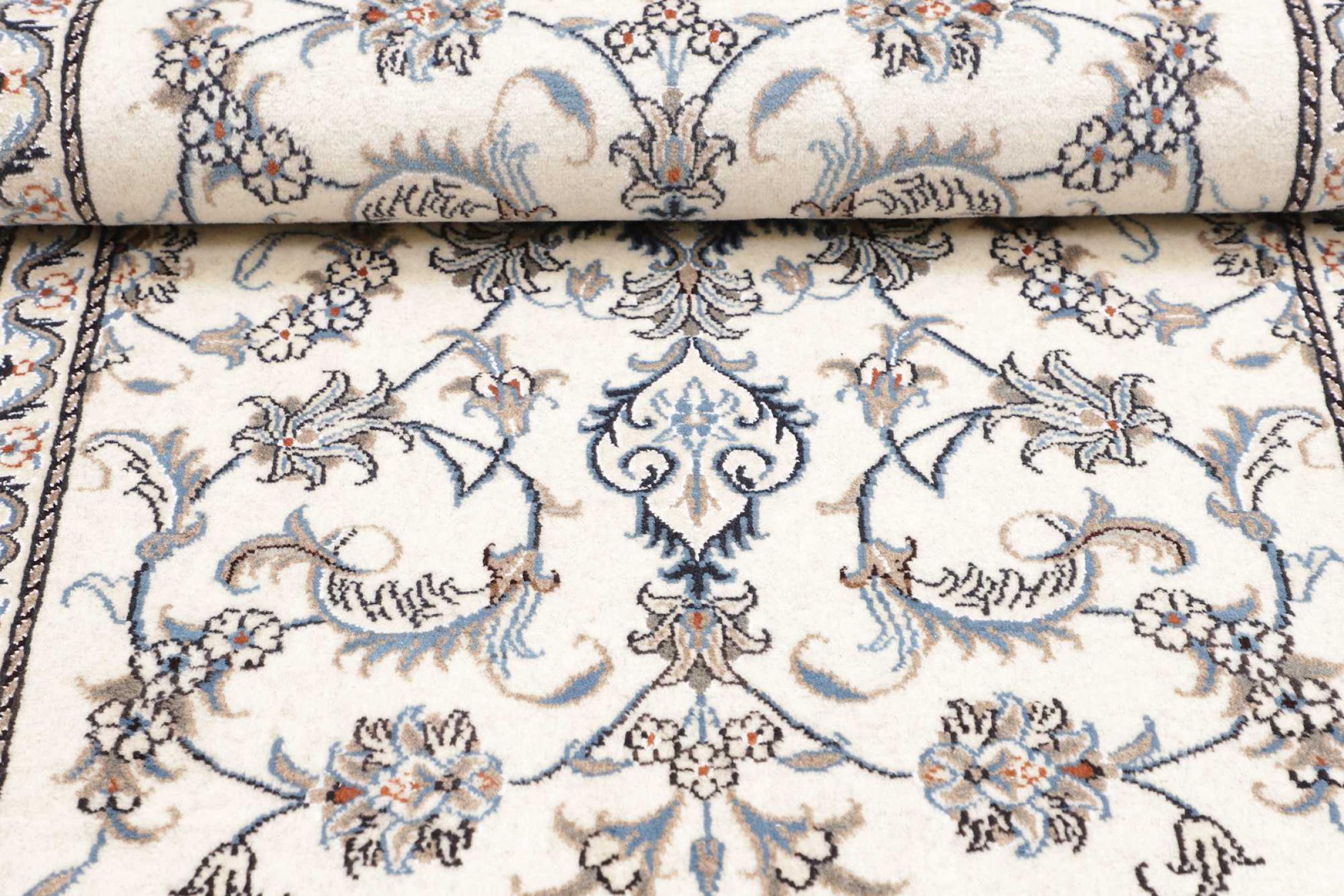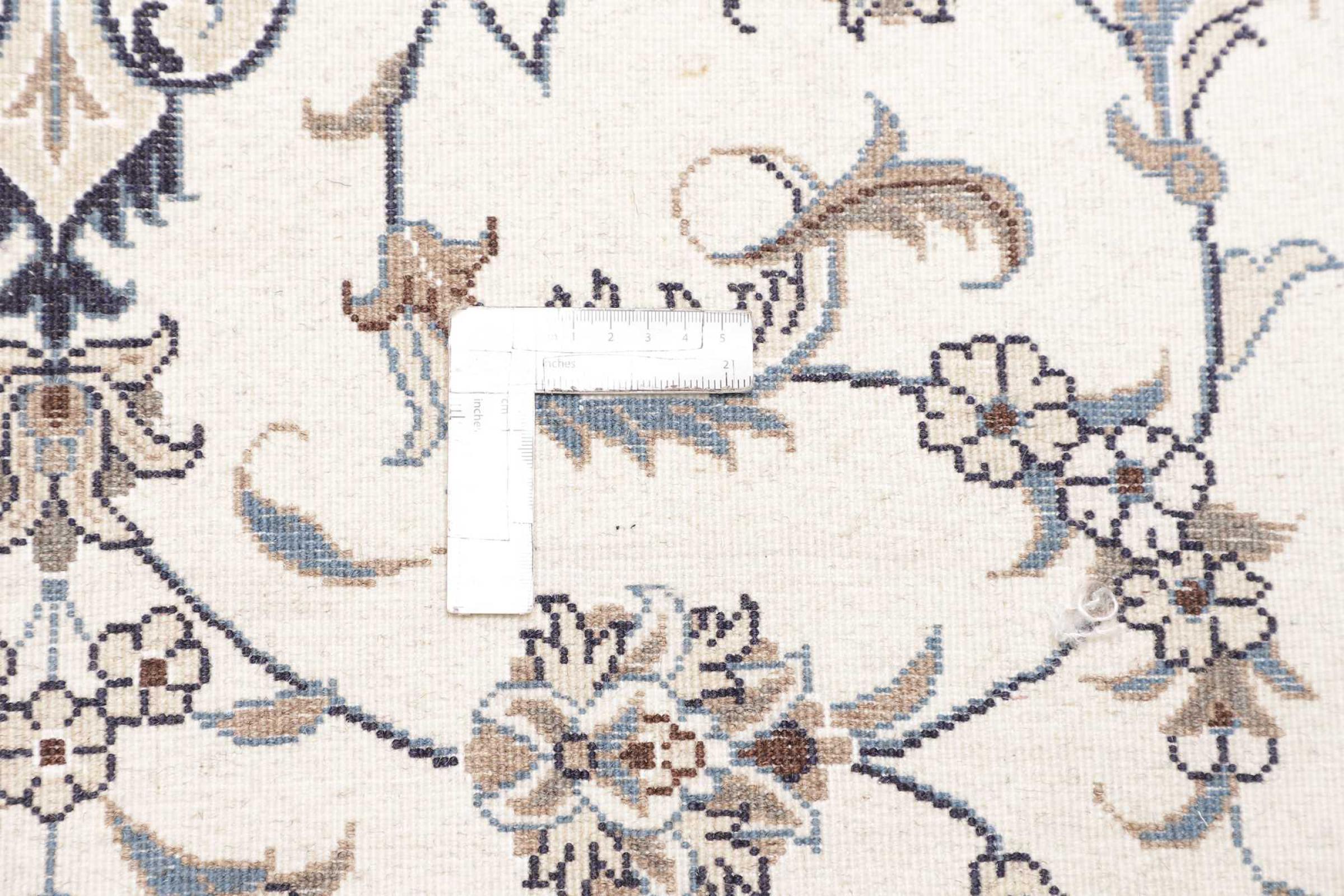 Esta alfombra Nain está clasificada como 12La. Tiene un aspecto elegante y refinado con su colorido típico de Naín. Esta alfombra persa fue anudada a mano en la ciudad de Naín, situada en el extremo occidental del desierto de Dasht-e-Kavir, con lana de alta calidad y seda natural. Con un tamaño de 12La, no está tan finamente detallada con ornamentos como una Nain 9La o 6La.