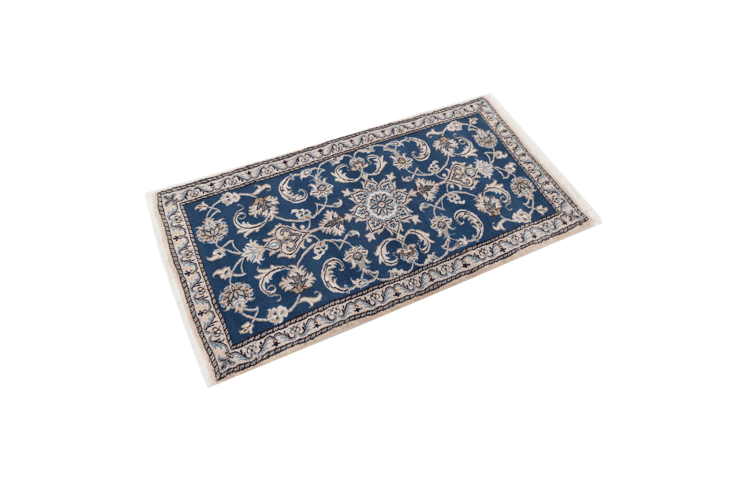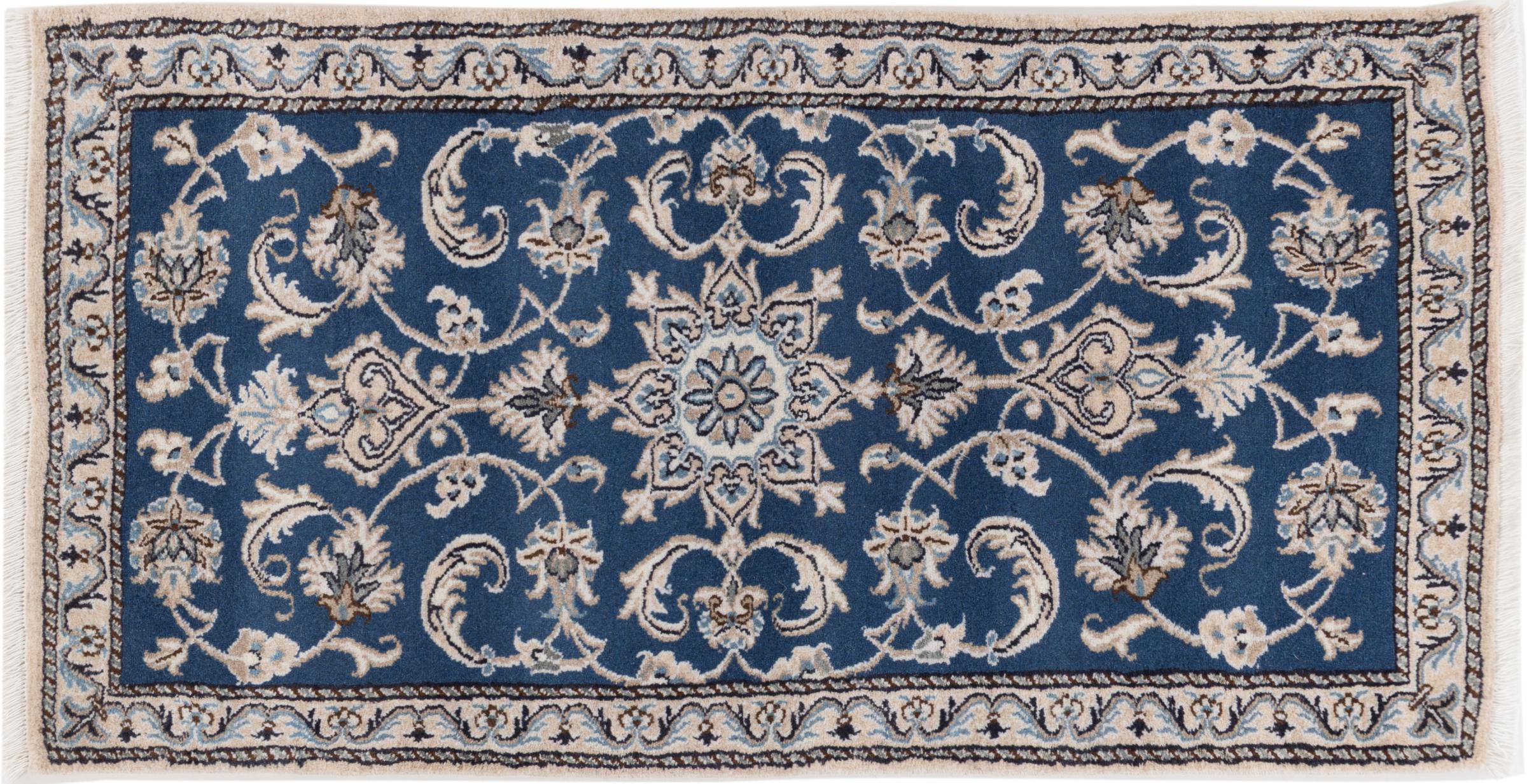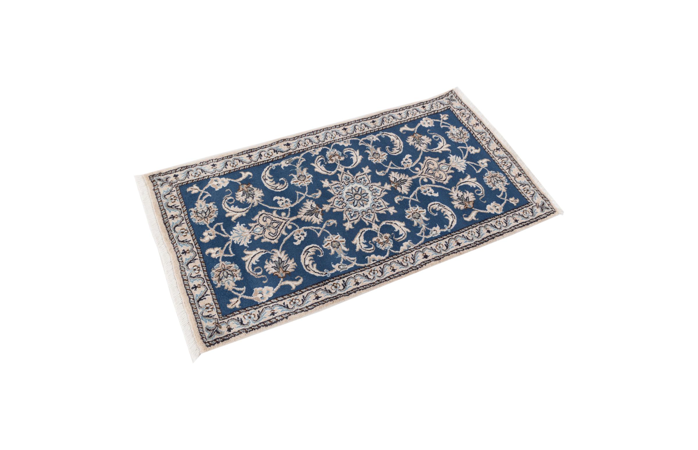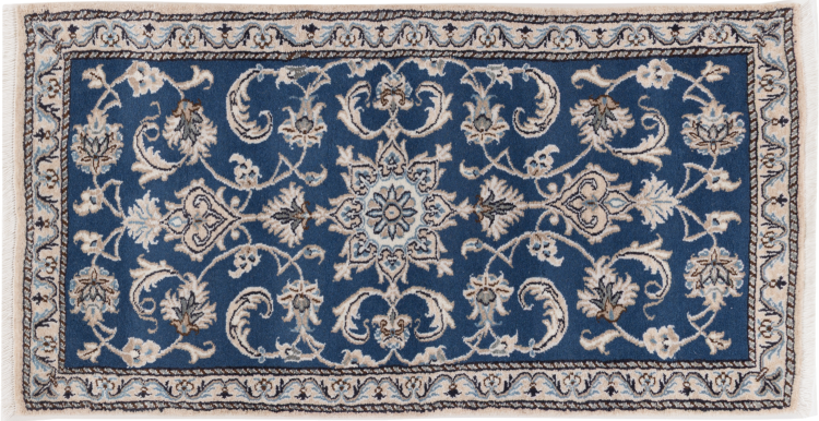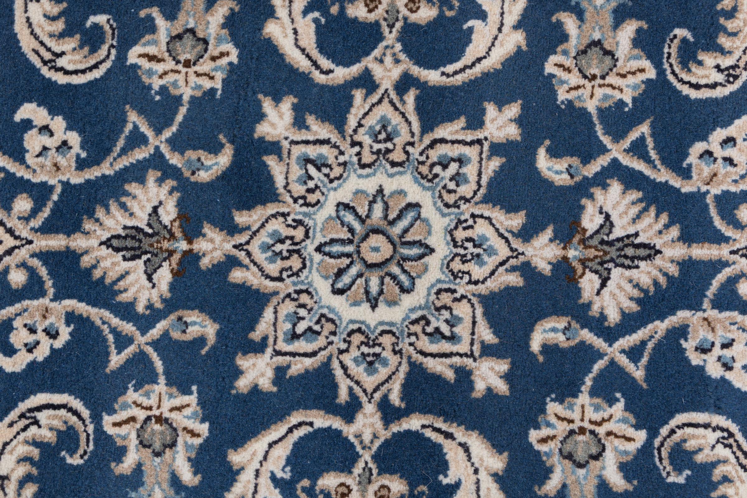 Las alfombras de la ciudad de Nain, en la frontera de uno de los mayores desiertos de Irán, están entre las alfombras persas más famosas del mundo. Su diseño típico es inconfundible con adornos florales, un medallón central y tonos beige y rojo o azul. Gracias a sus designaciones 4La, 6La, 9La y 12La, las sutilezas de una alfombra de Nain se pueden ver a simple vista. Cuanto más bajo sea el número "La", más alta es la densidad del nudo y por lo tanto más fina es la alfombra.