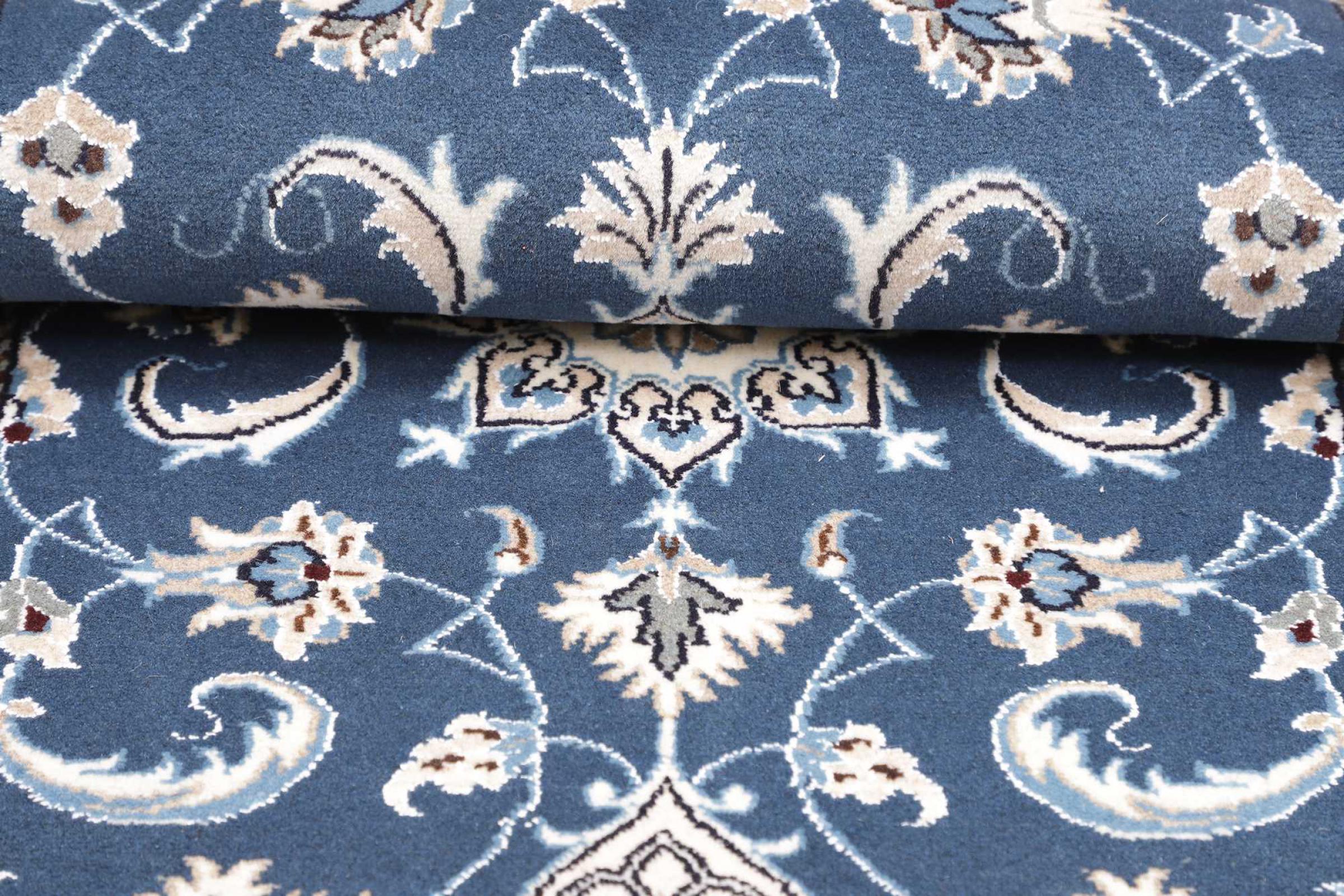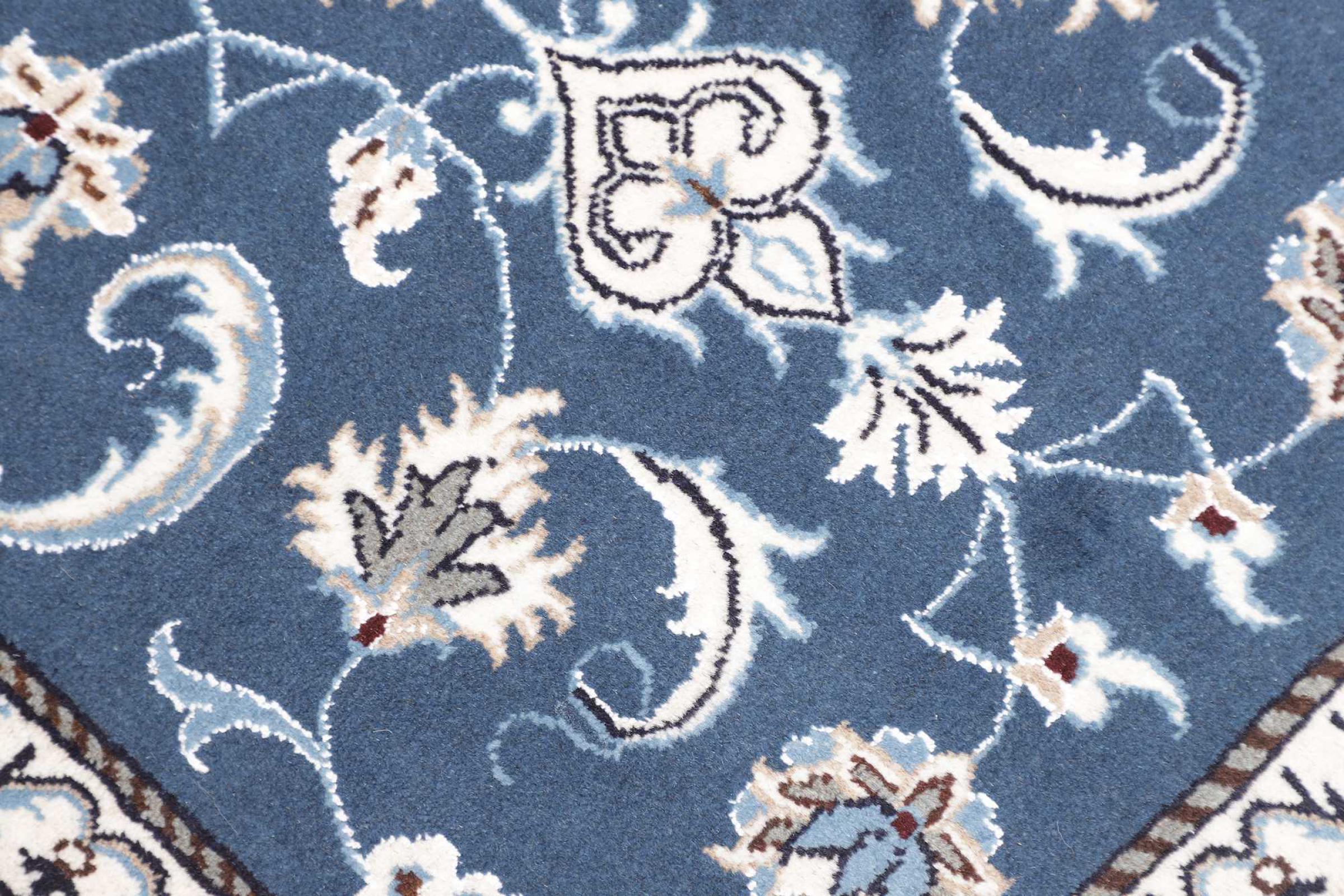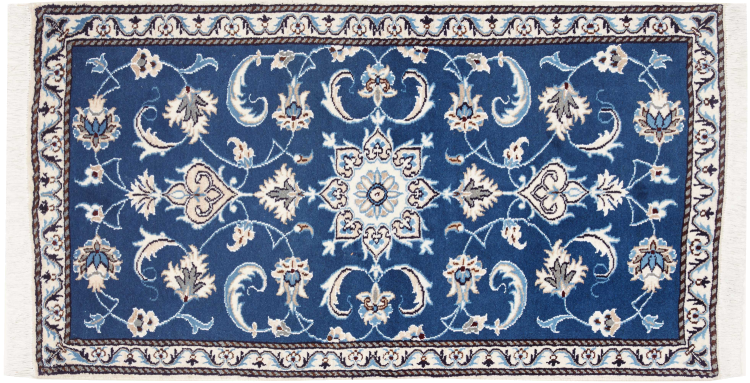 Las alfombras de la ciudad de Nain, en la frontera de uno de los mayores desiertos de Irán, están entre las alfombras persas más famosas del mundo. Su diseño típico es inconfundible con adornos florales, un medallón central y tonos beige y rojo o azul. Gracias a sus designaciones 4La, 6La, 9La y 12La, las sutilezas de una alfombra de Nain se pueden ver a simple vista. Cuanto más bajo sea el número "La", más alta es la densidad del nudo y por lo tanto más fina es la alfombra.