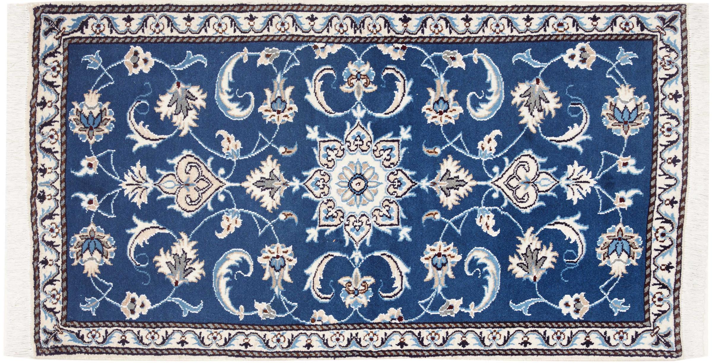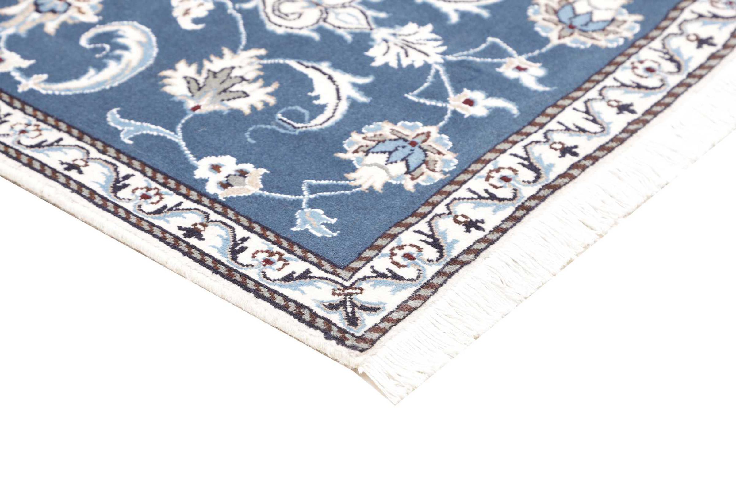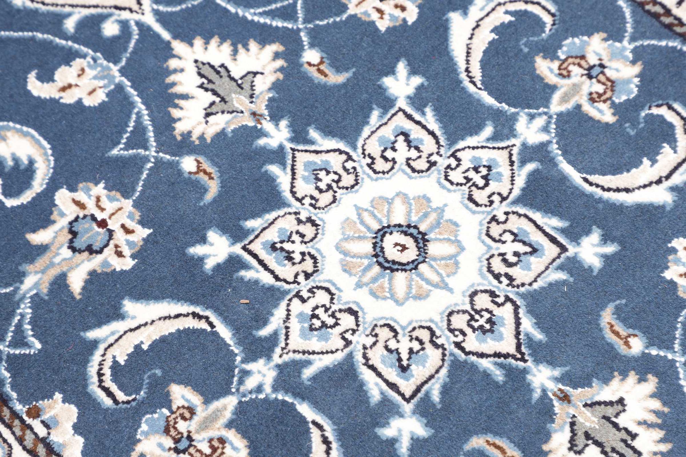 Las alfombras de la ciudad de Nain, en la frontera de uno de los mayores desiertos de Irán, están entre las alfombras persas más famosas del mundo. Su diseño típico es inconfundible con adornos florales, un medallón central y tonos beige y rojo o azul. Gracias a sus designaciones 4La, 6La, 9La y 12La, las sutilezas de una alfombra de Nain se pueden ver a simple vista. Cuanto más bajo sea el número "La", más alta es la densidad del nudo y por lo tanto más fina es la alfombra.