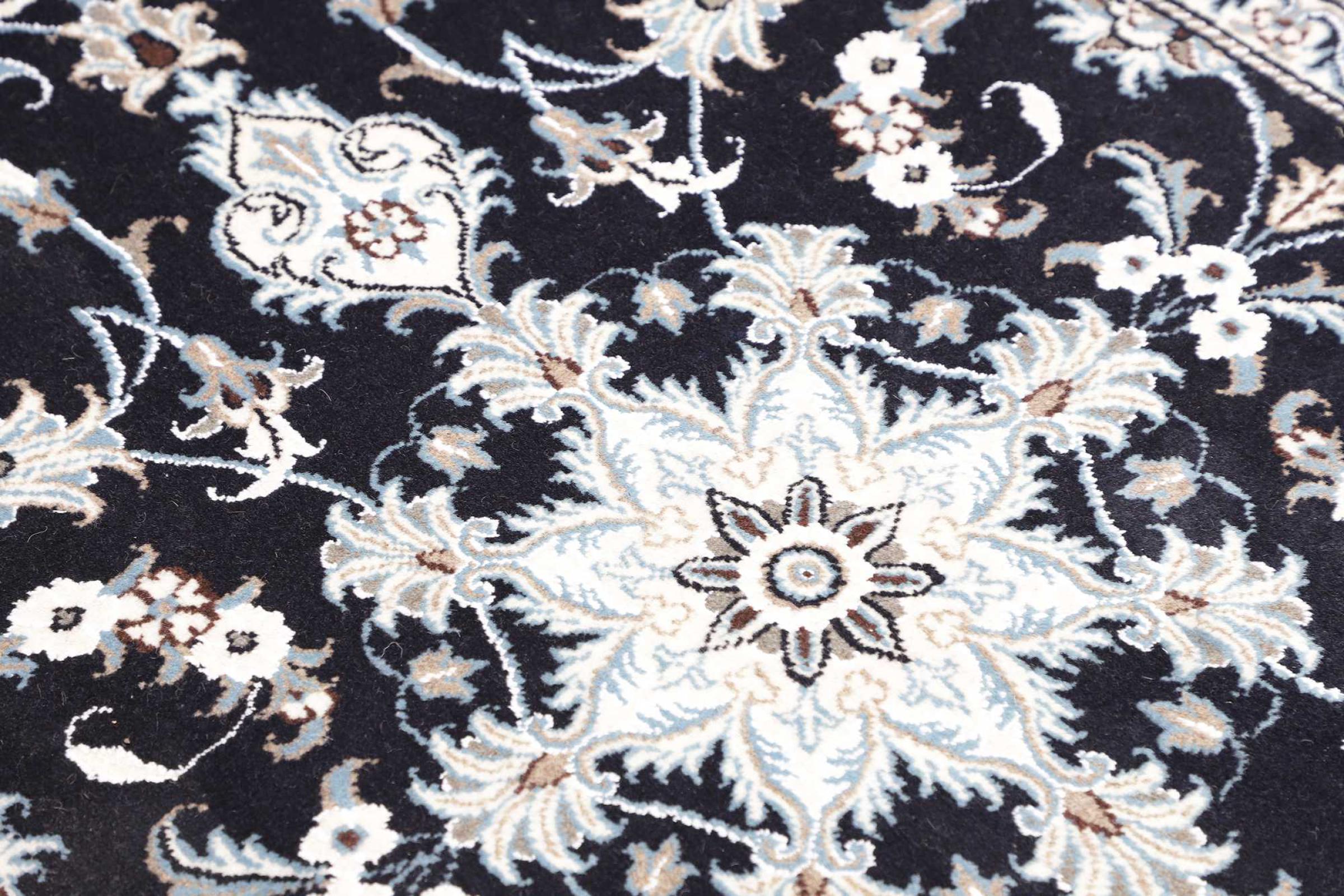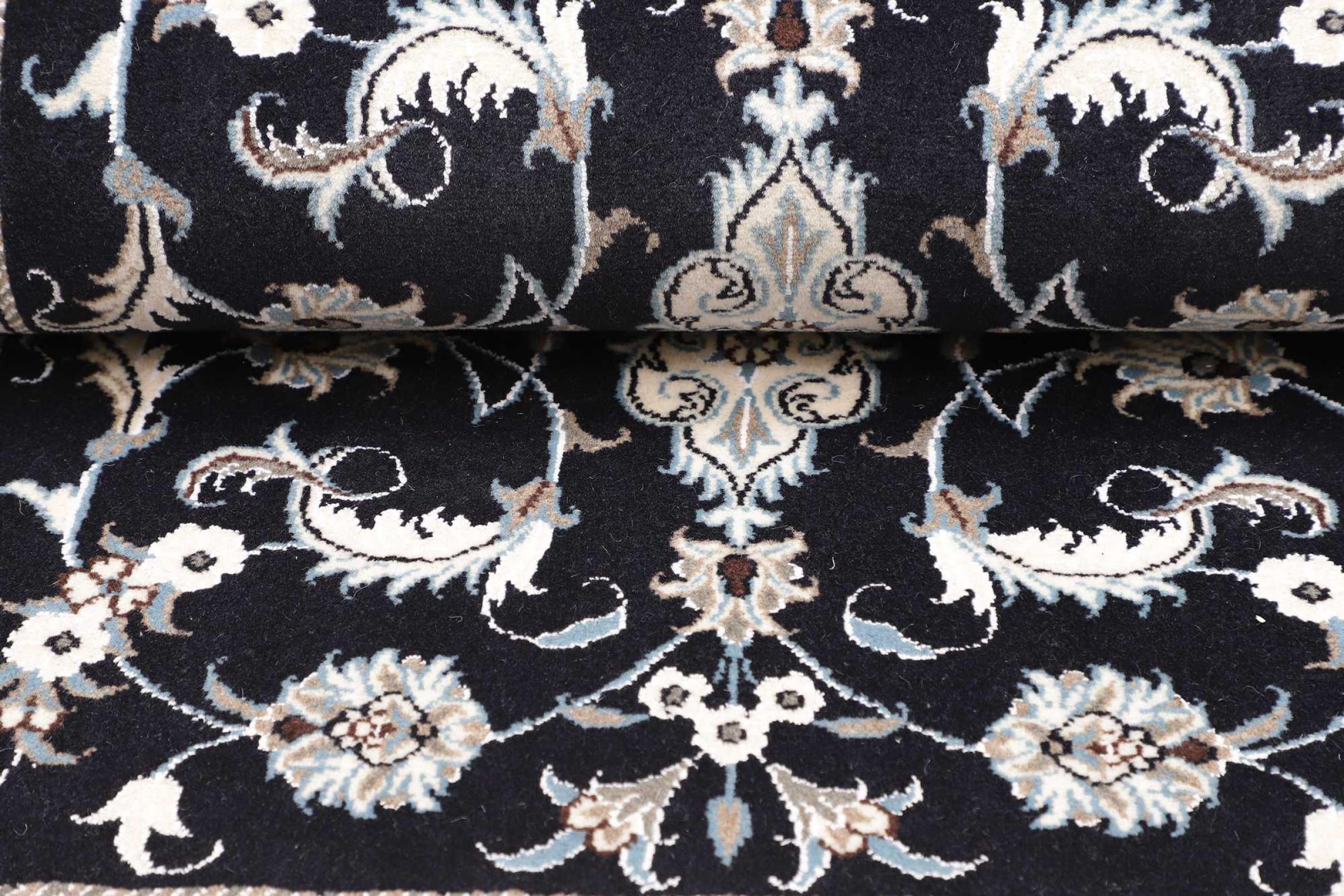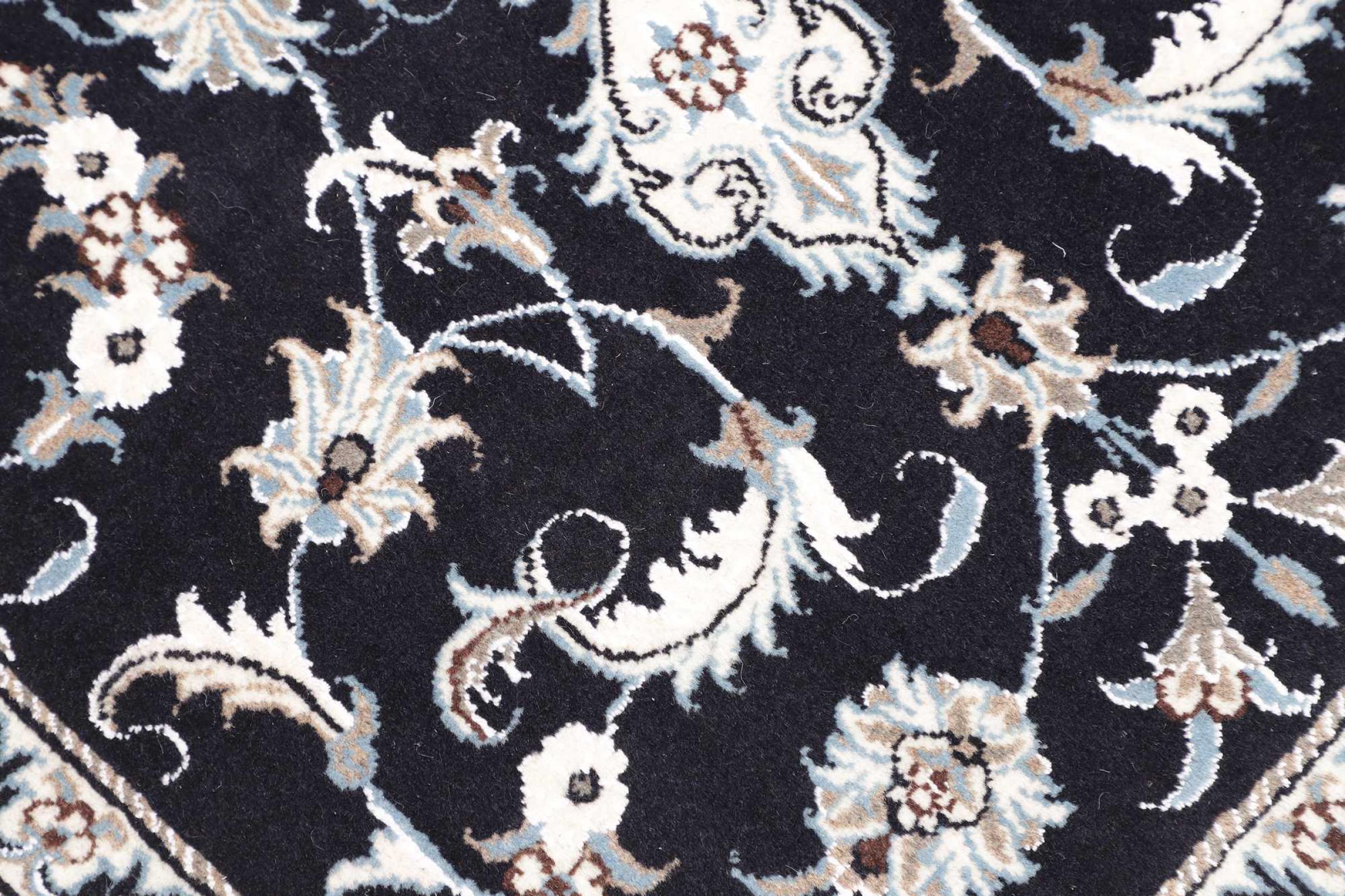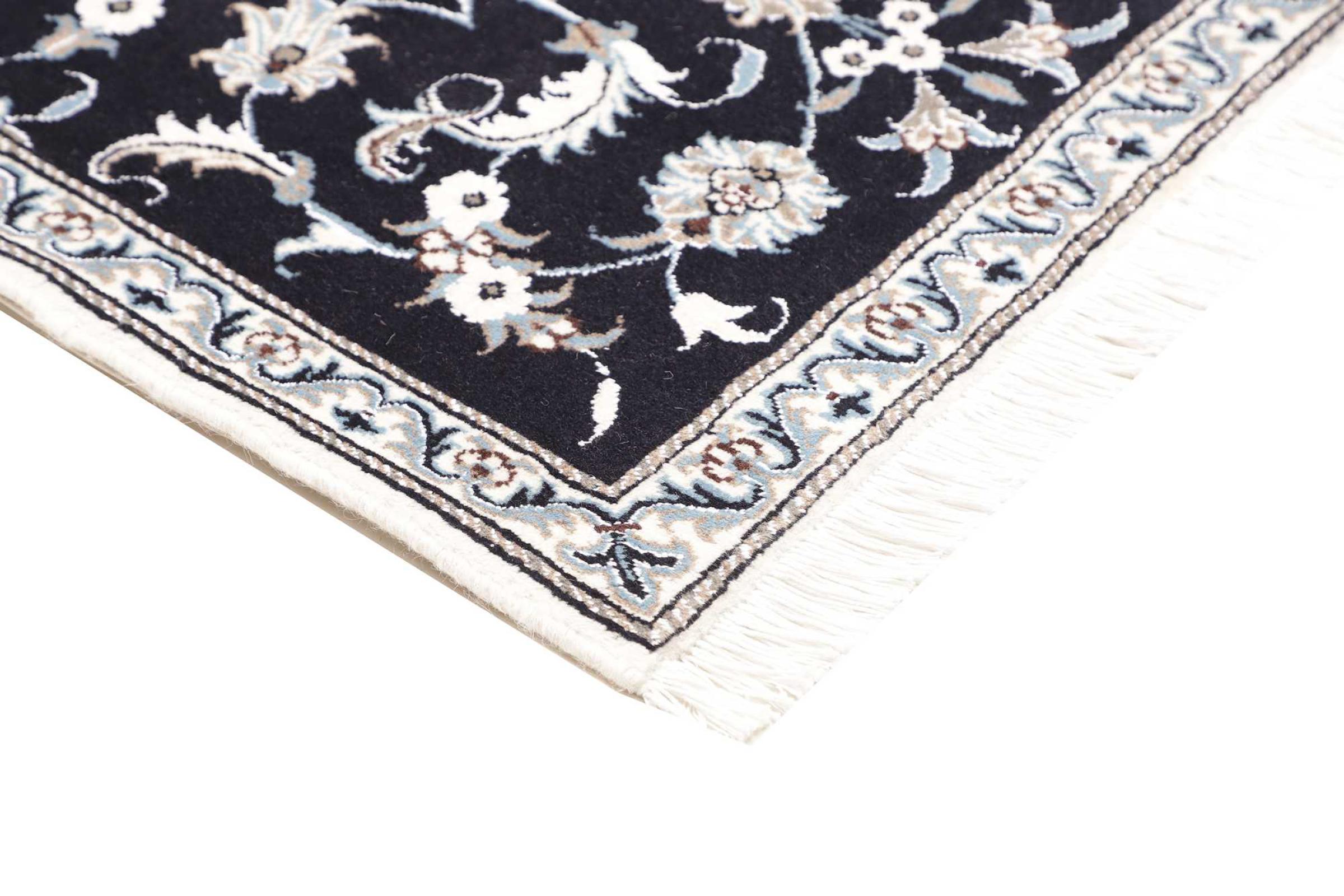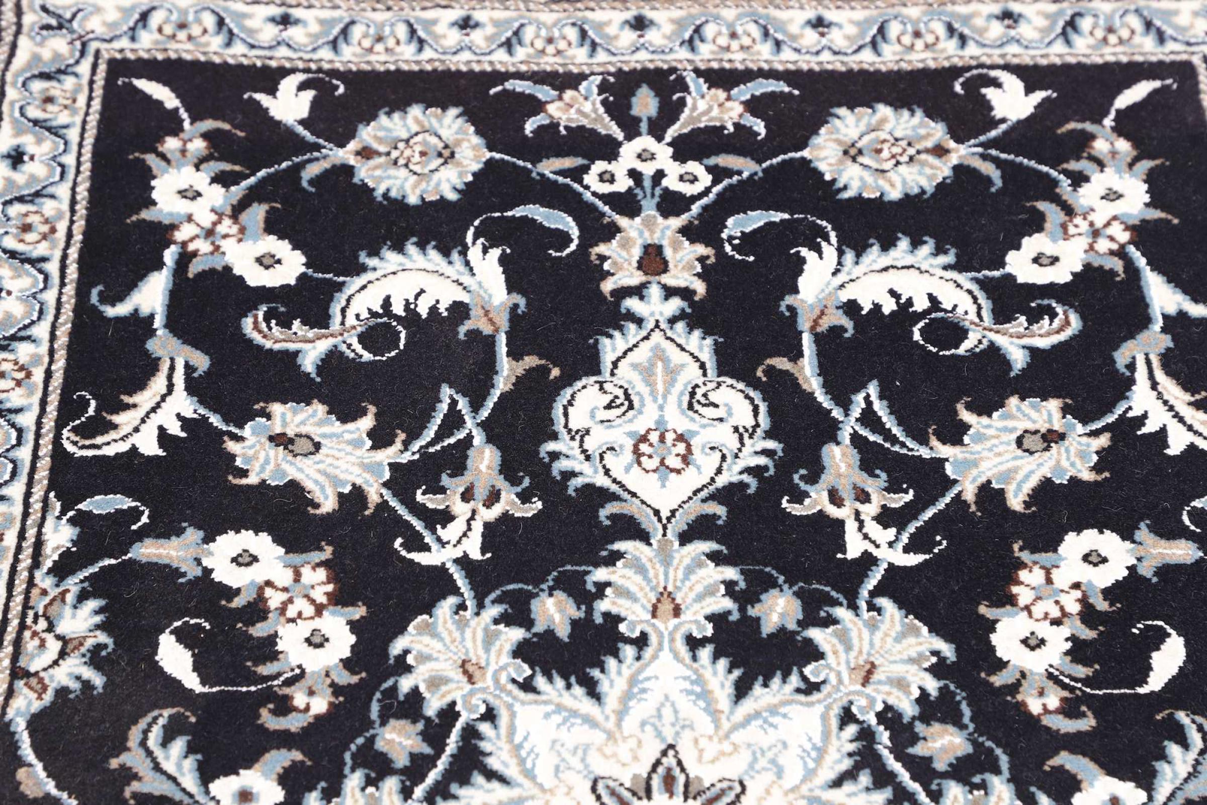 Esta alfombra Nain está clasificada como 12La. Tiene un aspecto elegante y refinado con su colorido típico de Naín. Esta alfombra persa fue anudada a mano en la ciudad de Naín, situada en el extremo occidental del desierto de Dasht-e-Kavir, con lana de alta calidad y seda natural. Con un tamaño de 12La, no está tan finamente detallada con ornamentos como una Nain 9La o 6La.
