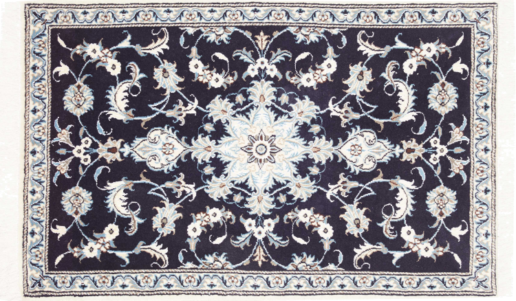 Las alfombras de la ciudad de Nain, en la frontera de uno de los mayores desiertos de Irán, están entre las alfombras persas más famosas del mundo. Su diseño típico es inconfundible con adornos florales, un medallón central y tonos beige y rojo o azul. Gracias a sus designaciones 4La, 6La, 9La y 12La, las sutilezas de una alfombra de Nain se pueden ver a simple vista. Cuanto más bajo sea el número "La", más alta es la densidad del nudo y por lo tanto más fina es la alfombra.