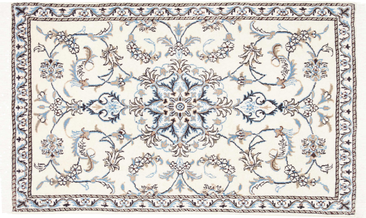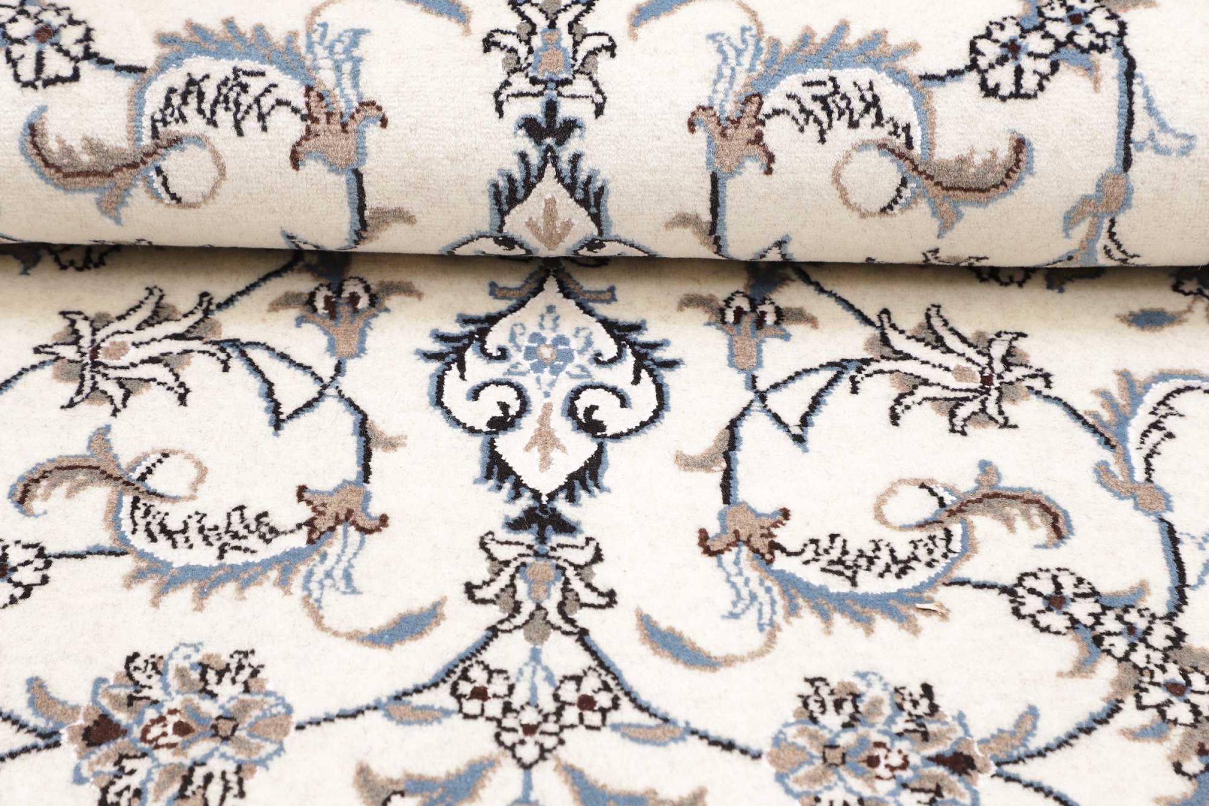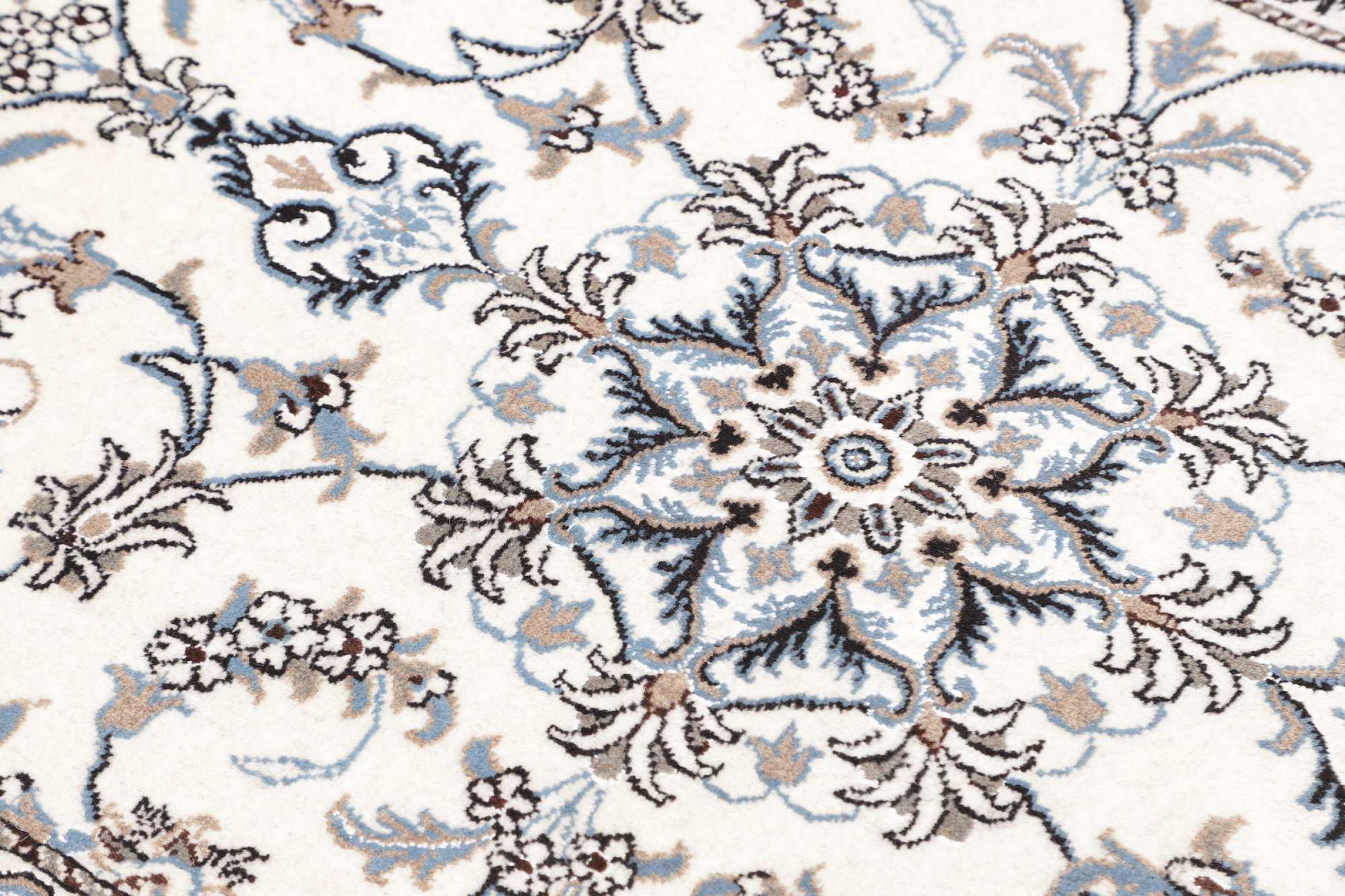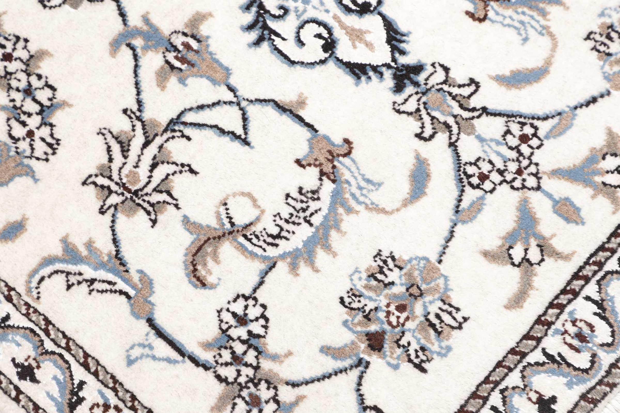 Las alfombras de la ciudad de Nain, en la frontera de uno de los mayores desiertos de Irán, están entre las alfombras persas más famosas del mundo. Su diseño típico es inconfundible con adornos florales, un medallón central y tonos beige y rojo o azul. Gracias a sus designaciones 4La, 6La, 9La y 12La, las sutilezas de una alfombra de Nain se pueden ver a simple vista. Cuanto más bajo sea el número "La", más alta es la densidad del nudo y por lo tanto más fina es la alfombra.