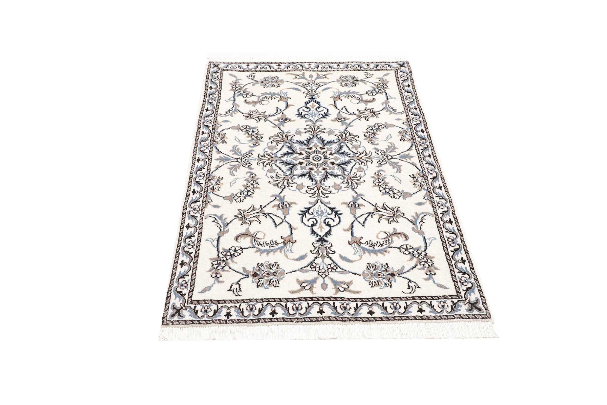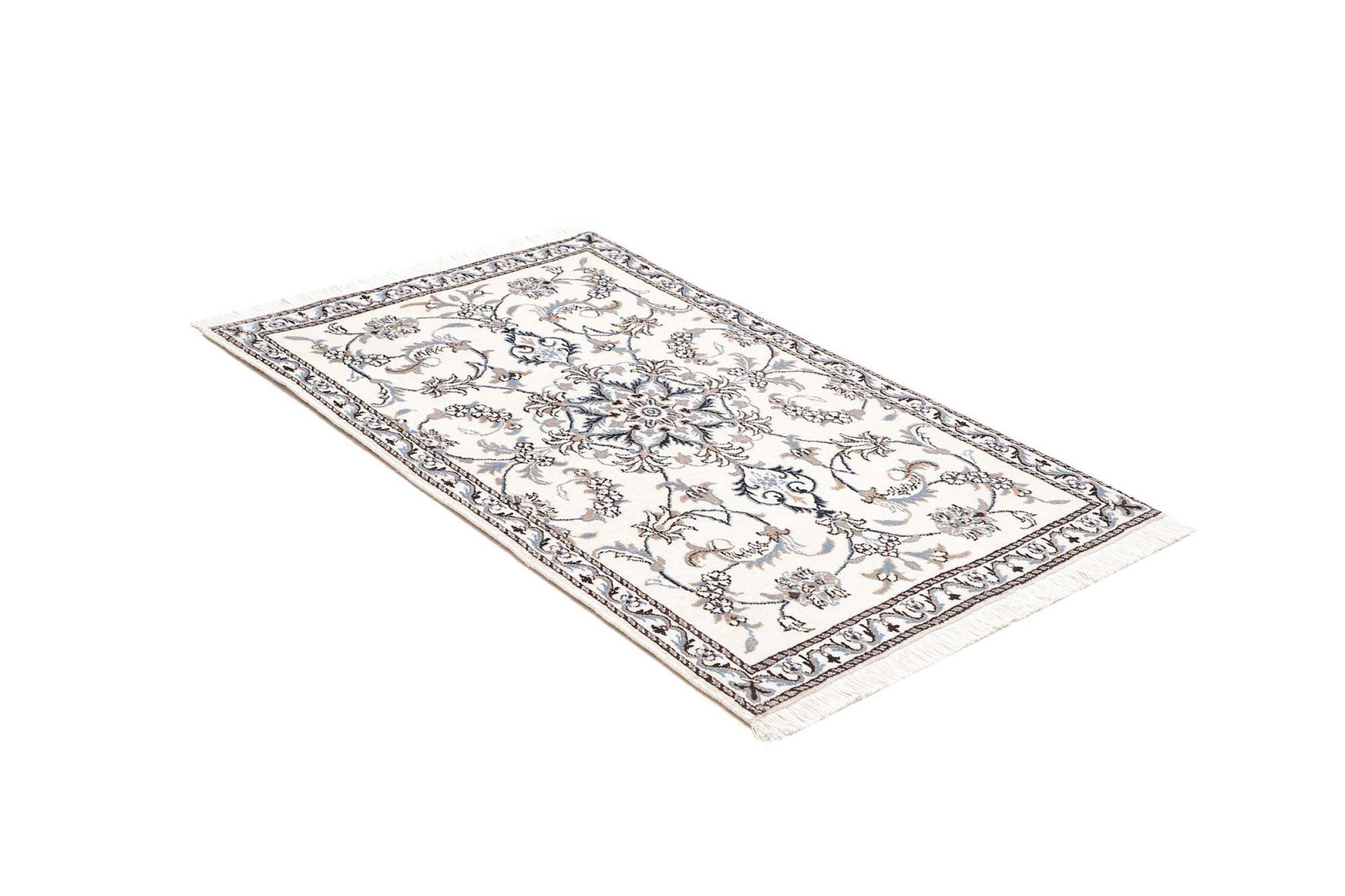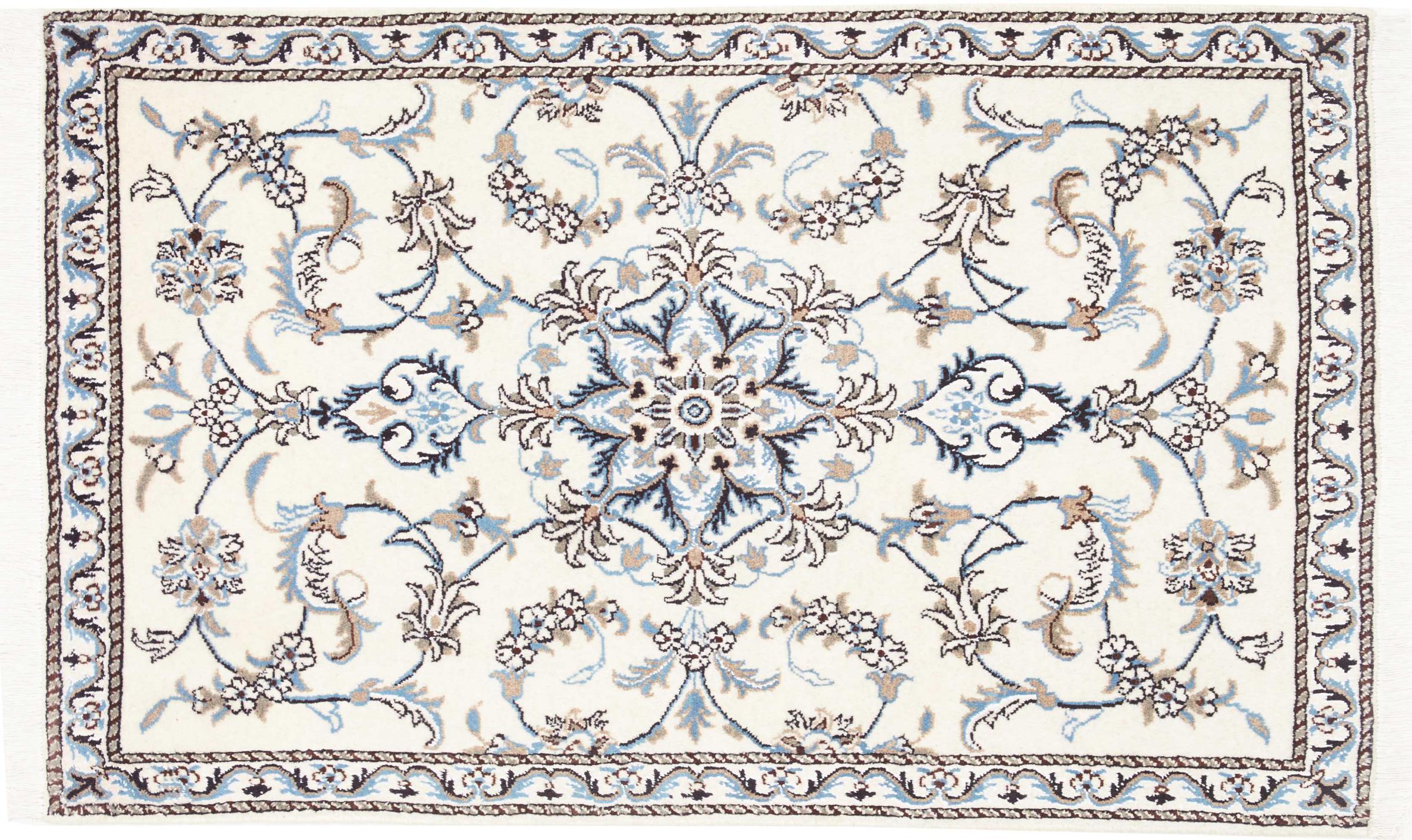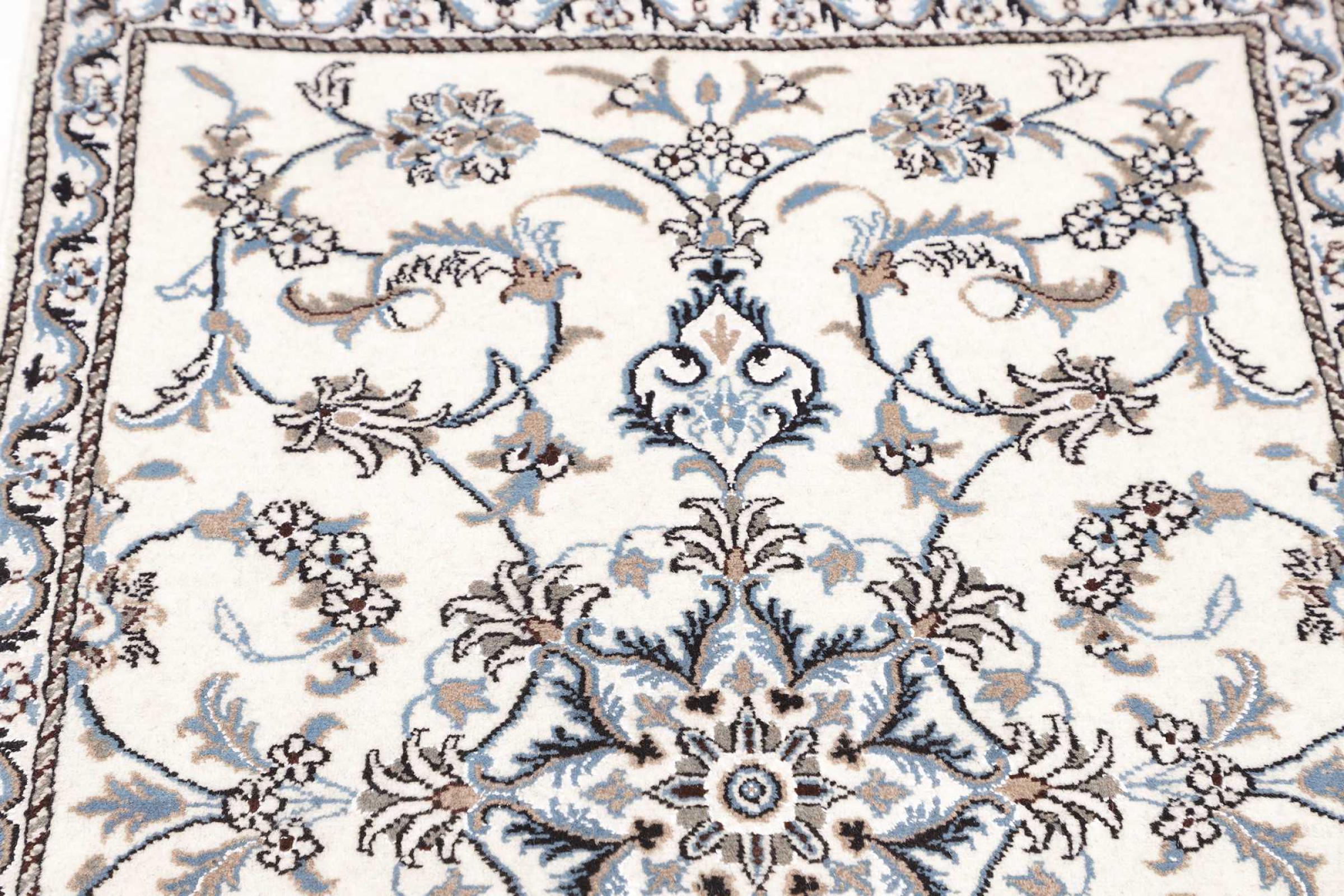 Las alfombras de la ciudad de Nain, en la frontera de uno de los mayores desiertos de Irán, están entre las alfombras persas más famosas del mundo. Su diseño típico es inconfundible con adornos florales, un medallón central y tonos beige y rojo o azul. Gracias a sus designaciones 4La, 6La, 9La y 12La, las sutilezas de una alfombra de Nain se pueden ver a simple vista. Cuanto más bajo sea el número "La", más alta es la densidad del nudo y por lo tanto más fina es la alfombra.