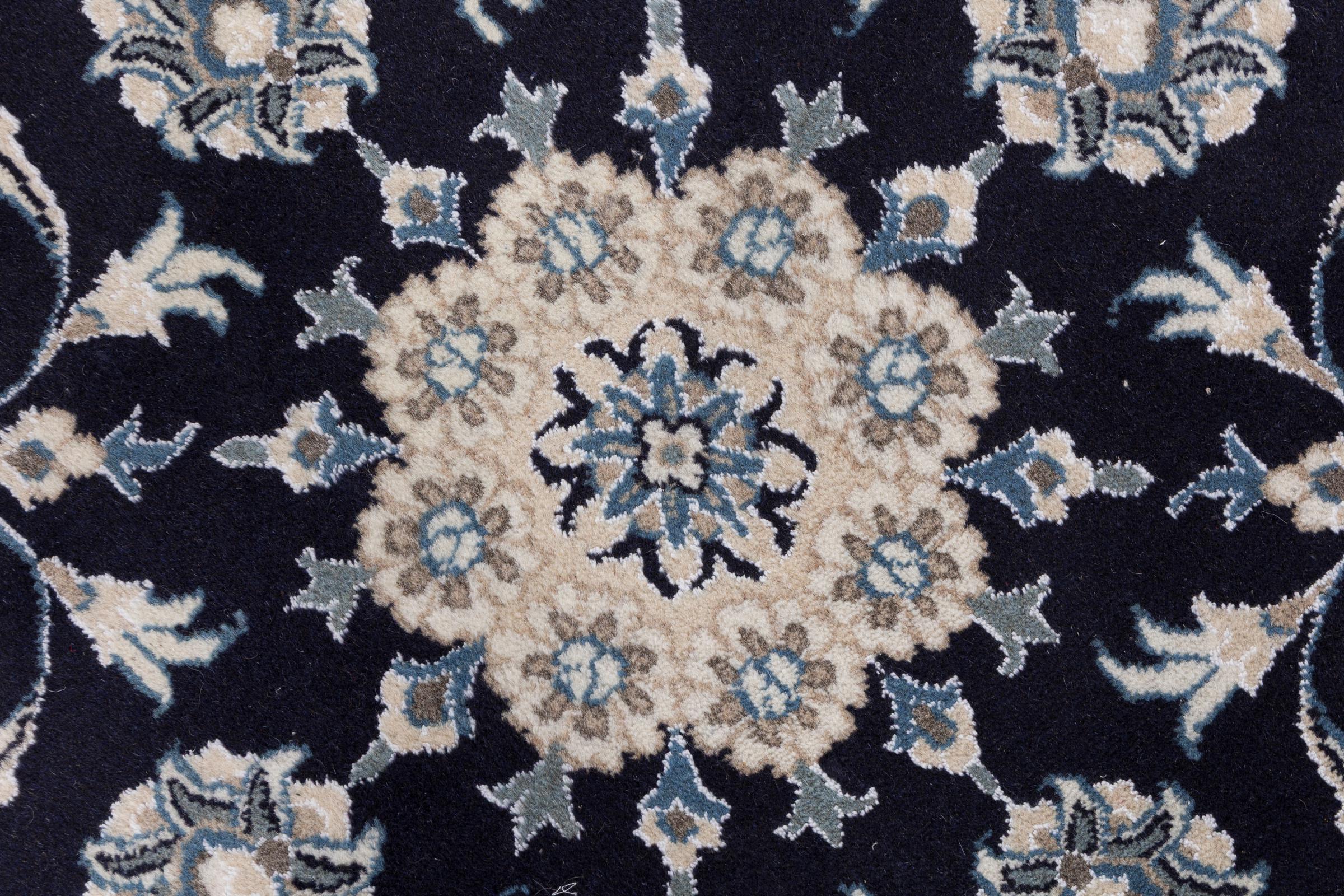 Las alfombras de la ciudad de Nain, en la frontera de uno de los mayores desiertos de Irán, están entre las alfombras persas más famosas del mundo. Su diseño típico es inconfundible con adornos florales, un medallón central y tonos beige y rojo o azul. Gracias a sus designaciones 4La, 6La, 9La y 12La, las sutilezas de una alfombra de Nain se pueden ver a simple vista. Cuanto más bajo sea el número "La", más alta es la densidad del nudo y por lo tanto más fina es la alfombra.