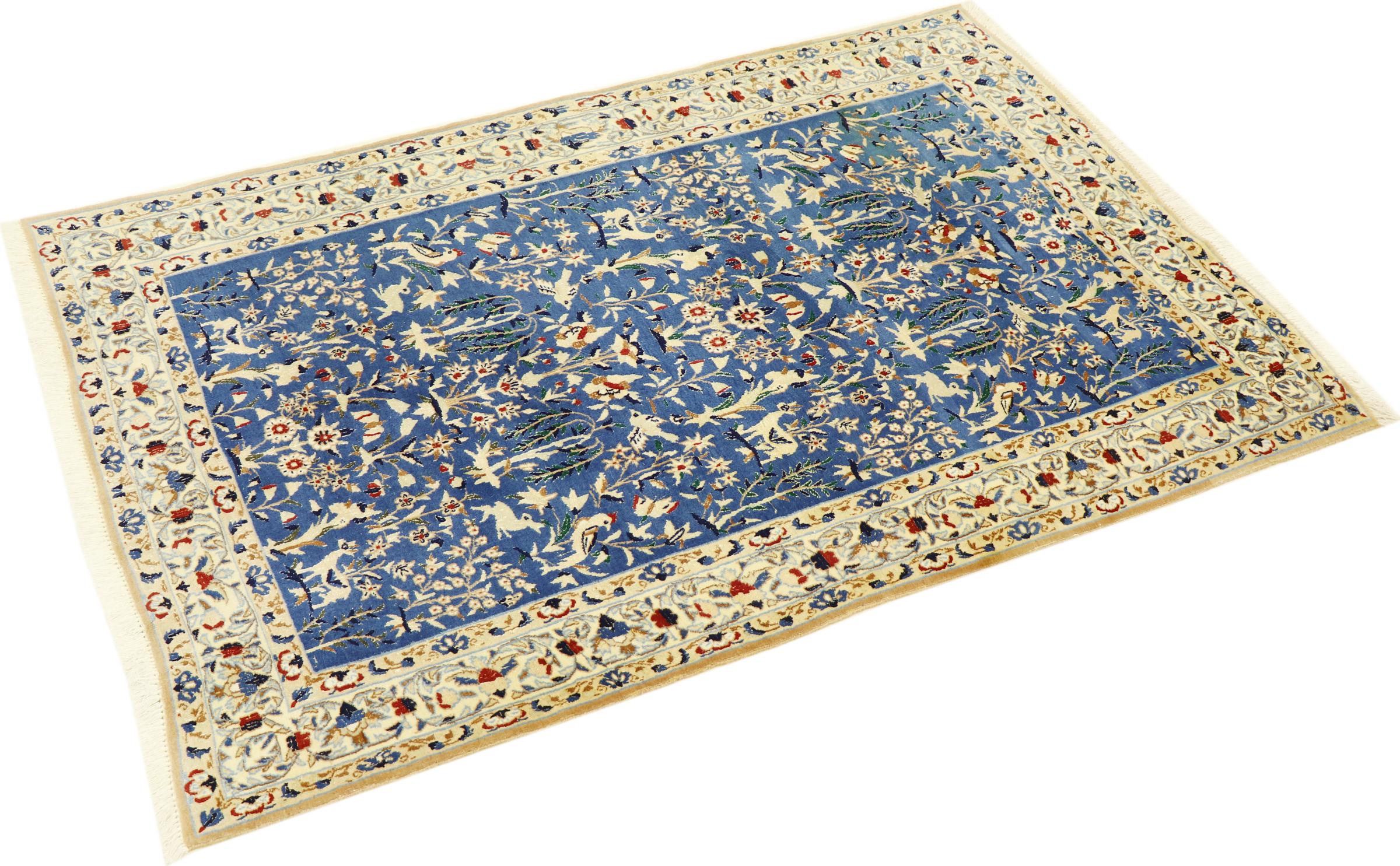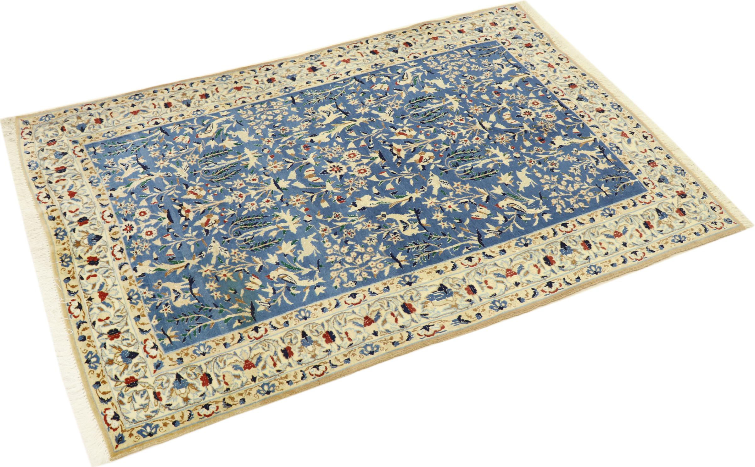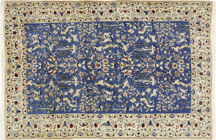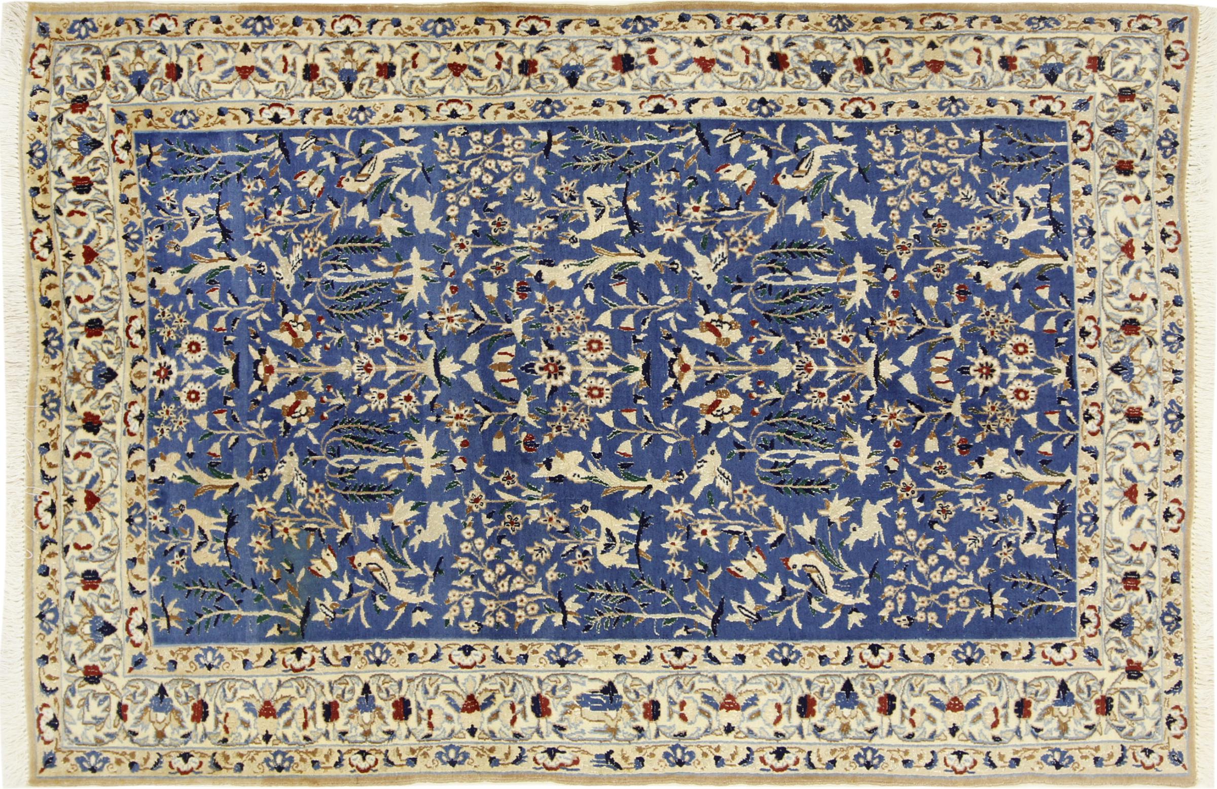 Las alfombras de la ciudad de Nain, en la frontera de uno de los mayores desiertos de Irán, están entre las alfombras persas más famosas del mundo. Su diseño típico es inconfundible con adornos florales, un medallón central y tonos beige y rojo o azul. Gracias a sus designaciones 4La, 6La, 9La y 12La, las sutilezas de una alfombra de Nain se pueden ver a simple vista. Cuanto más bajo sea el número "La", más alta es la densidad del nudo y por lo tanto más fina es la alfombra.