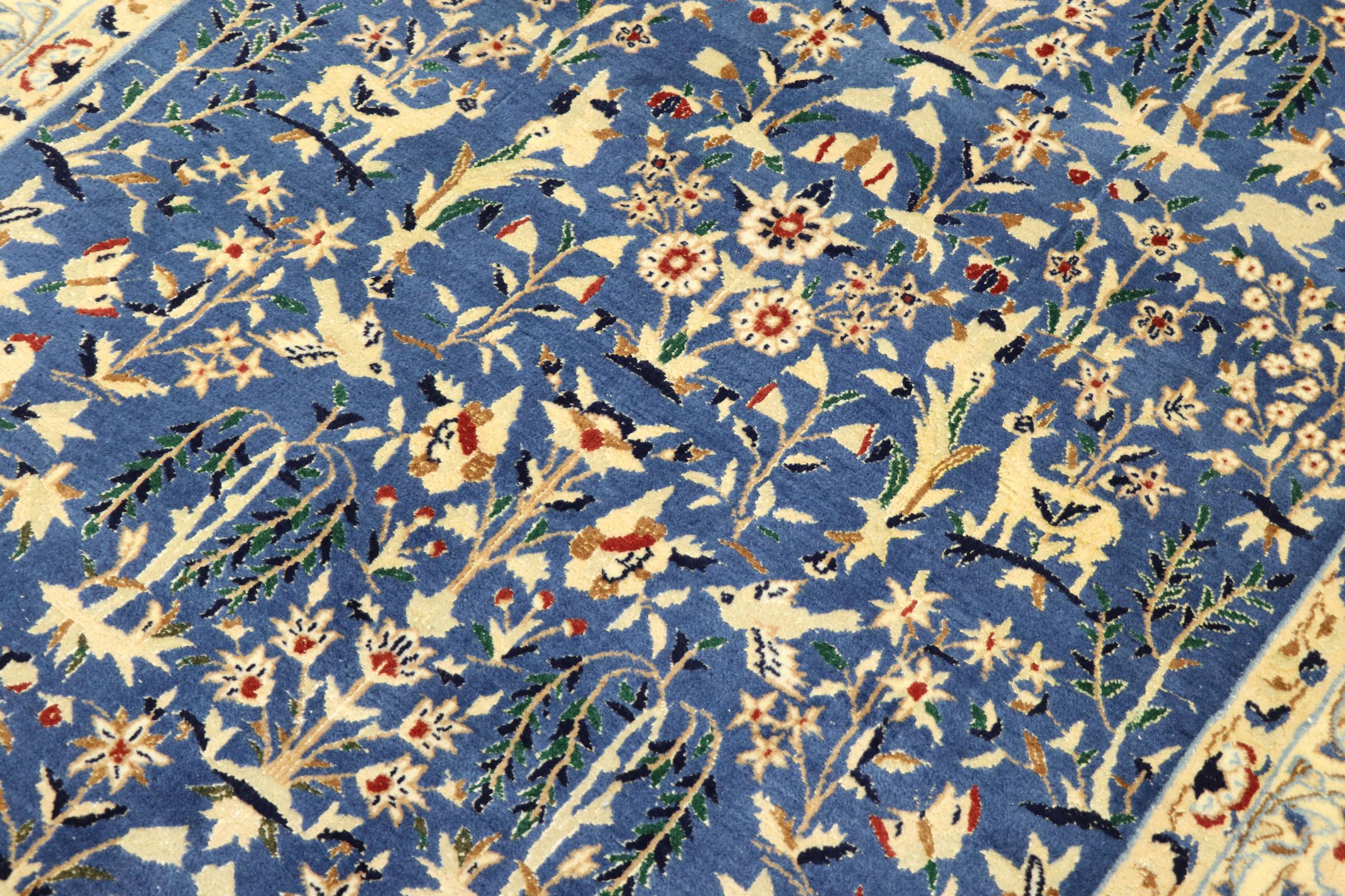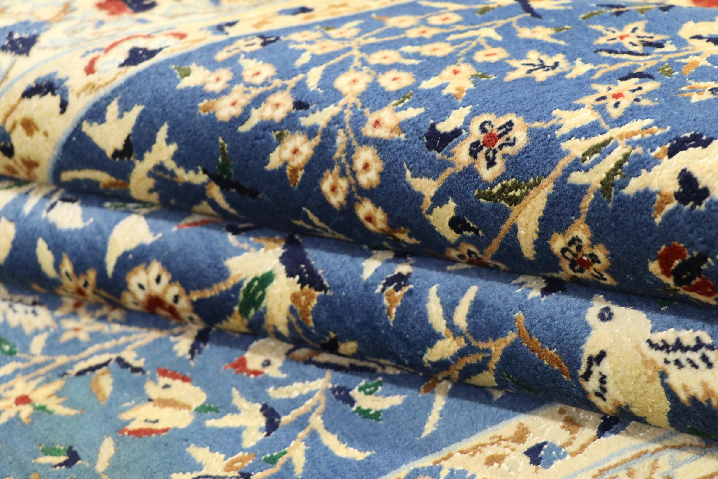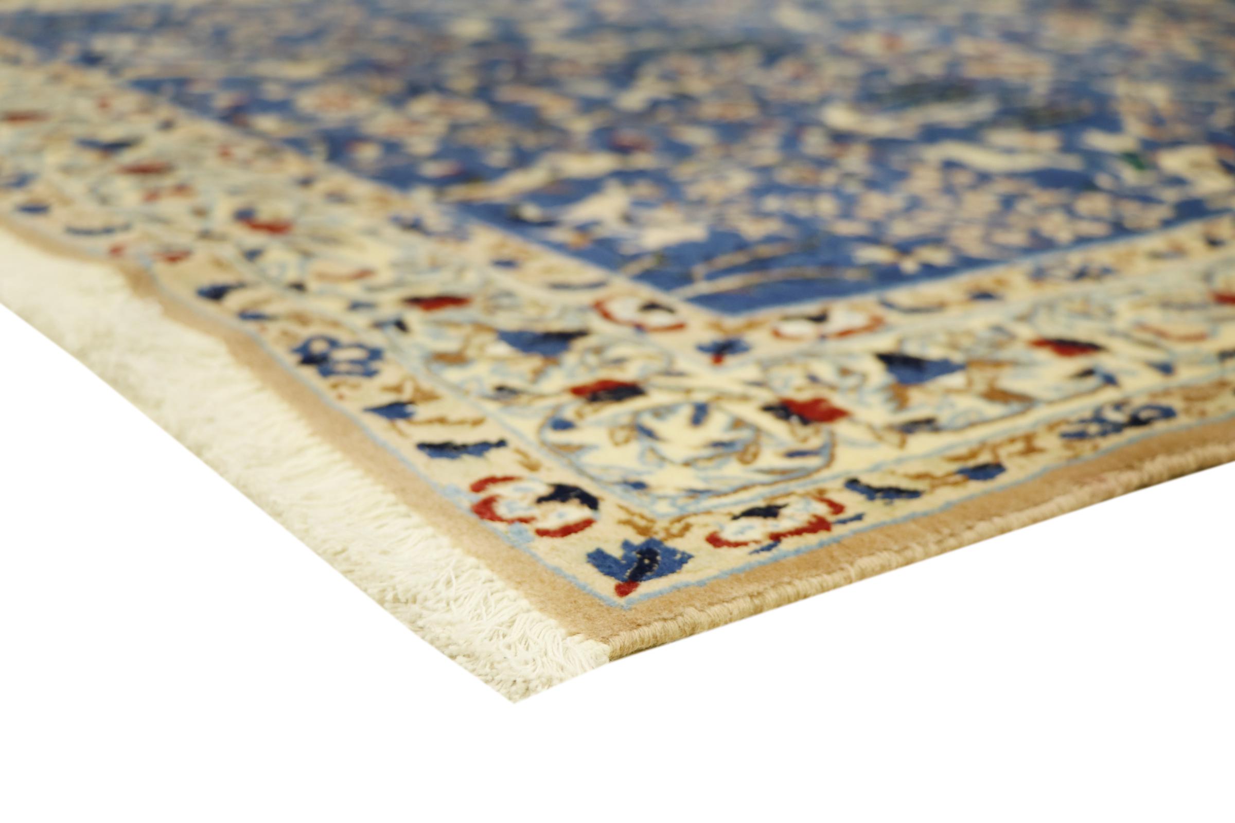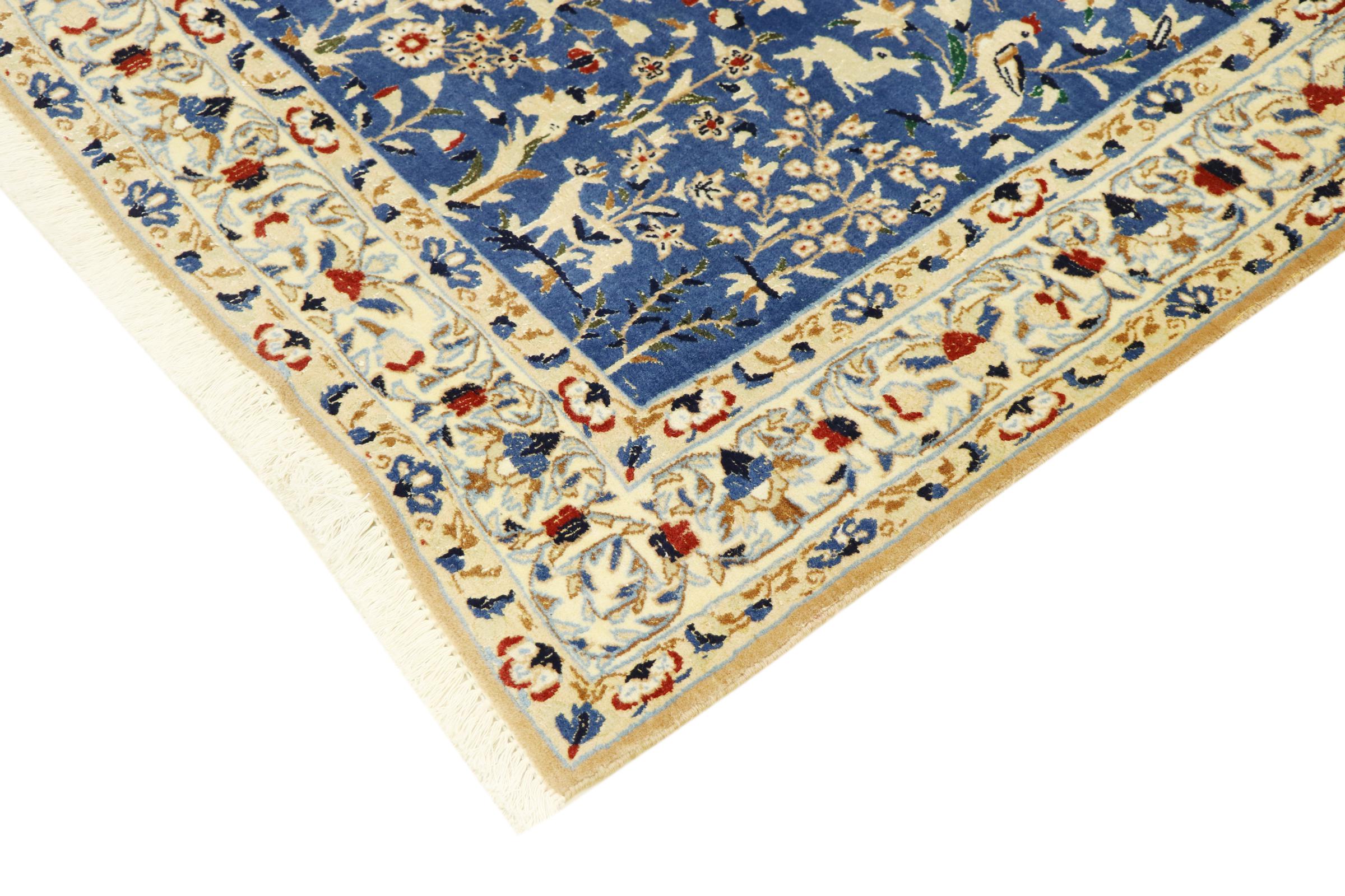 Esta alfombra Nain está clasificada como 12La. Tiene un aspecto elegante y refinado con su colorido típico de Naín. Esta alfombra persa fue anudada a mano en la ciudad de Naín, situada en el extremo occidental del desierto de Dasht-e-Kavir, con lana de alta calidad y seda natural. Con un tamaño de 12La, no está tan finamente detallada con ornamentos como una Nain 9La o 6La.