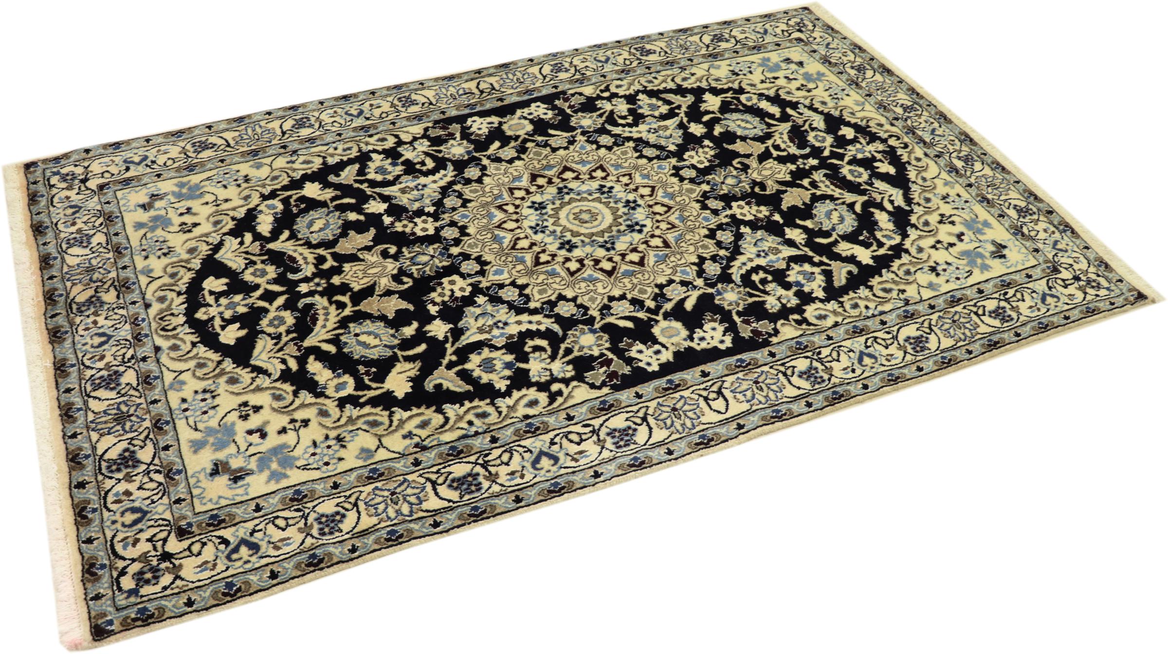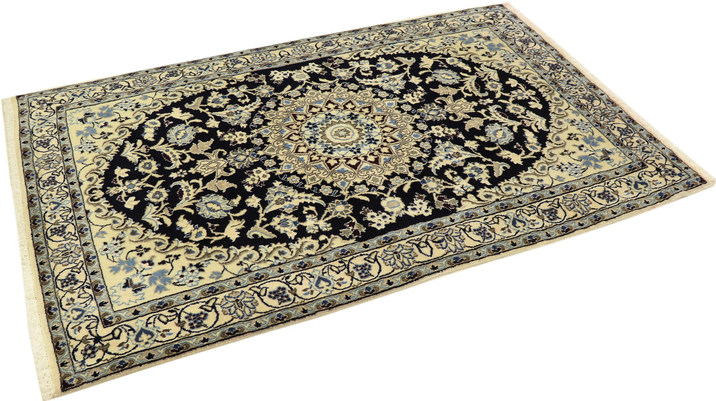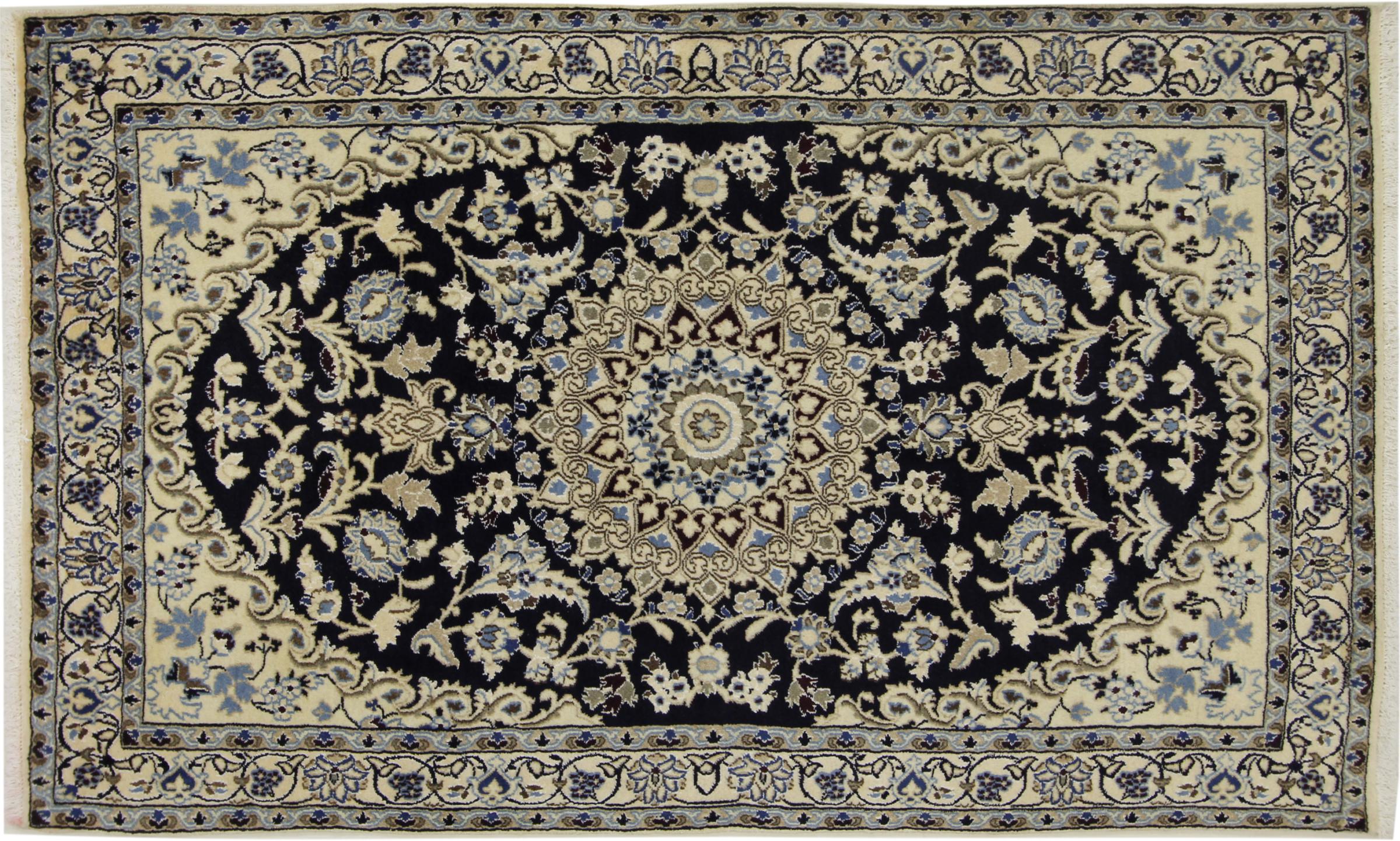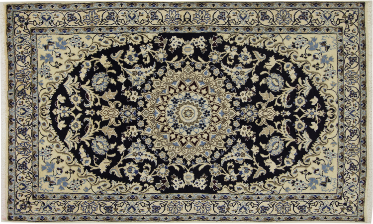Las alfombras de la ciudad de Nain, en la frontera de uno de los mayores desiertos de Irán, están entre las alfombras persas más famosas del mundo. Su diseño típico es inconfundible con adornos florales, un medallón central y tonos beige y rojo o azul. Gracias a sus designaciones 4La, 6La, 9La y 12La, las sutilezas de una alfombra de Nain se pueden ver a simple vista. Cuanto más bajo sea el número "La", más alta es la densidad del nudo y por lo tanto más fina es la alfombra.