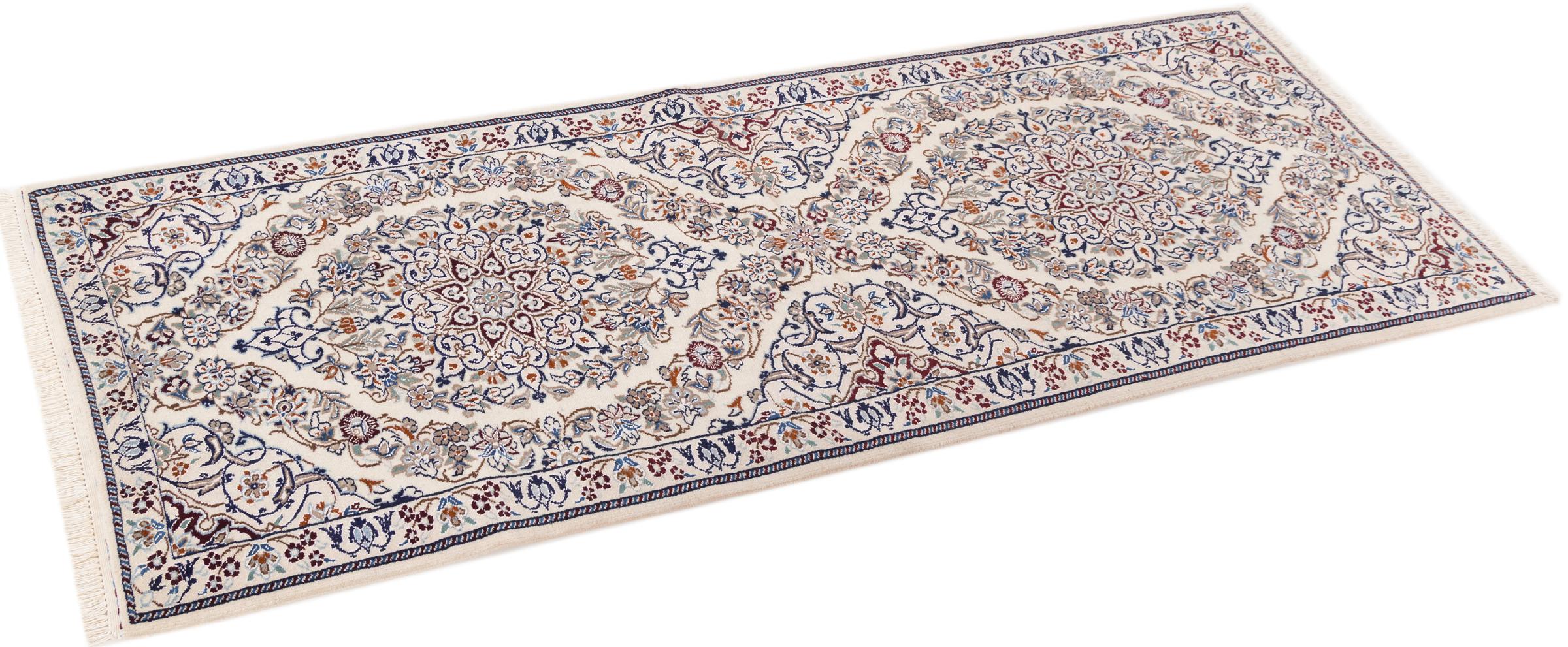 Alfombra número: 298802008592 Tamaño: 195x69 cm Espesor: alrededor de 6 mm Nudos: 810 000 / m² Elaboración: Anudado a mano Crespón: Lana con seda Urdimbre: Algodón Origen: Persia / Iran Edad: Nuevo Peso: alrededor de 3 kg Cantidad en stock: Única - Solo 1 en stock