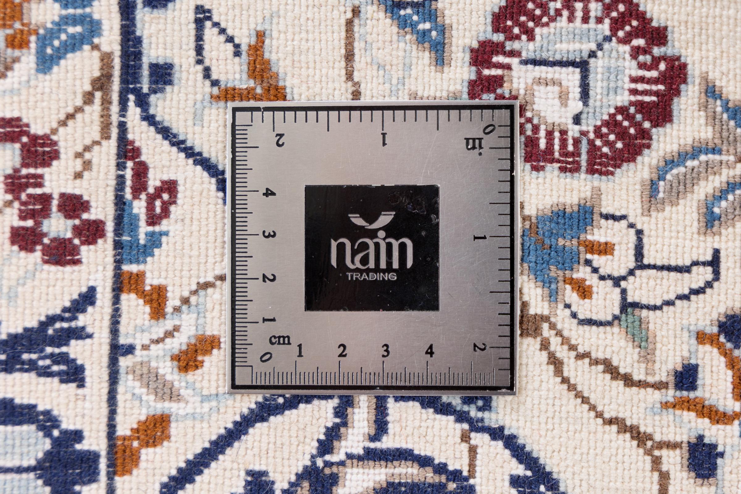 Las alfombras de la ciudad de Nain, en la frontera de uno de los mayores desiertos de Irán, están entre las alfombras persas más famosas del mundo. Su diseño típico es inconfundible con adornos florales, un medallón central y tonos beige y rojo o azul. Gracias a sus designaciones 4La, 6La, 9La y 12La, las sutilezas de una alfombra de Nain se pueden ver a simple vista. Cuanto más bajo sea el número "La", más alta es la densidad del nudo y por lo tanto más fina es la alfombra.