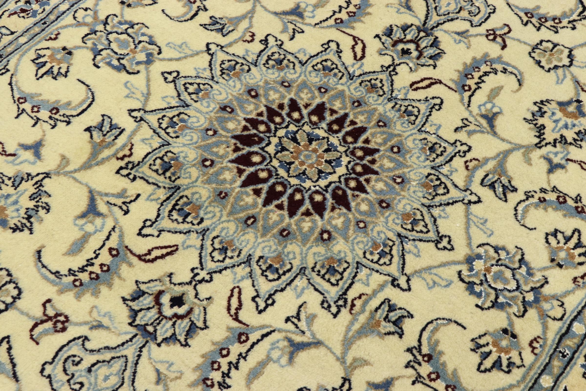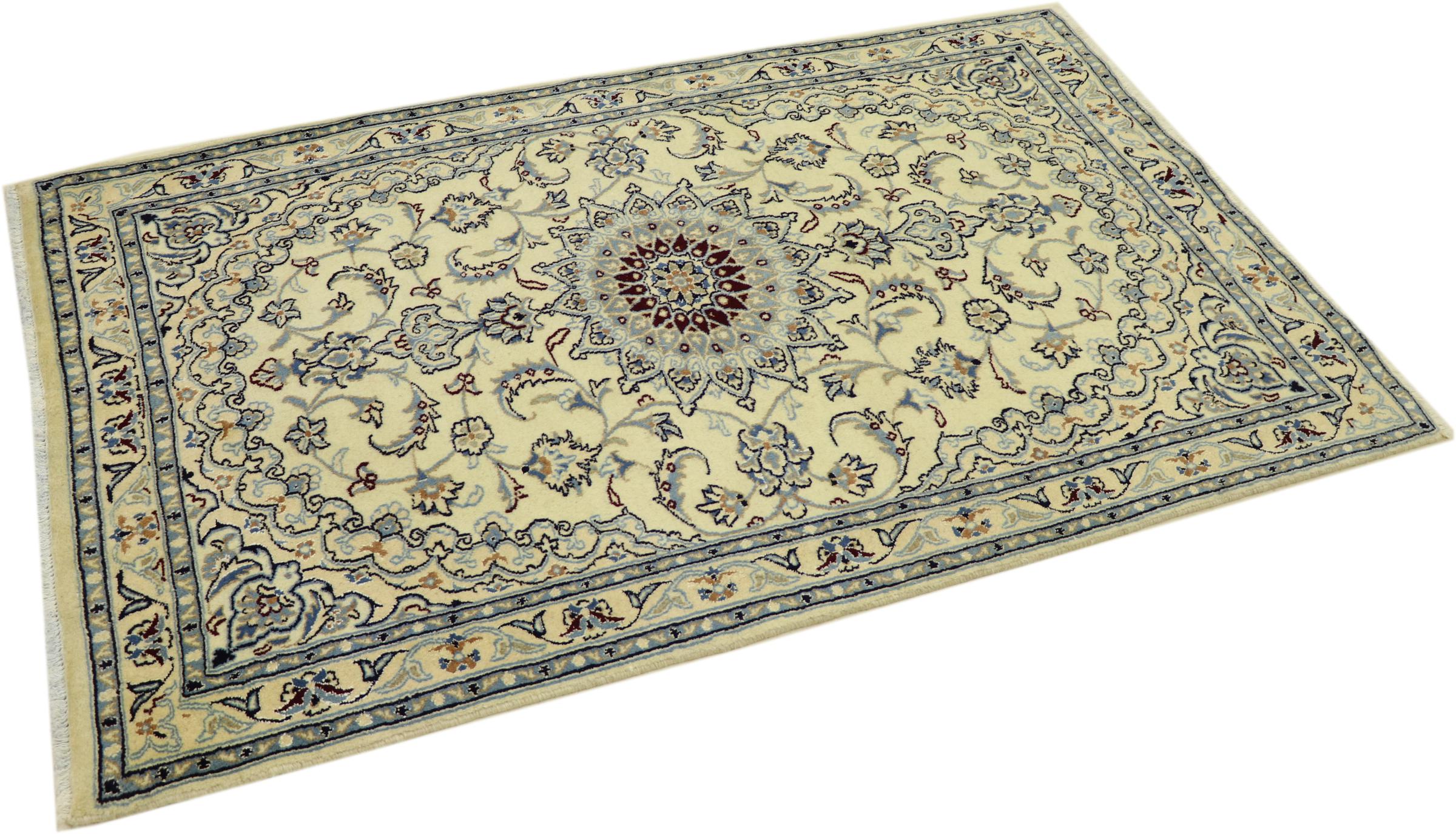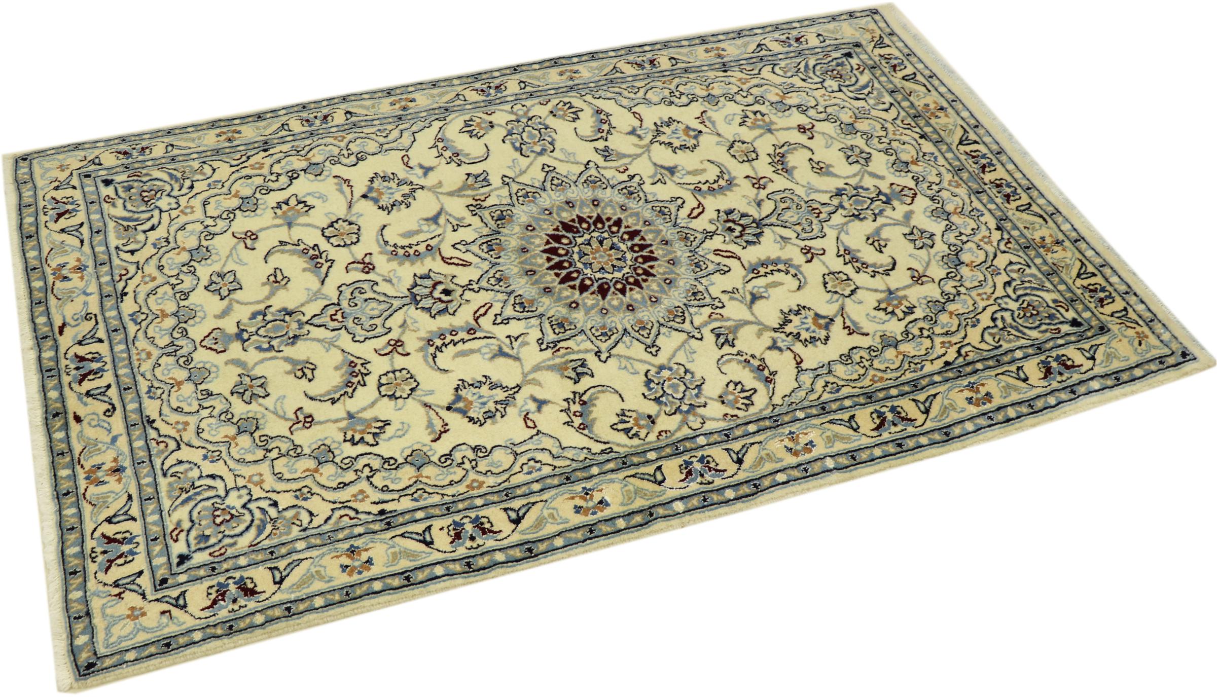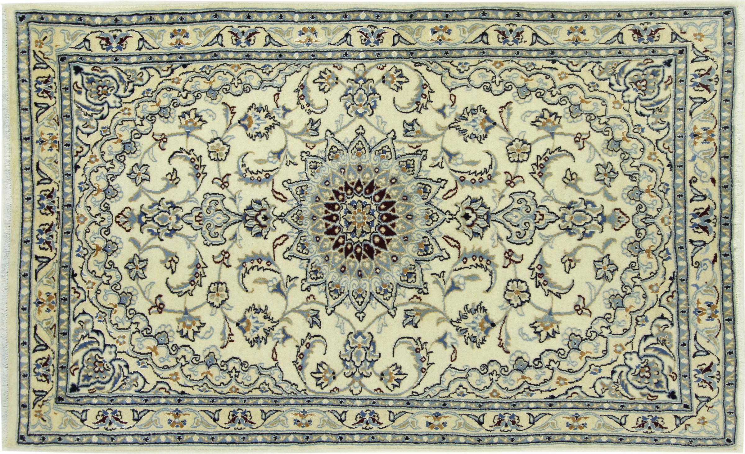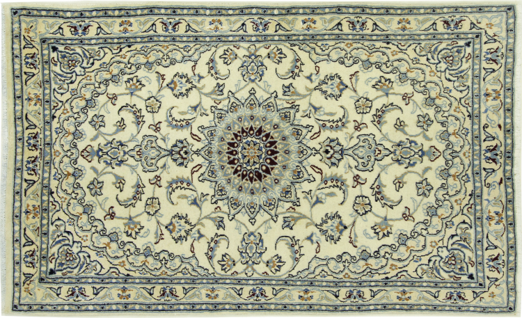 Las alfombras de la ciudad de Nain, en la frontera de uno de los mayores desiertos de Irán, están entre las alfombras persas más famosas del mundo. Su diseño típico es inconfundible con adornos florales, un medallón central y tonos beige y rojo o azul. Gracias a sus designaciones 4La, 6La, 9La y 12La, las sutilezas de una alfombra de Nain se pueden ver a simple vista. Cuanto más bajo sea el número "La", más alta es la densidad del nudo y por lo tanto más fina es la alfombra.
