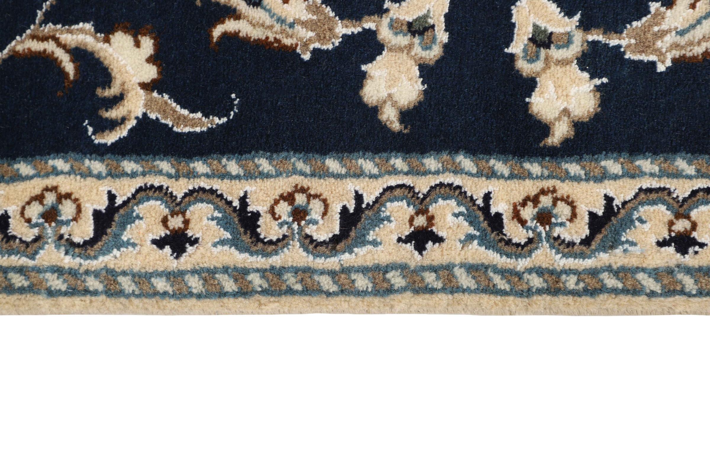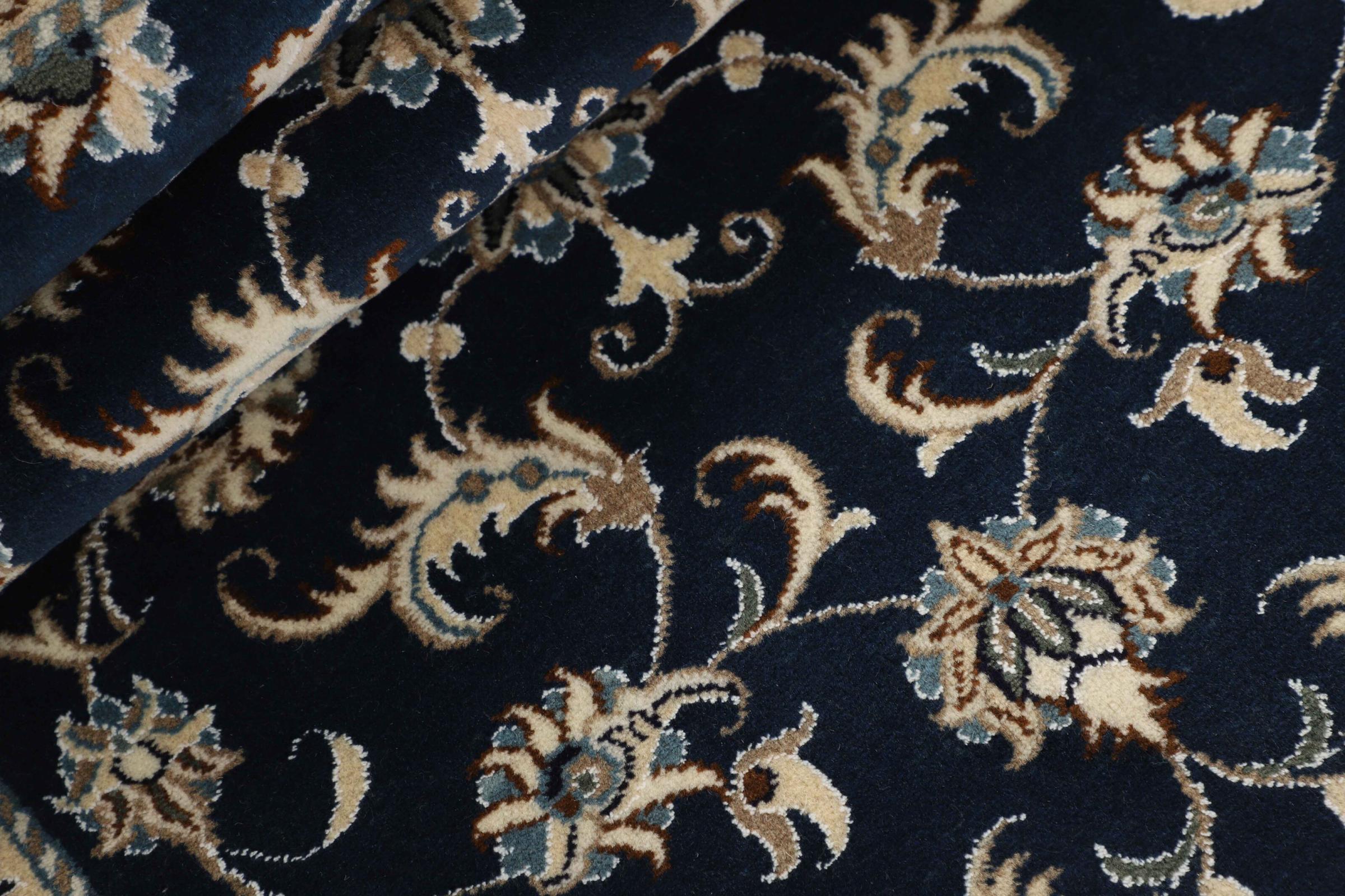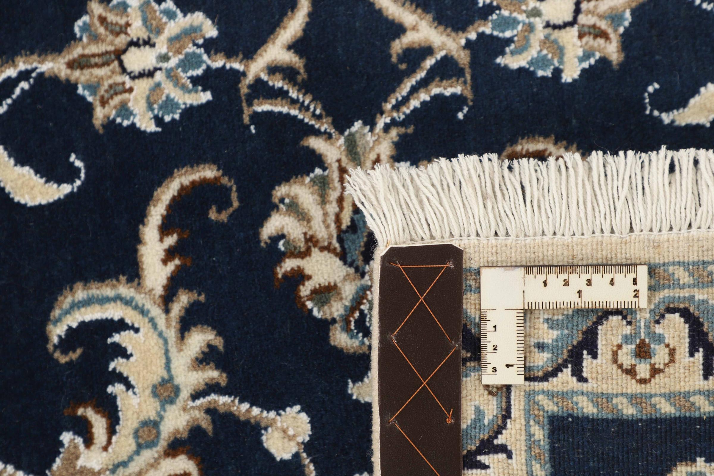 Esta alfombra Nain está clasificada como 12La. Tiene un aspecto elegante y refinado con su colorido típico de Naín. Esta alfombra persa fue anudada a mano en la ciudad de Naín, situada en el extremo occidental del desierto de Dasht-e-Kavir, con lana de alta calidad y seda natural. Con un tamaño de 12La, no está tan finamente detallada con ornamentos como una Nain 9La o 6La.