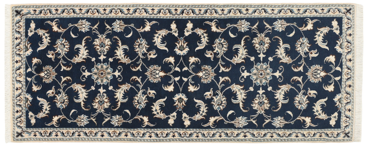 Alfombra número: 291743004938642 Tamaño: 197x83 cm Espesor: alrededor de 12 mm Nudos: 160 000 - 200 000 / m² Elaboración: Anudado a mano Crespón: Lana con seda Urdimbre: Algodón Origen: Persia / Iran Edad: Nuevo Peso: alrededor de 6 kg Cantidad en stock: Única - Solo 1 en stock