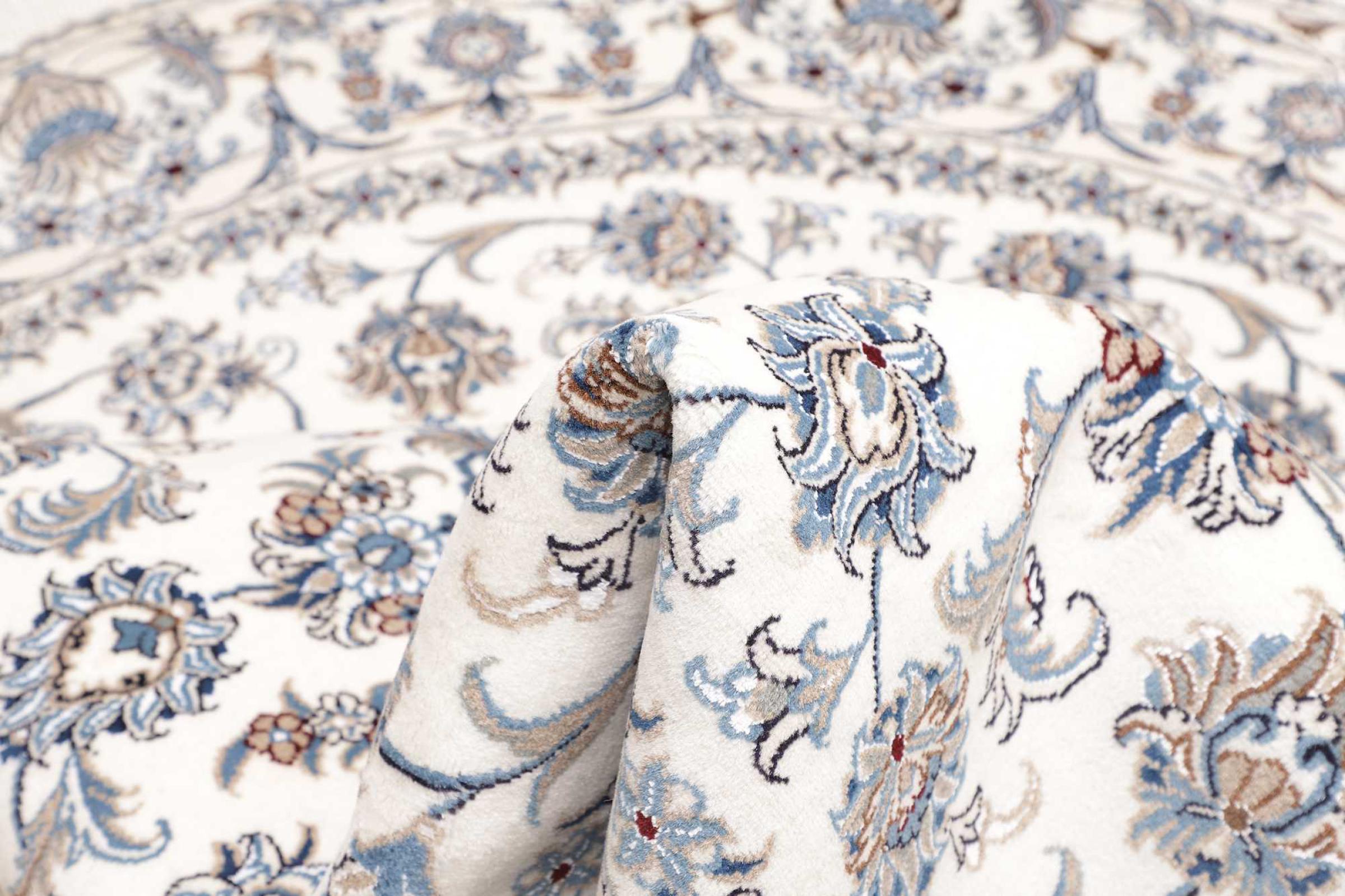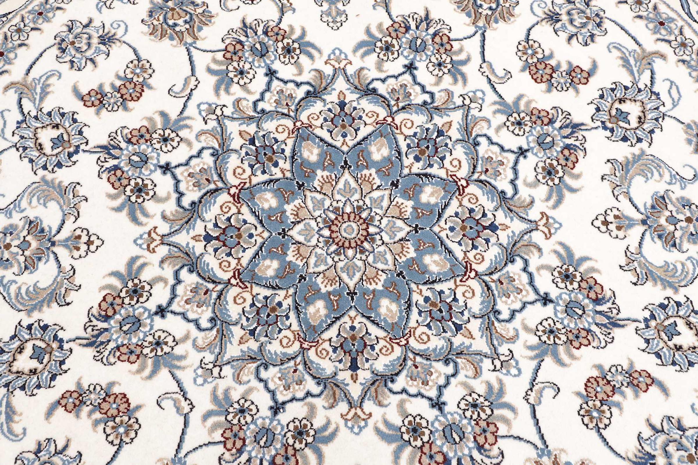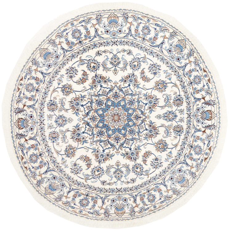 Las alfombras de la ciudad de Nain, en la frontera de uno de los mayores desiertos de Irán, están entre las alfombras persas más famosas del mundo. Su diseño típico es inconfundible con adornos florales, un medallón central y tonos beige y rojo o azul. Gracias a sus designaciones 4La, 6La, 9La y 12La, las sutilezas de una alfombra de Nain se pueden ver a simple vista. Cuanto más bajo sea el número "La", más alta es la densidad del nudo y por lo tanto más fina es la alfombra.