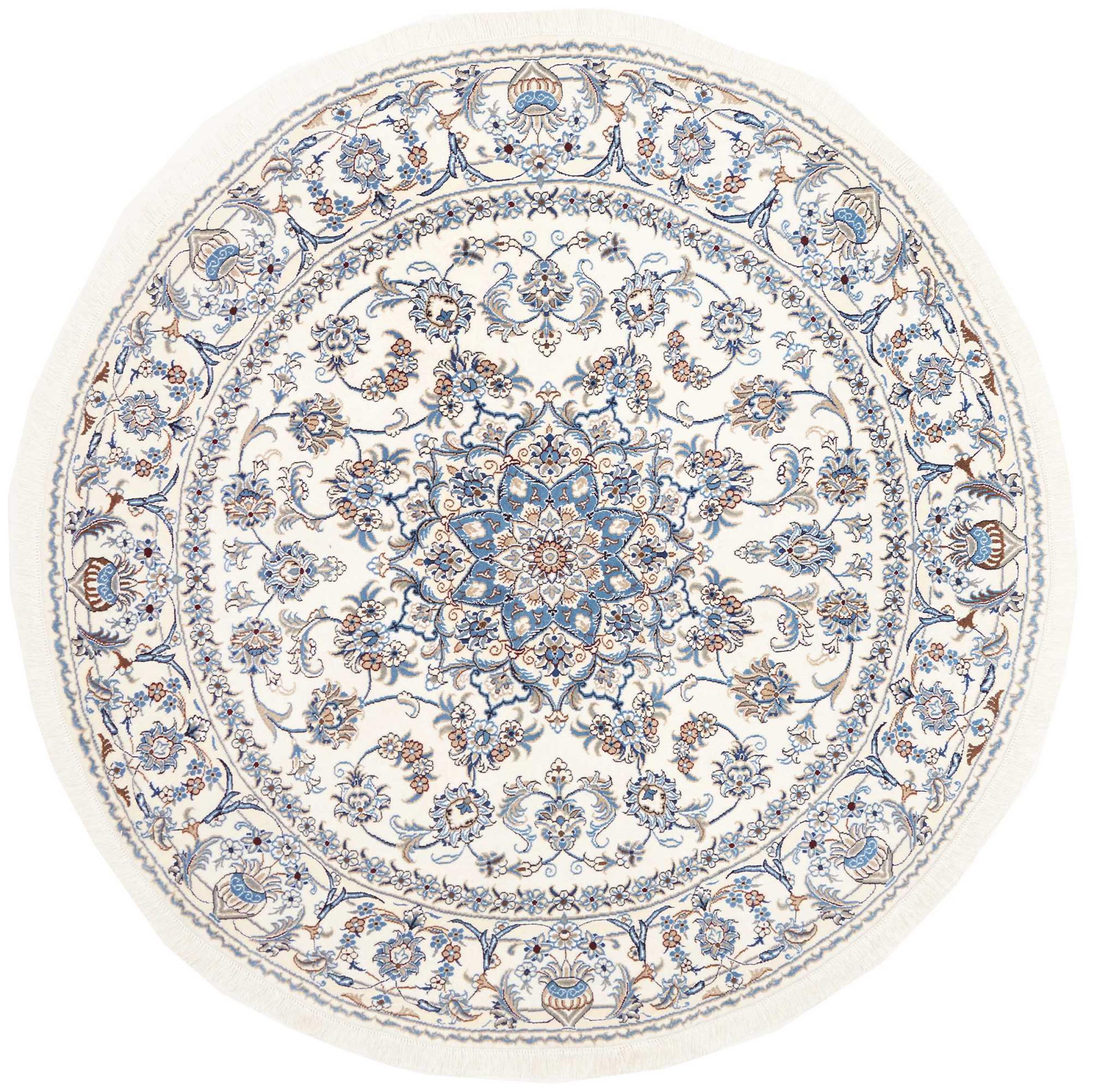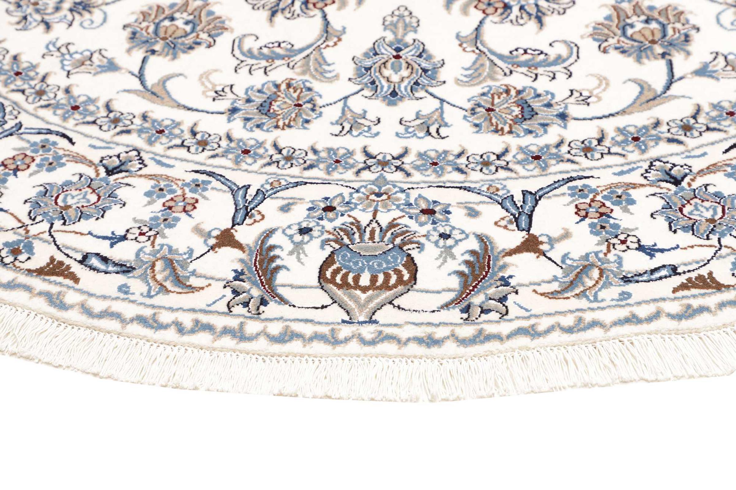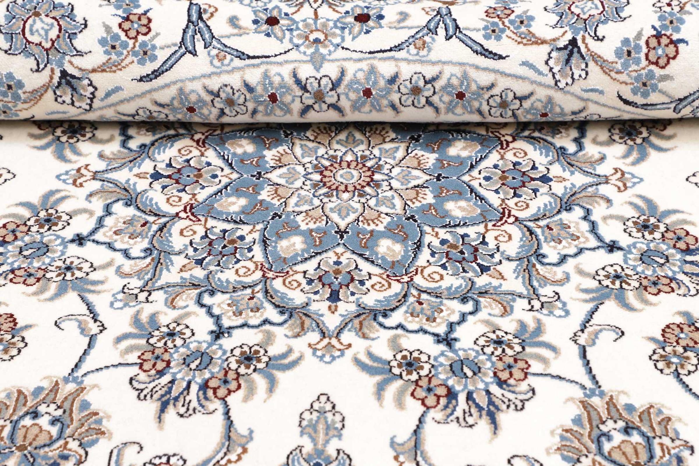 Las alfombras de la ciudad de Nain, en la frontera de uno de los mayores desiertos de Irán, están entre las alfombras persas más famosas del mundo. Su diseño típico es inconfundible con adornos florales, un medallón central y tonos beige y rojo o azul. Gracias a sus designaciones 4La, 6La, 9La y 12La, las sutilezas de una alfombra de Nain se pueden ver a simple vista. Cuanto más bajo sea el número "La", más alta es la densidad del nudo y por lo tanto más fina es la alfombra.