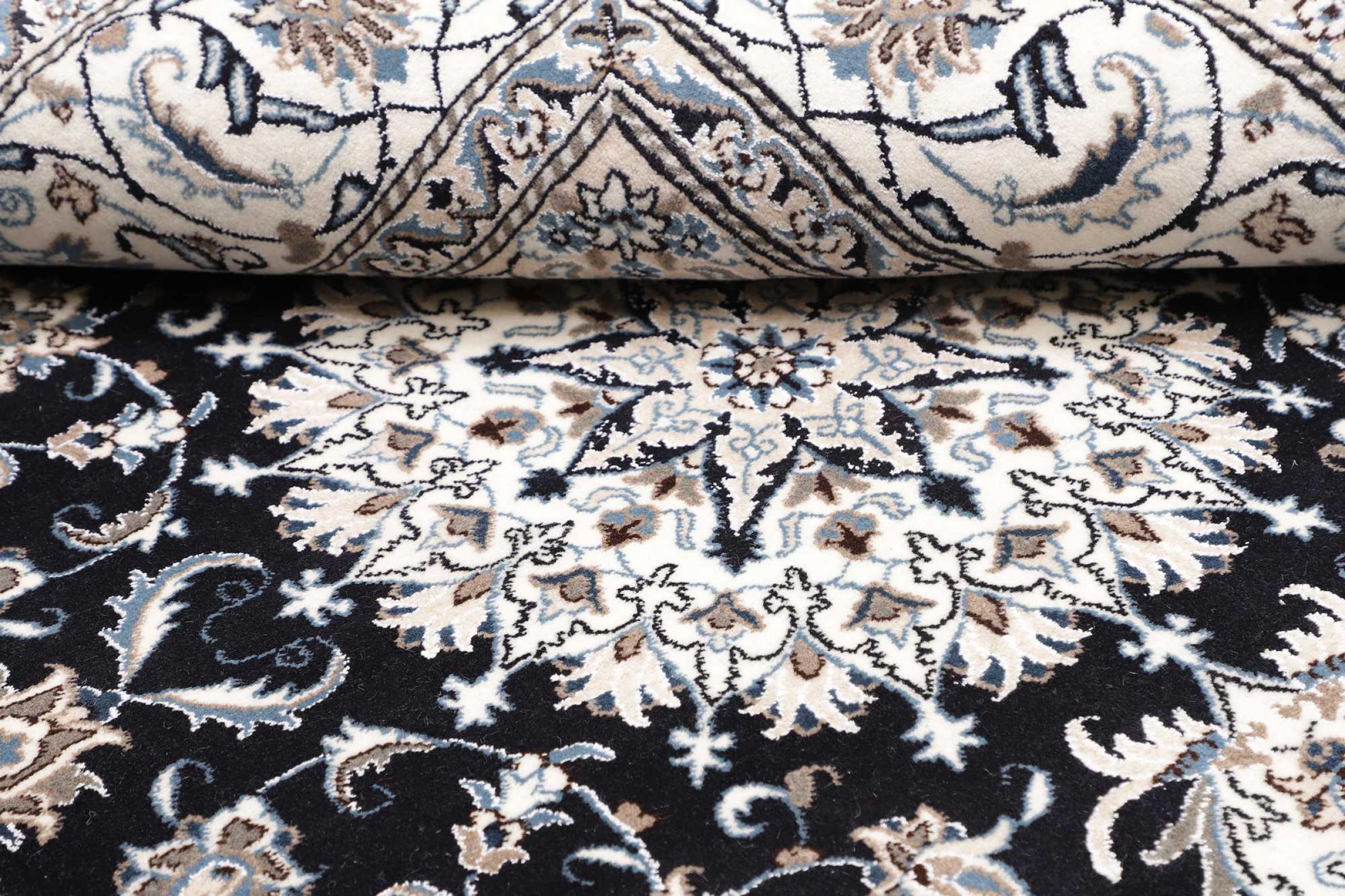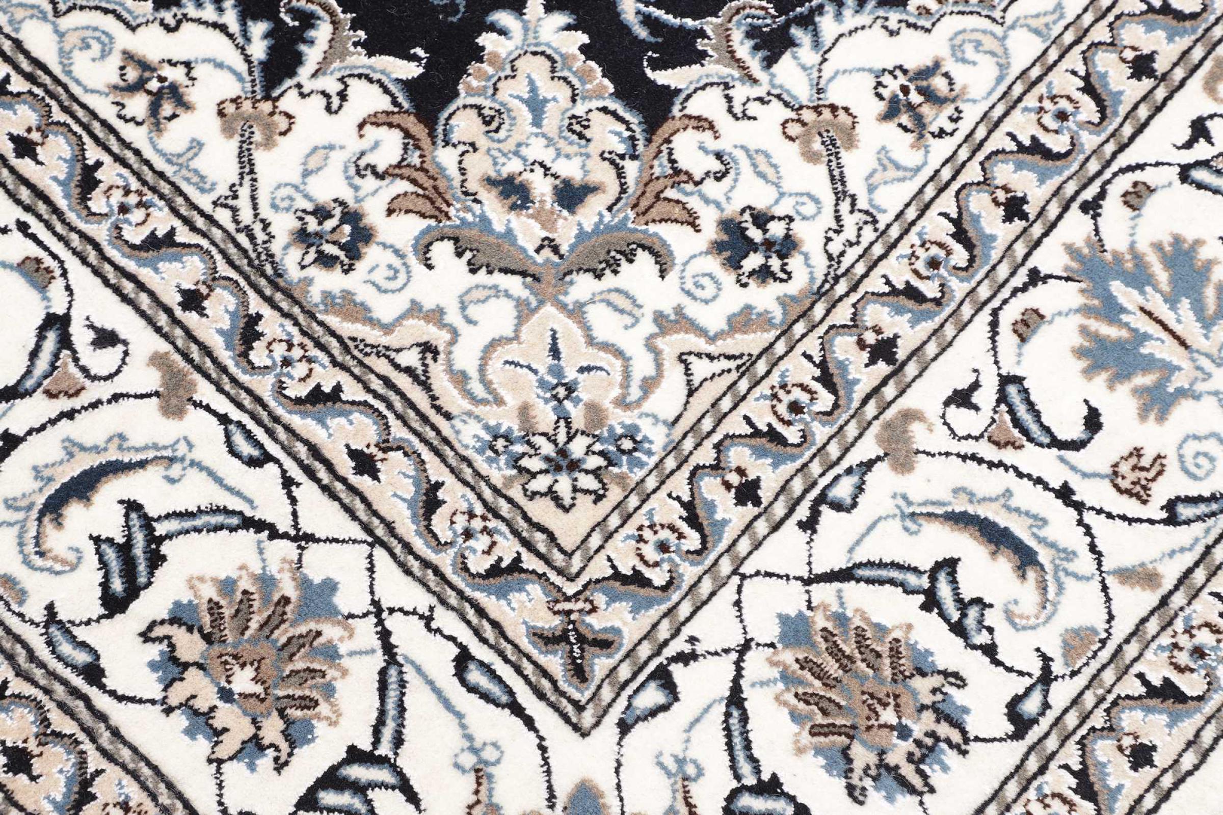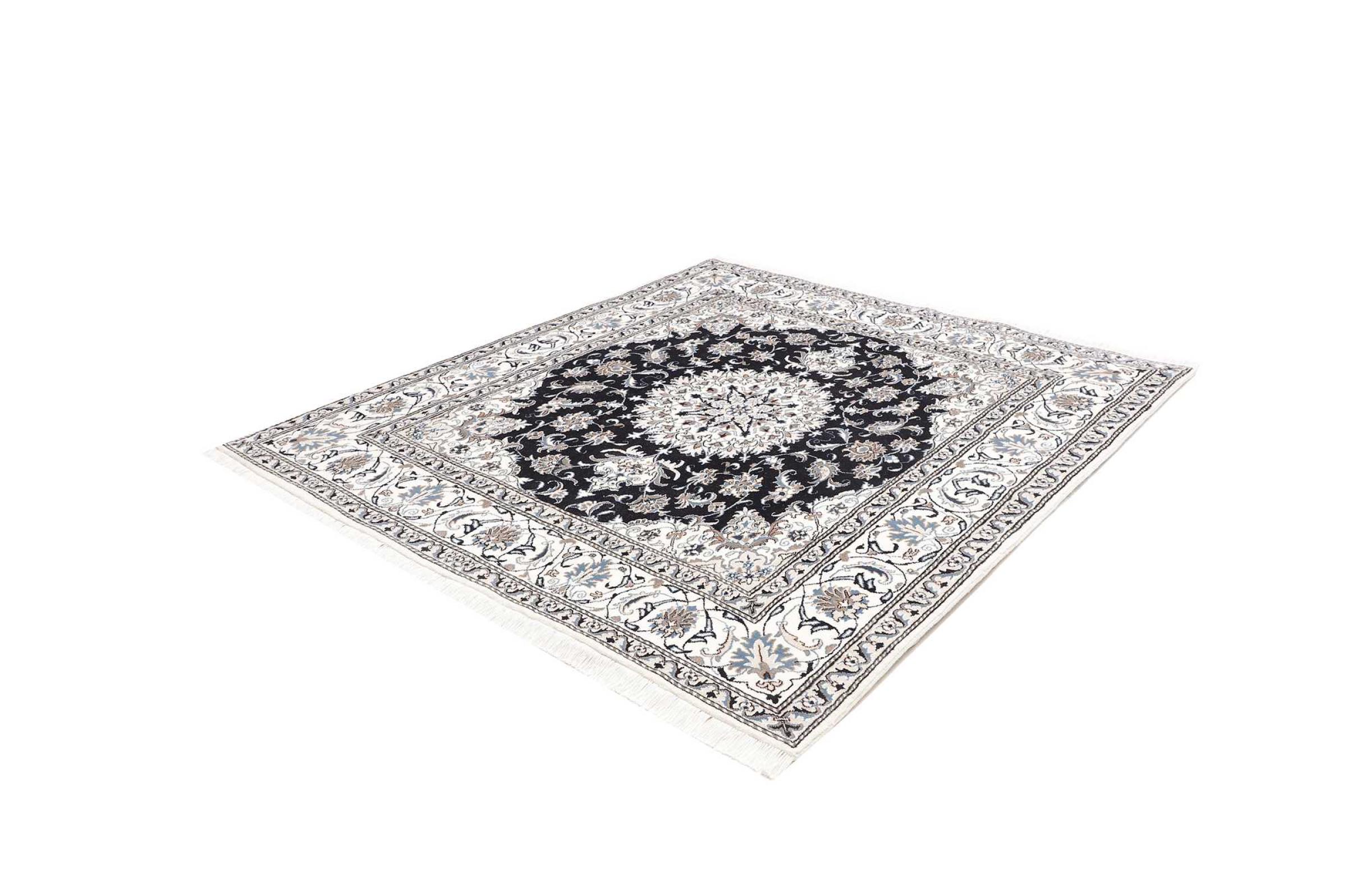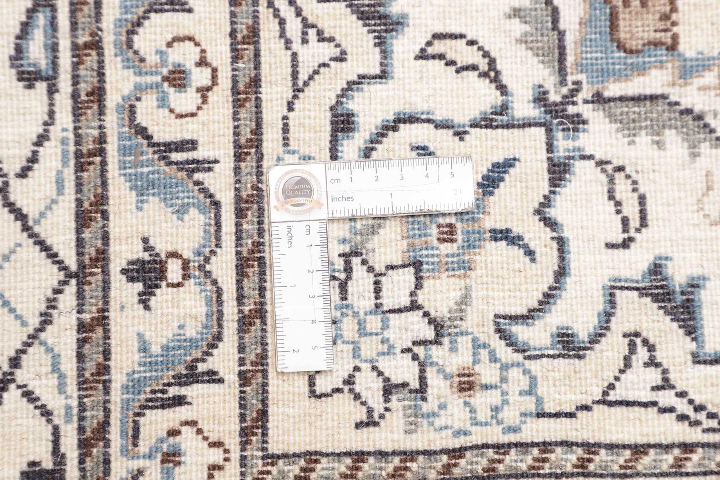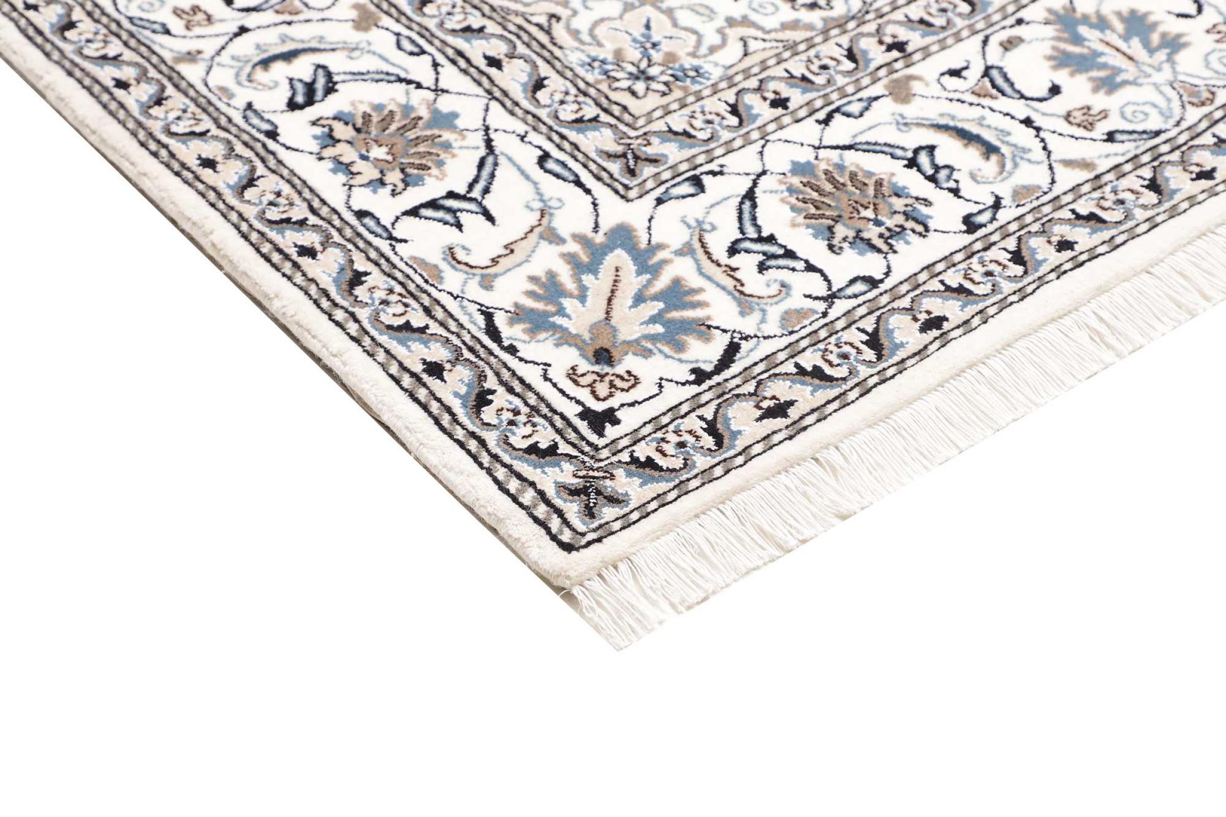Esta alfombra Nain está clasificada como 12La. Tiene un aspecto elegante y refinado con su colorido típico de Naín. Esta alfombra persa fue anudada a mano en la ciudad de Naín, situada en el extremo occidental del desierto de Dasht-e-Kavir, con lana de alta calidad y seda natural. Con un tamaño de 12La, no está tan finamente detallada con ornamentos como una Nain 9La o 6La.