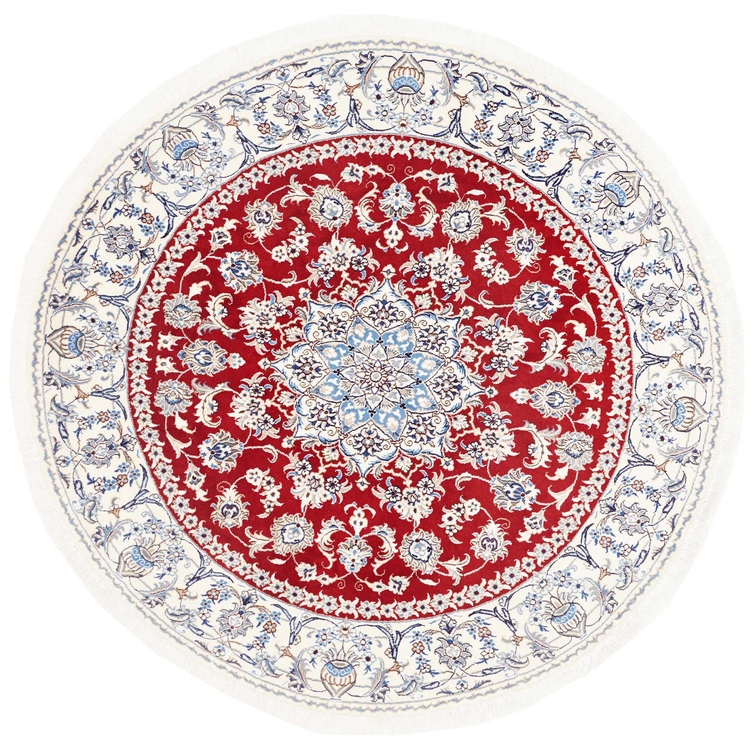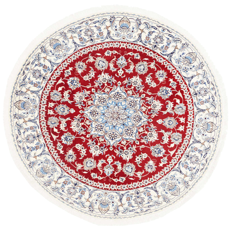 Las alfombras de la ciudad de Nain, en la frontera de uno de los mayores desiertos de Irán, están entre las alfombras persas más famosas del mundo. Su diseño típico es inconfundible con adornos florales, un medallón central y tonos beige y rojo o azul. Gracias a sus designaciones 4La, 6La, 9La y 12La, las sutilezas de una alfombra de Nain se pueden ver a simple vista. Cuanto más bajo sea el número "La", más alta es la densidad del nudo y por lo tanto más fina es la alfombra.