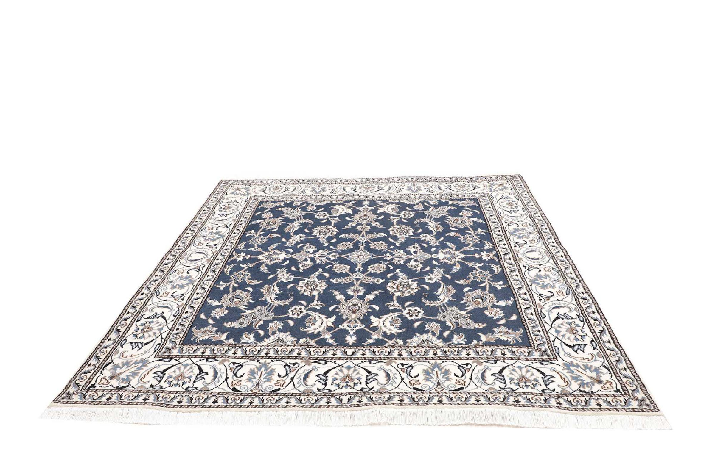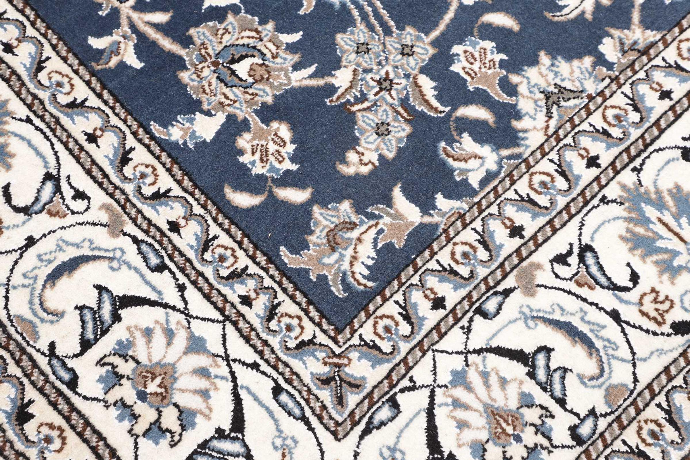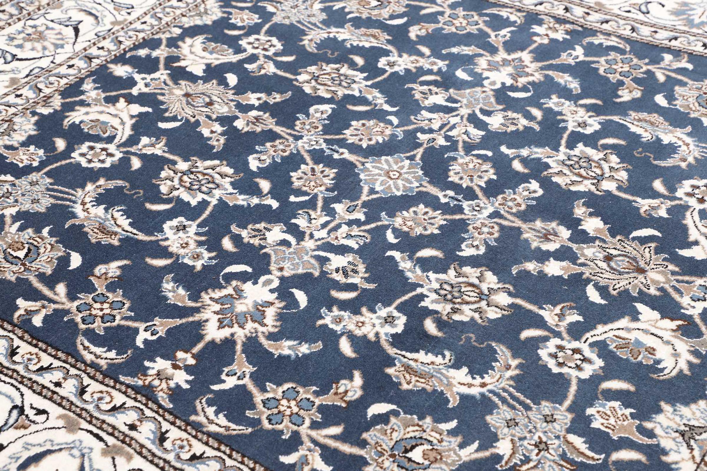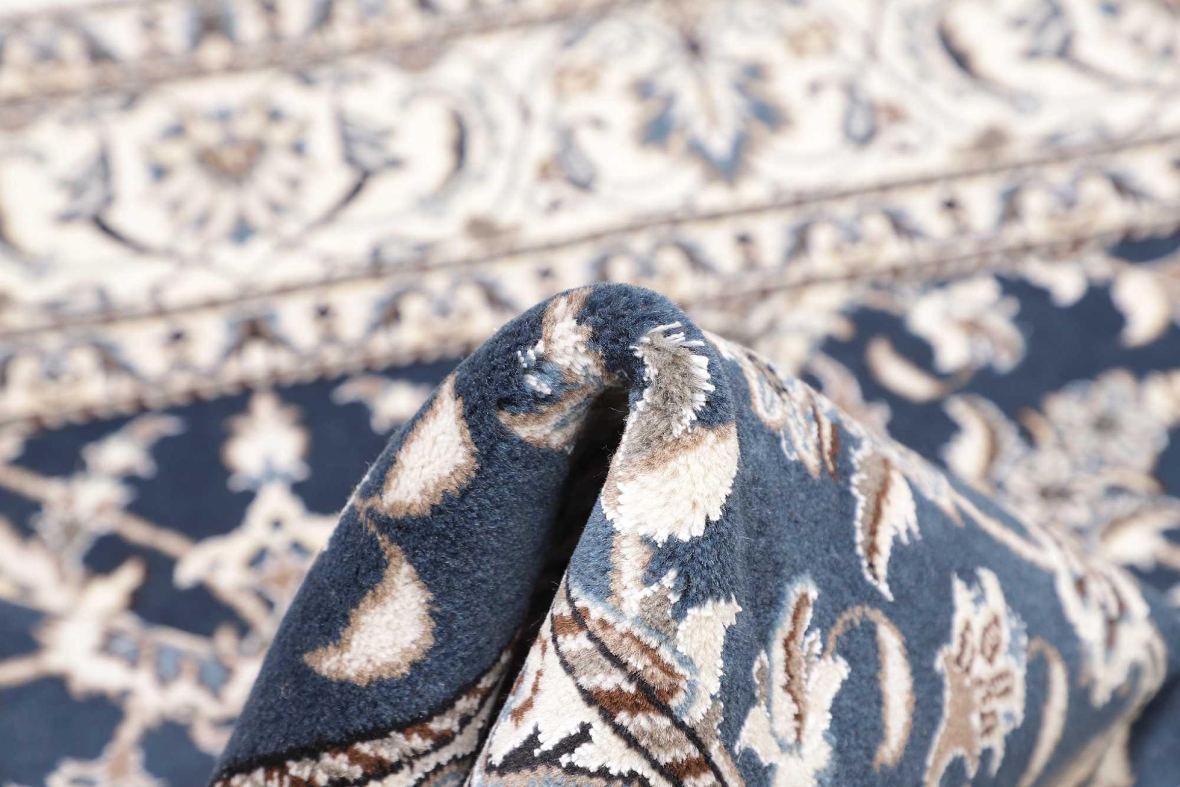 Las alfombras de la ciudad de Nain, en la frontera de uno de los mayores desiertos de Irán, están entre las alfombras persas más famosas del mundo. Su diseño típico es inconfundible con adornos florales, un medallón central y tonos beige y rojo o azul. Gracias a sus designaciones 4La, 6La, 9La y 12La, las sutilezas de una alfombra de Nain se pueden ver a simple vista. Cuanto más bajo sea el número "La", más alta es la densidad del nudo y por lo tanto más fina es la alfombra.