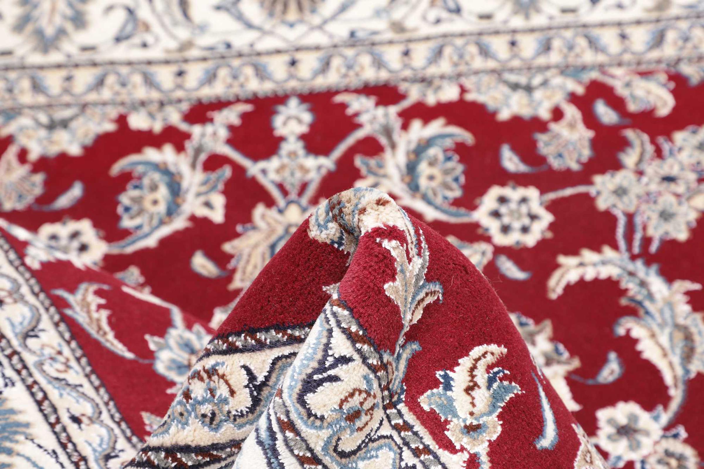 Esta alfombra Nain está clasificada como 12La. Tiene un aspecto elegante y refinado con su colorido típico de Naín. Esta alfombra persa fue anudada a mano en la ciudad de Naín, situada en el extremo occidental del desierto de Dasht-e-Kavir, con lana de alta calidad y seda natural. Con un tamaño de 12La, no está tan finamente detallada con ornamentos como una Nain 9La o 6La.