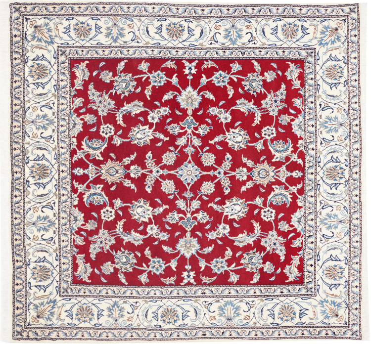 Alfombra número: 31294000417792 Tamaño: 203x196 cm Espesor: alrededor de 12 mm Nudos: 128 000 - 160 000 / m² Elaboración: Anudado a mano Crespón: Lana con seda Urdimbre: Algodón Origen: Persia / Iran Edad: Nuevo Peso: alrededor de 16 kg Cantidad en stock: Única - Solo 1 en stock