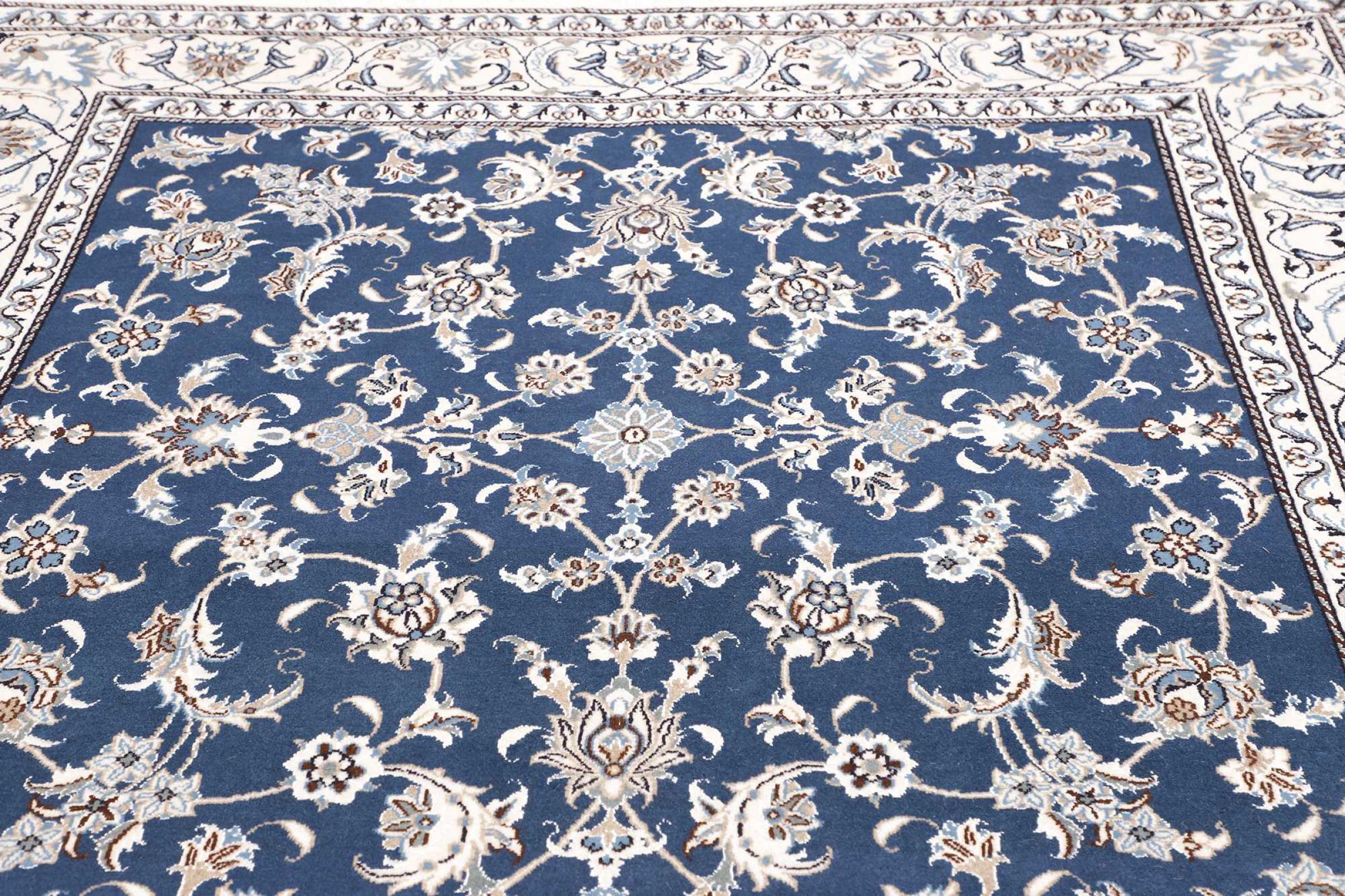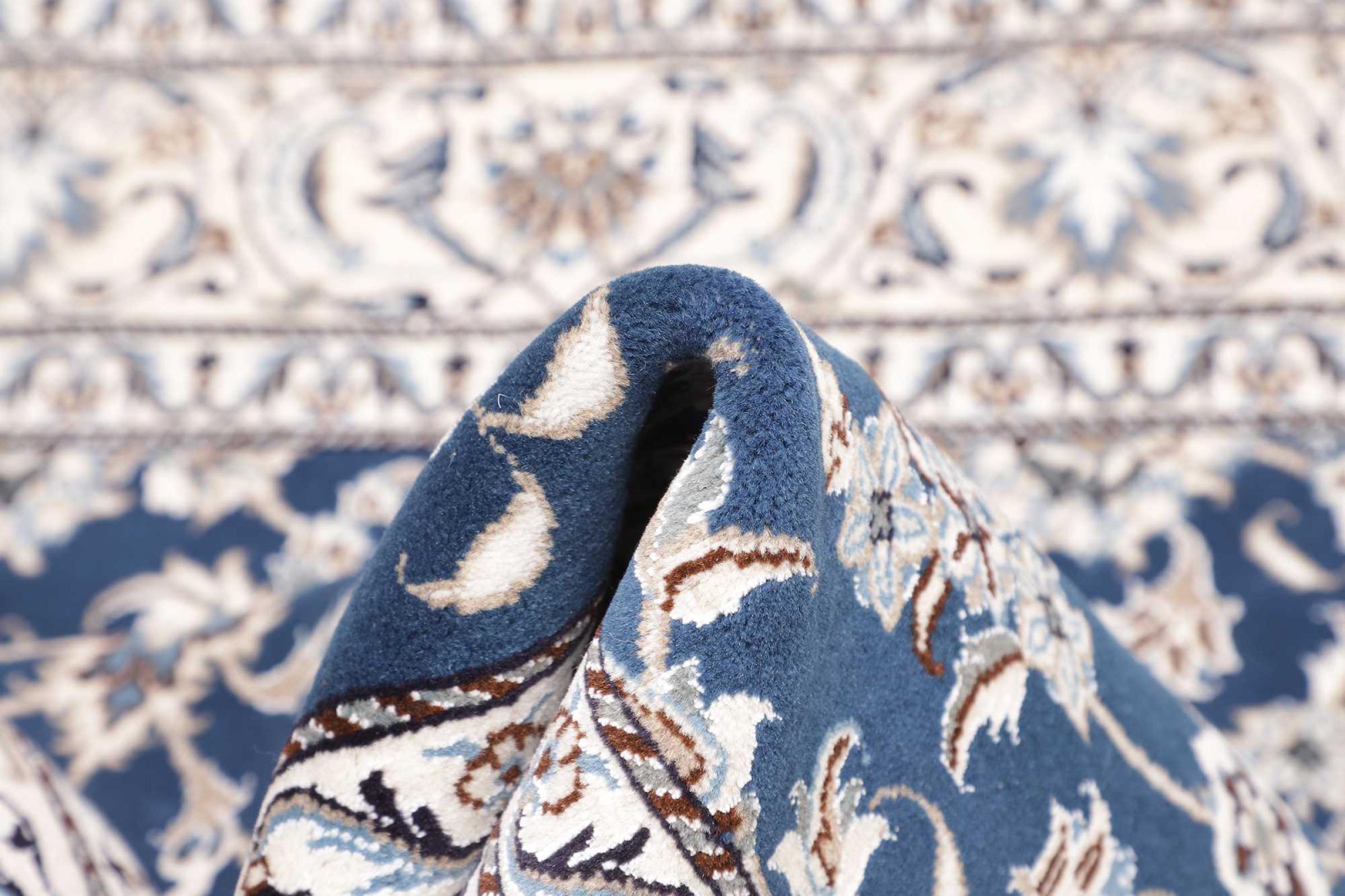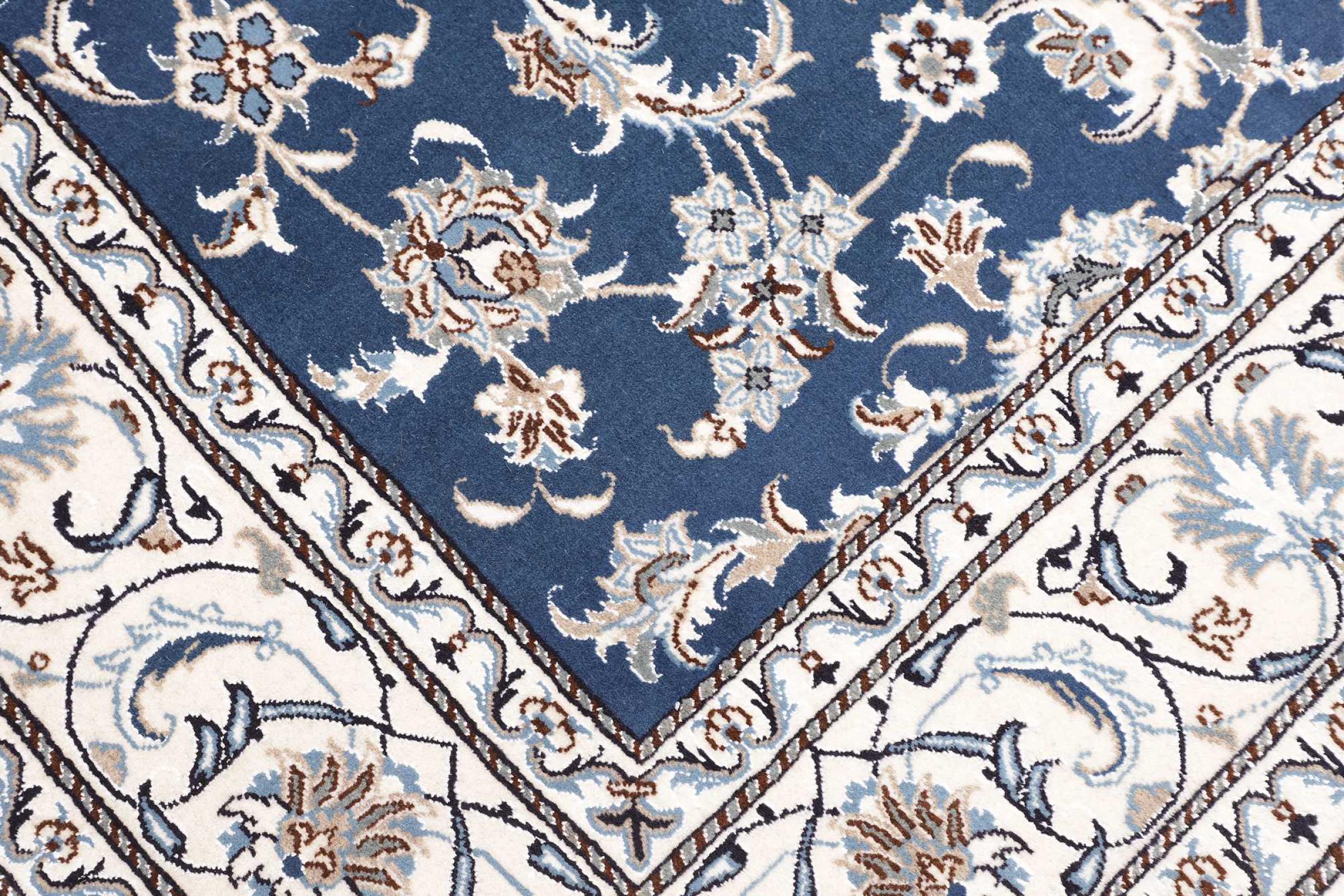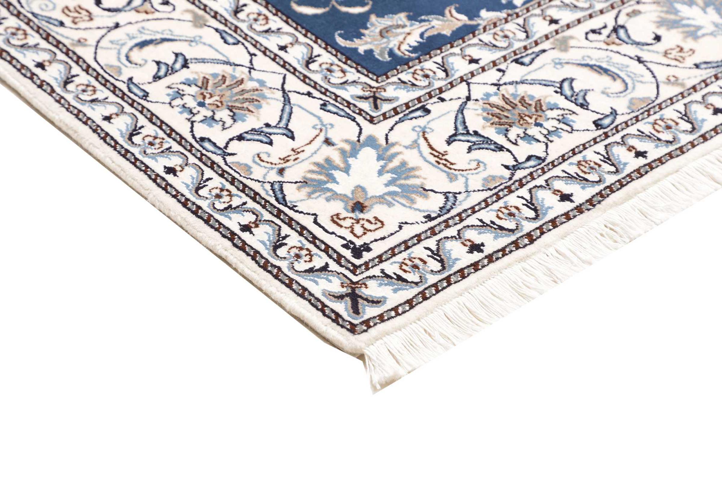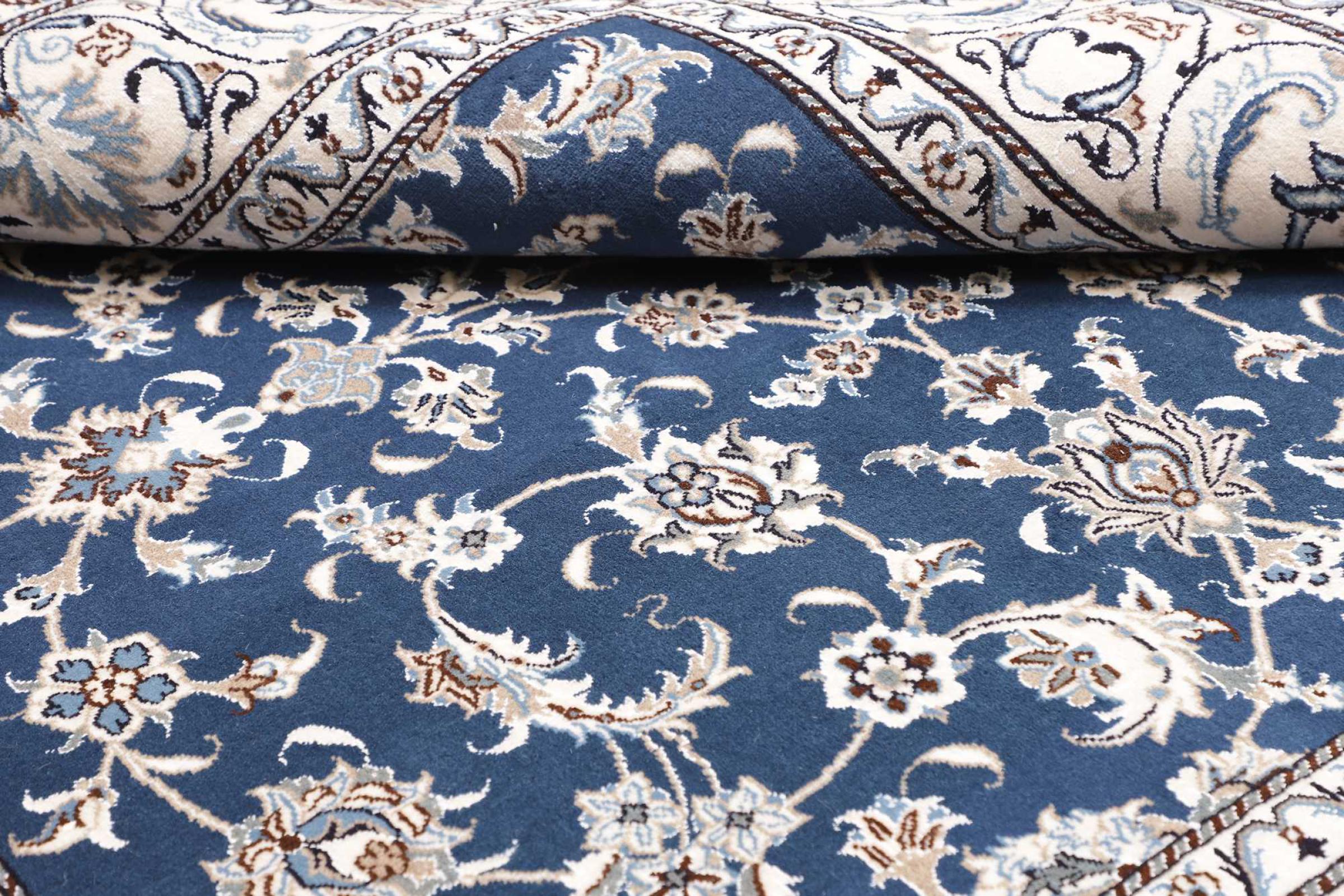 Las alfombras de la ciudad de Nain, en la frontera de uno de los mayores desiertos de Irán, están entre las alfombras persas más famosas del mundo. Su diseño típico es inconfundible con adornos florales, un medallón central y tonos beige y rojo o azul. Gracias a sus designaciones 4La, 6La, 9La y 12La, las sutilezas de una alfombra de Nain se pueden ver a simple vista. Cuanto más bajo sea el número "La", más alta es la densidad del nudo y por lo tanto más fina es la alfombra.