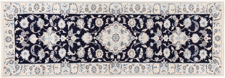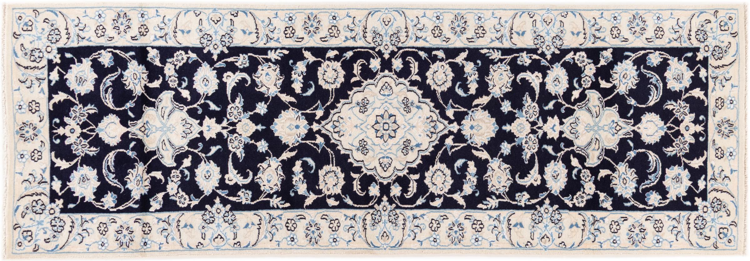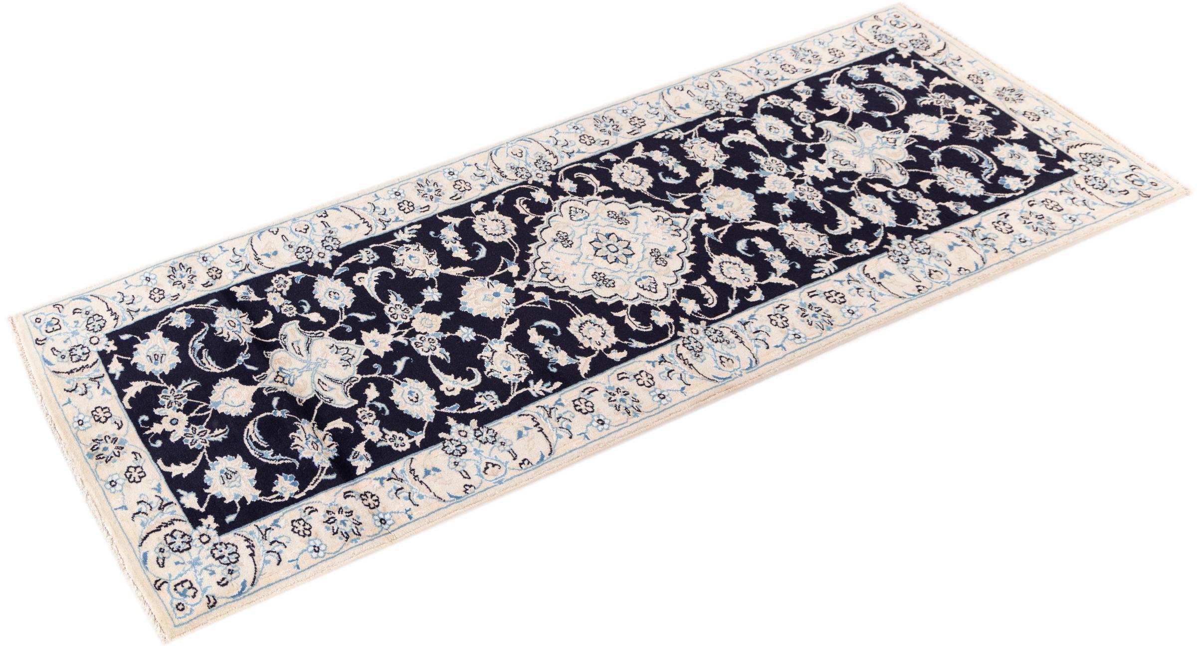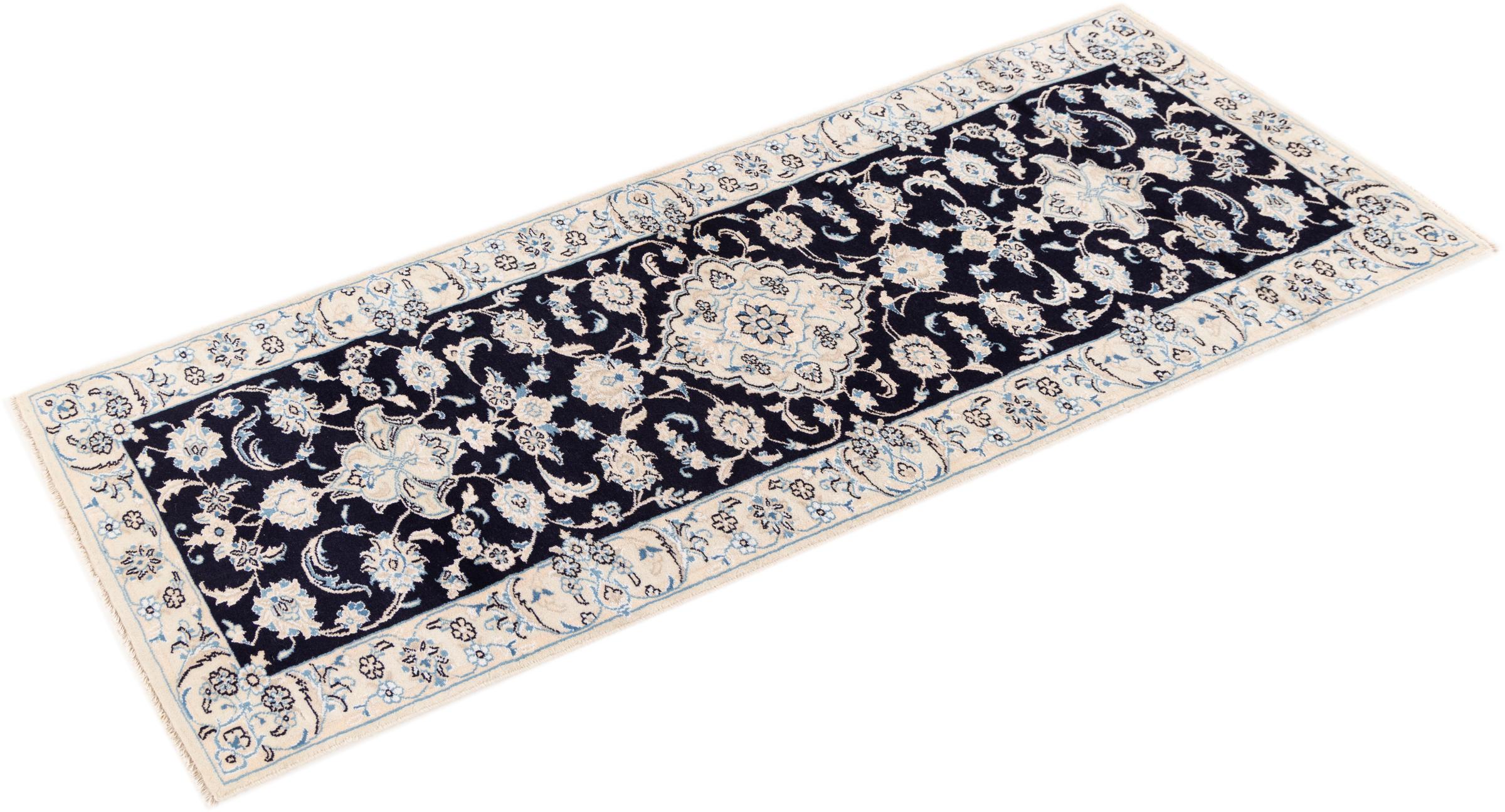 Esta alfombra Nain está clasificada como 9La. Su excelente calidad y su bello diseño oriental con motivos curvilíneos harán las delicias de cualquier comprador. Esta alfombra persa fue anudada a mano en la ciudad de Nain, situada en el extremo occidental del desierto de Dasht-e-Kavir, con lana de alta calidad y seda natural. Las alfombras Nain 9La son claramente más finas que las 12La y ya muestran bellos detalles.