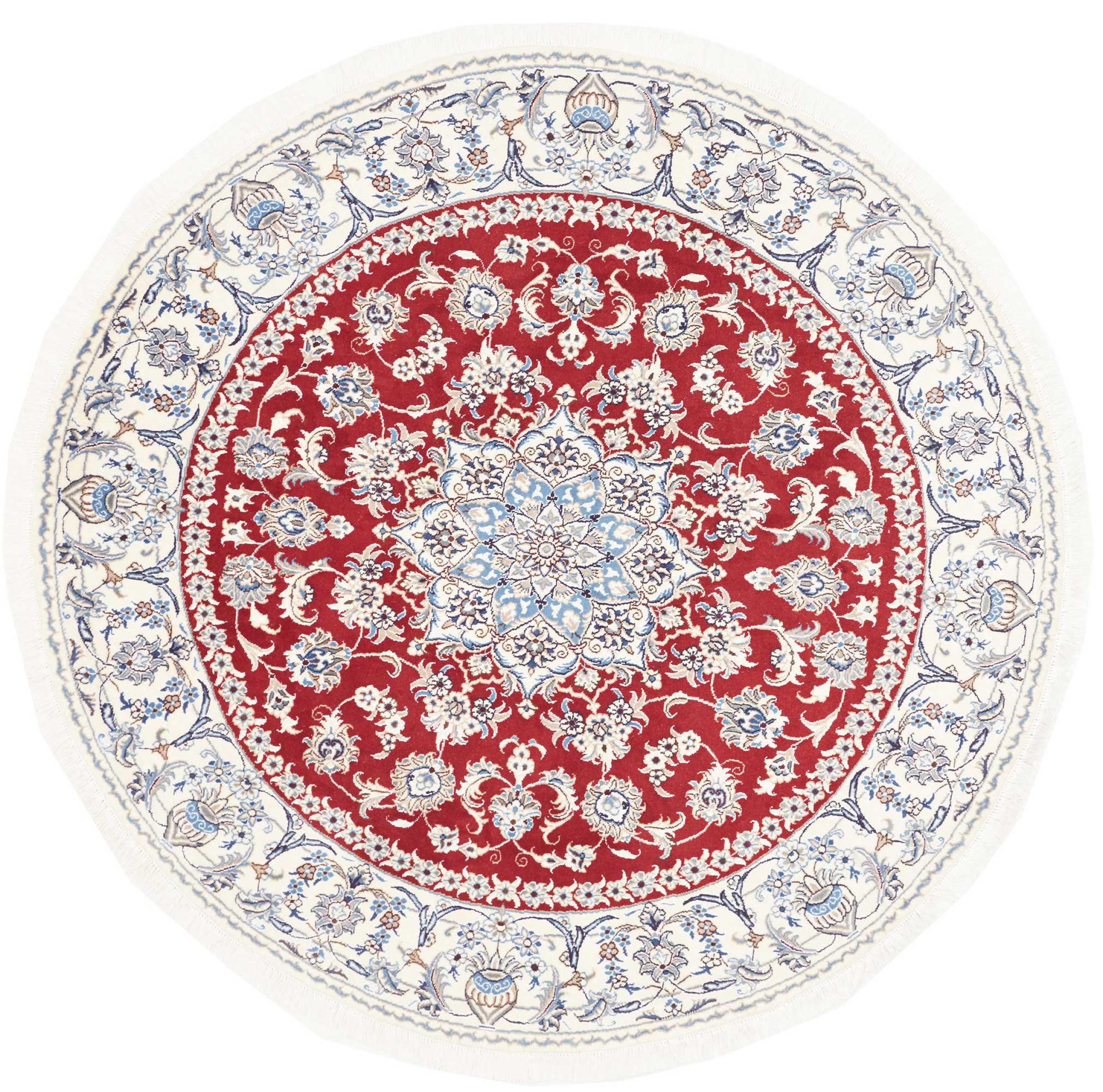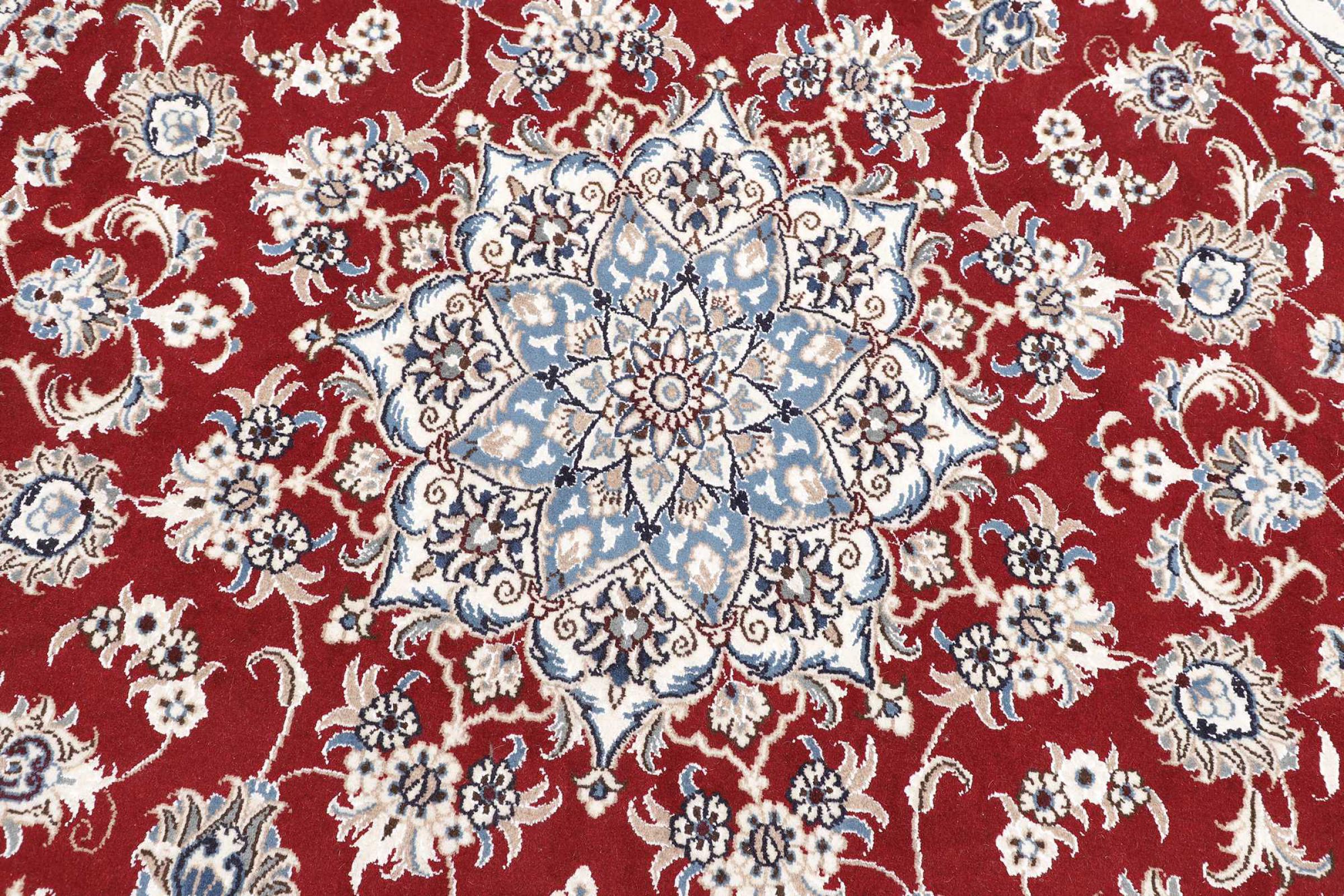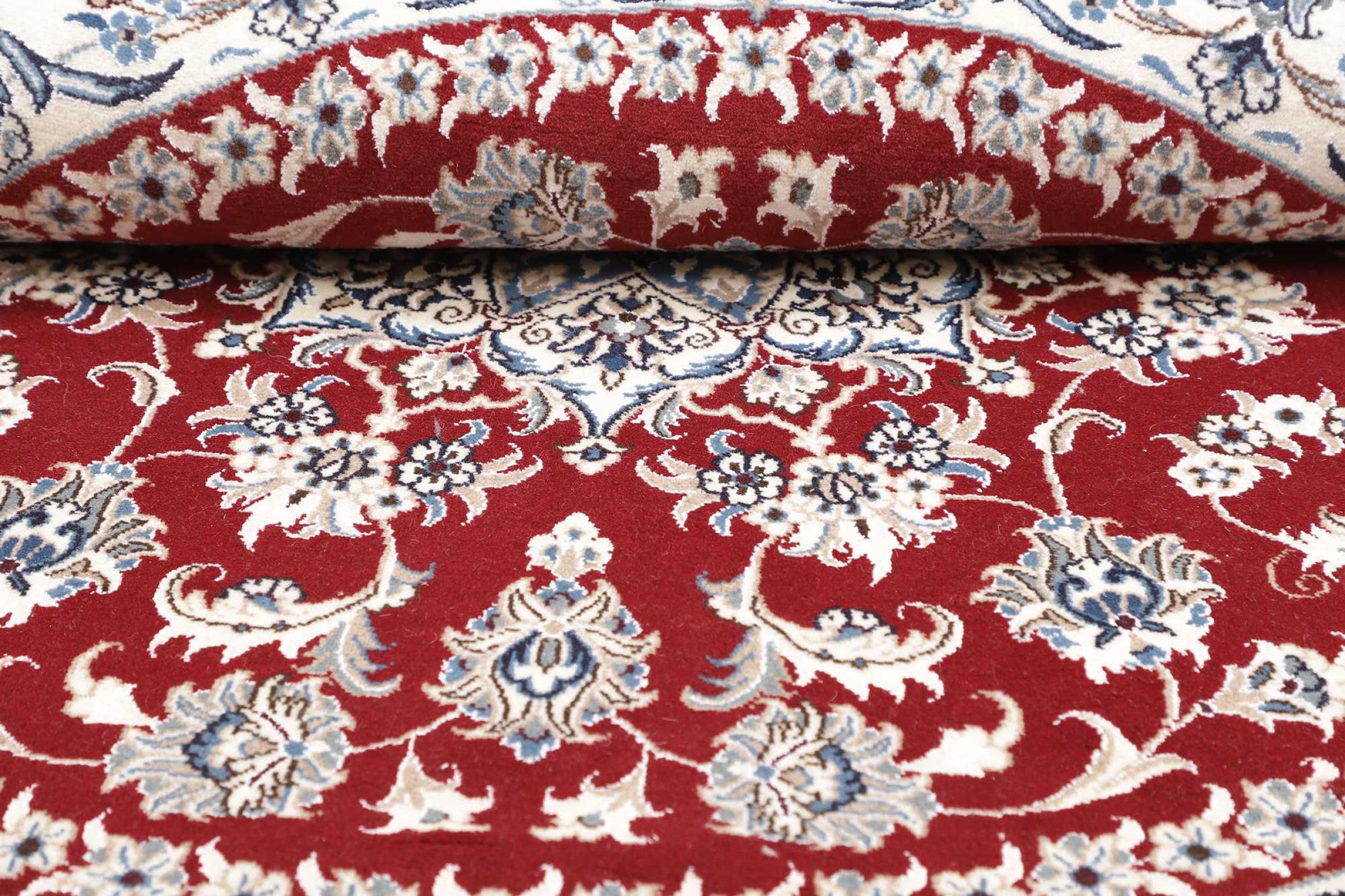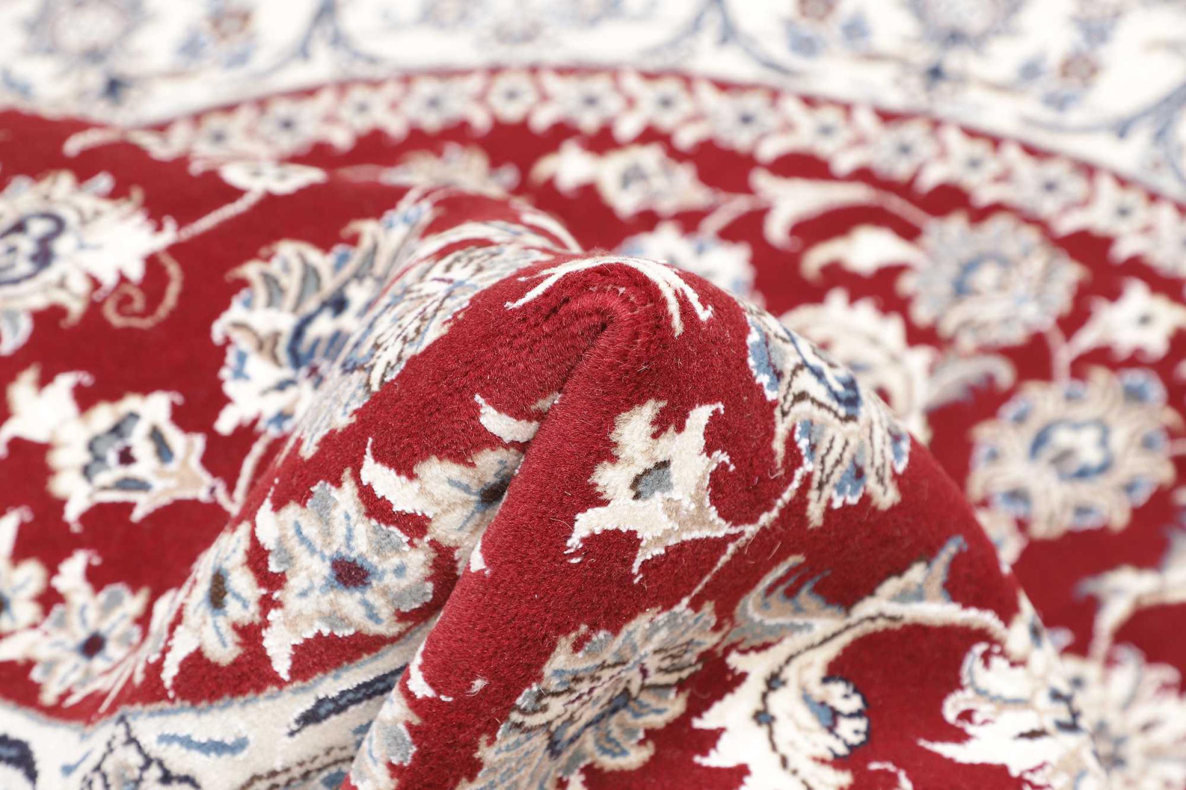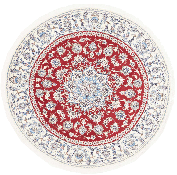 Las alfombras de la ciudad de Nain, en la frontera de uno de los mayores desiertos de Irán, están entre las alfombras persas más famosas del mundo. Su diseño típico es inconfundible con adornos florales, un medallón central y tonos beige y rojo o azul. Gracias a sus designaciones 4La, 6La, 9La y 12La, las sutilezas de una alfombra de Nain se pueden ver a simple vista. Cuanto más bajo sea el número "La", más alta es la densidad del nudo y por lo tanto más fina es la alfombra.