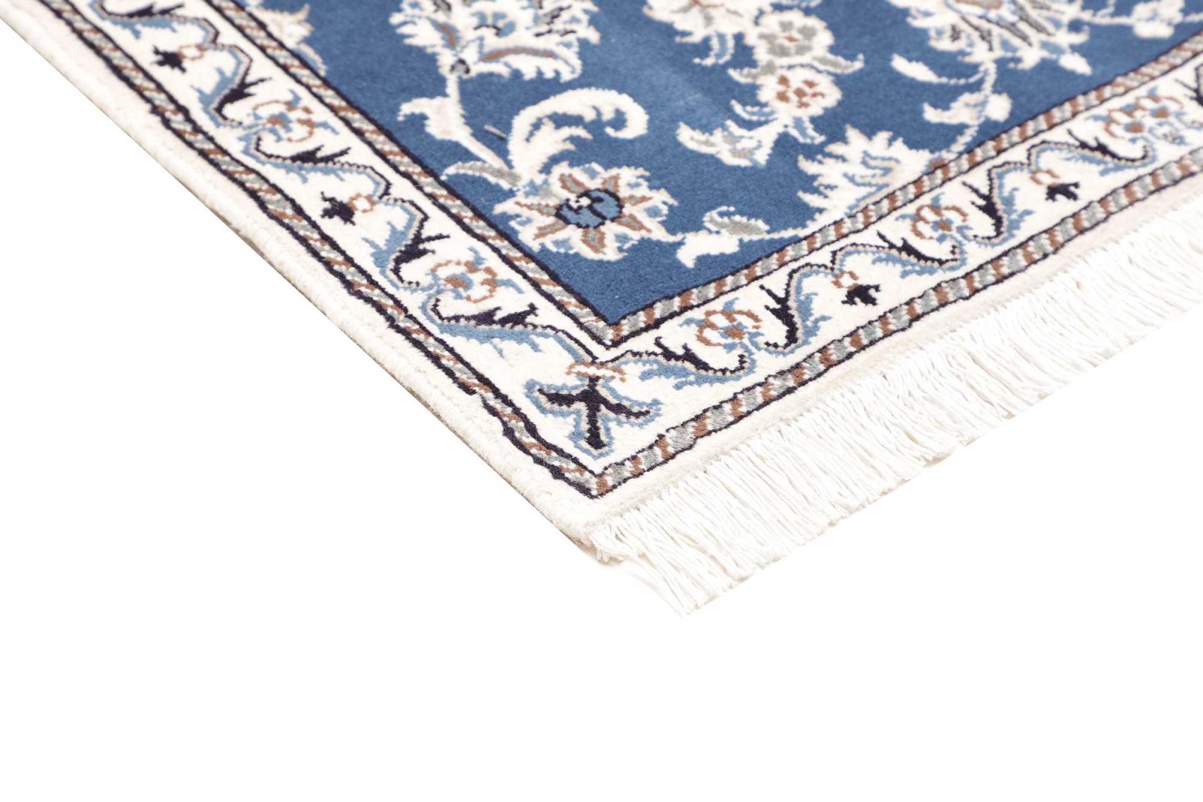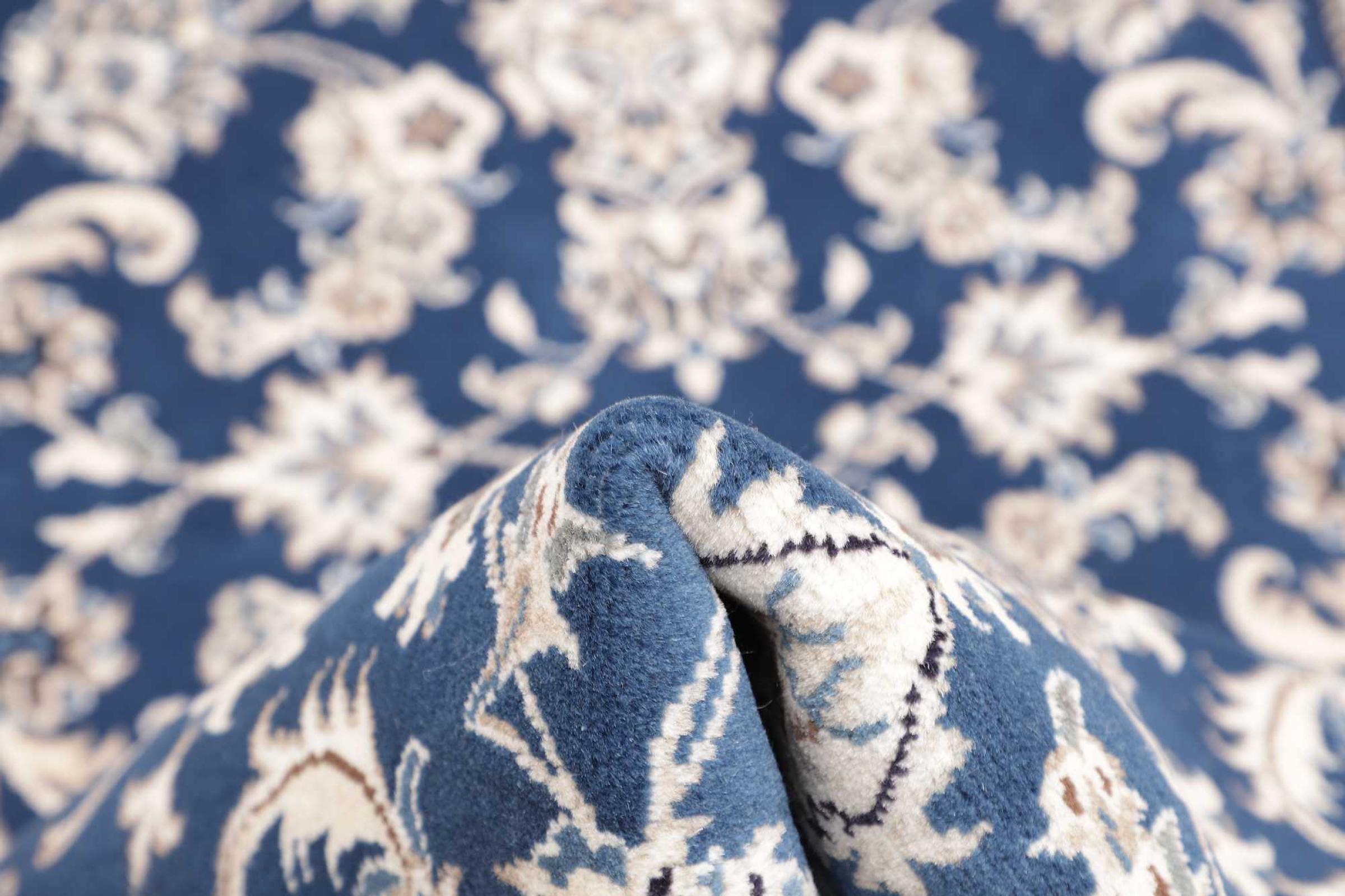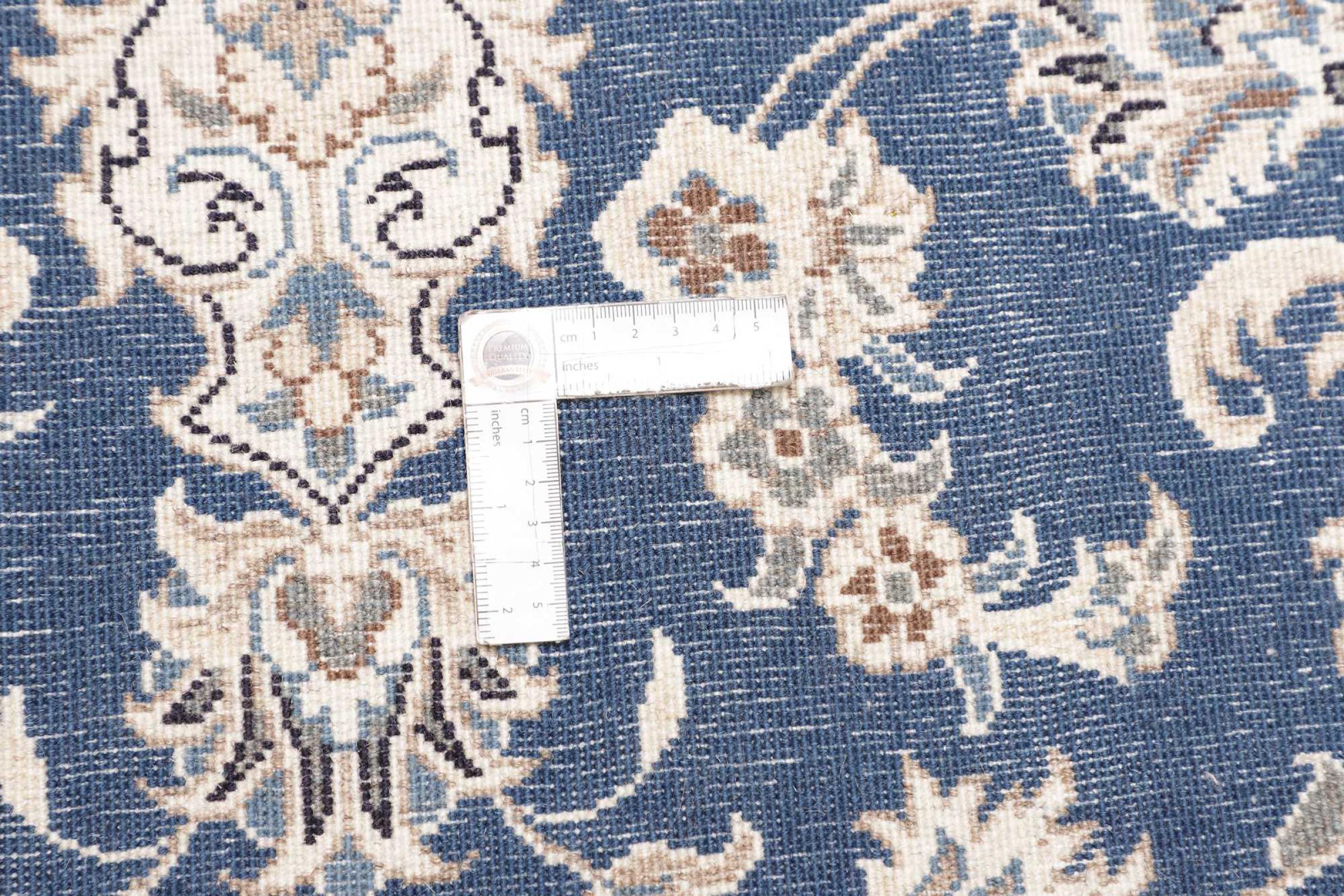 Esta alfombra Nain está clasificada como 12La. Tiene un aspecto elegante y refinado con su colorido típico de Naín. Esta alfombra persa fue anudada a mano en la ciudad de Naín, situada en el extremo occidental del desierto de Dasht-e-Kavir, con lana de alta calidad y seda natural. Con un tamaño de 12La, no está tan finamente detallada con ornamentos como una Nain 9La o 6La.