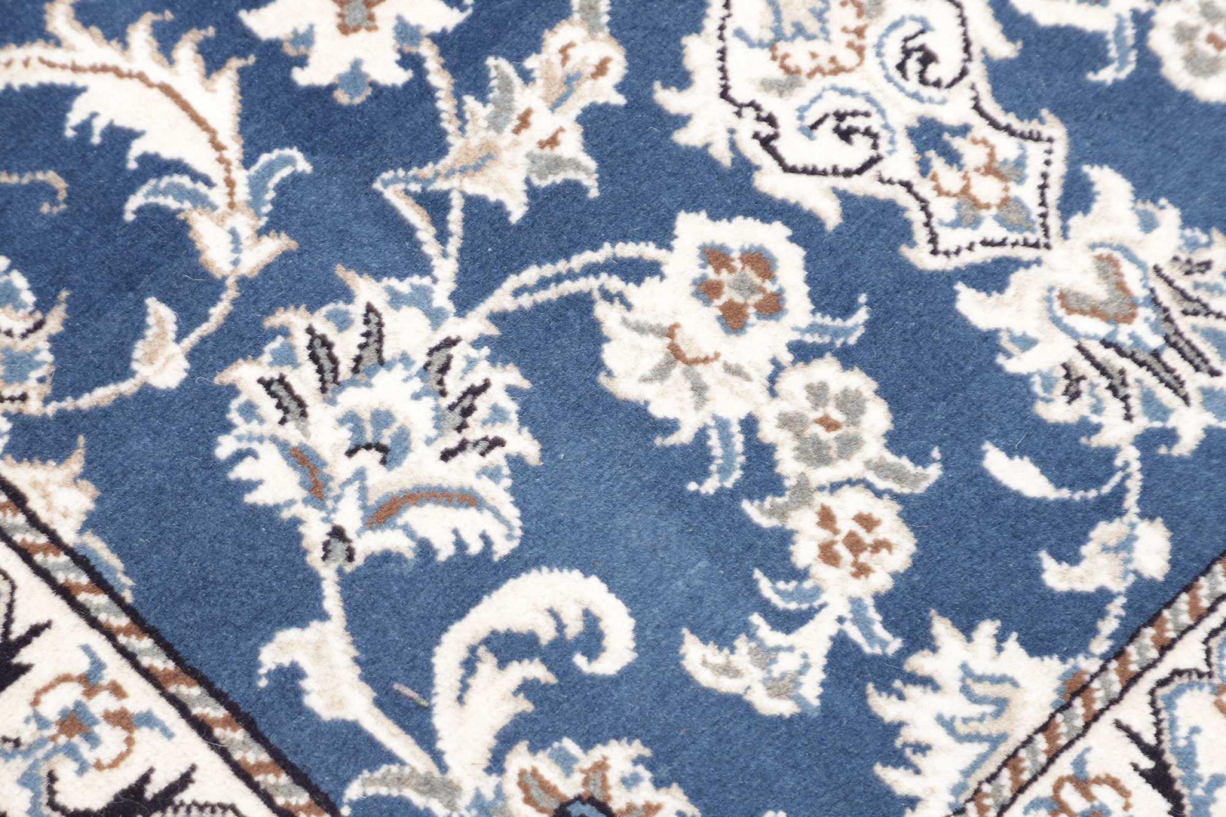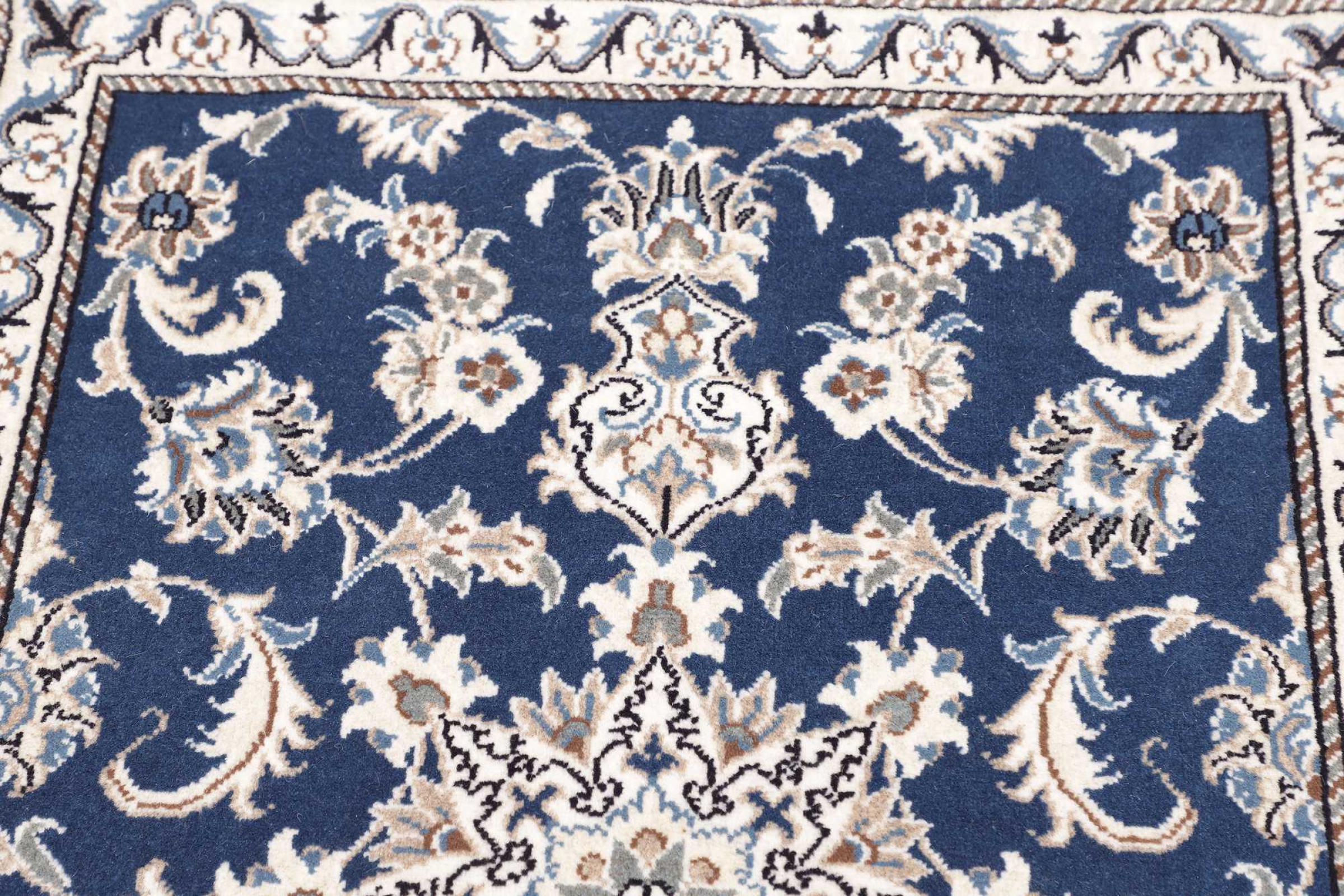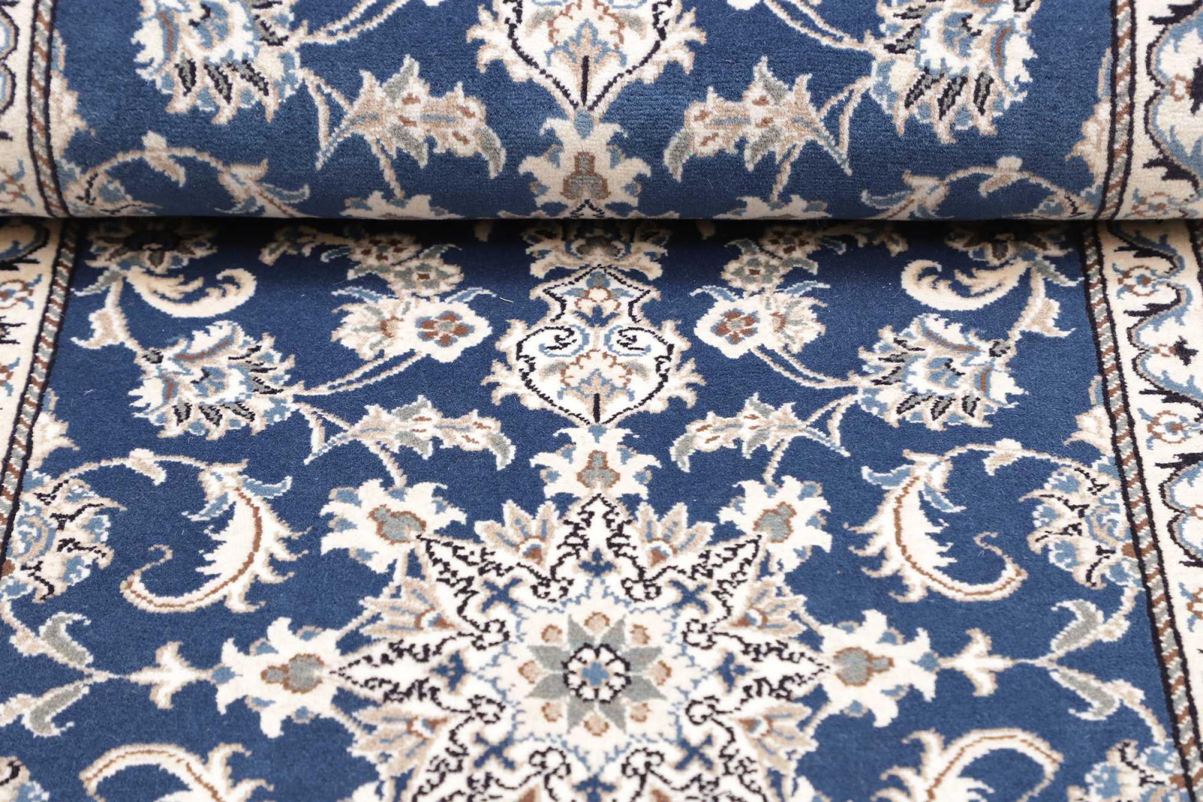 Las alfombras de la ciudad de Nain, en la frontera de uno de los mayores desiertos de Irán, están entre las alfombras persas más famosas del mundo. Su diseño típico es inconfundible con adornos florales, un medallón central y tonos beige y rojo o azul. Gracias a sus designaciones 4La, 6La, 9La y 12La, las sutilezas de una alfombra de Nain se pueden ver a simple vista. Cuanto más bajo sea el número "La", más alta es la densidad del nudo y por lo tanto más fina es la alfombra.