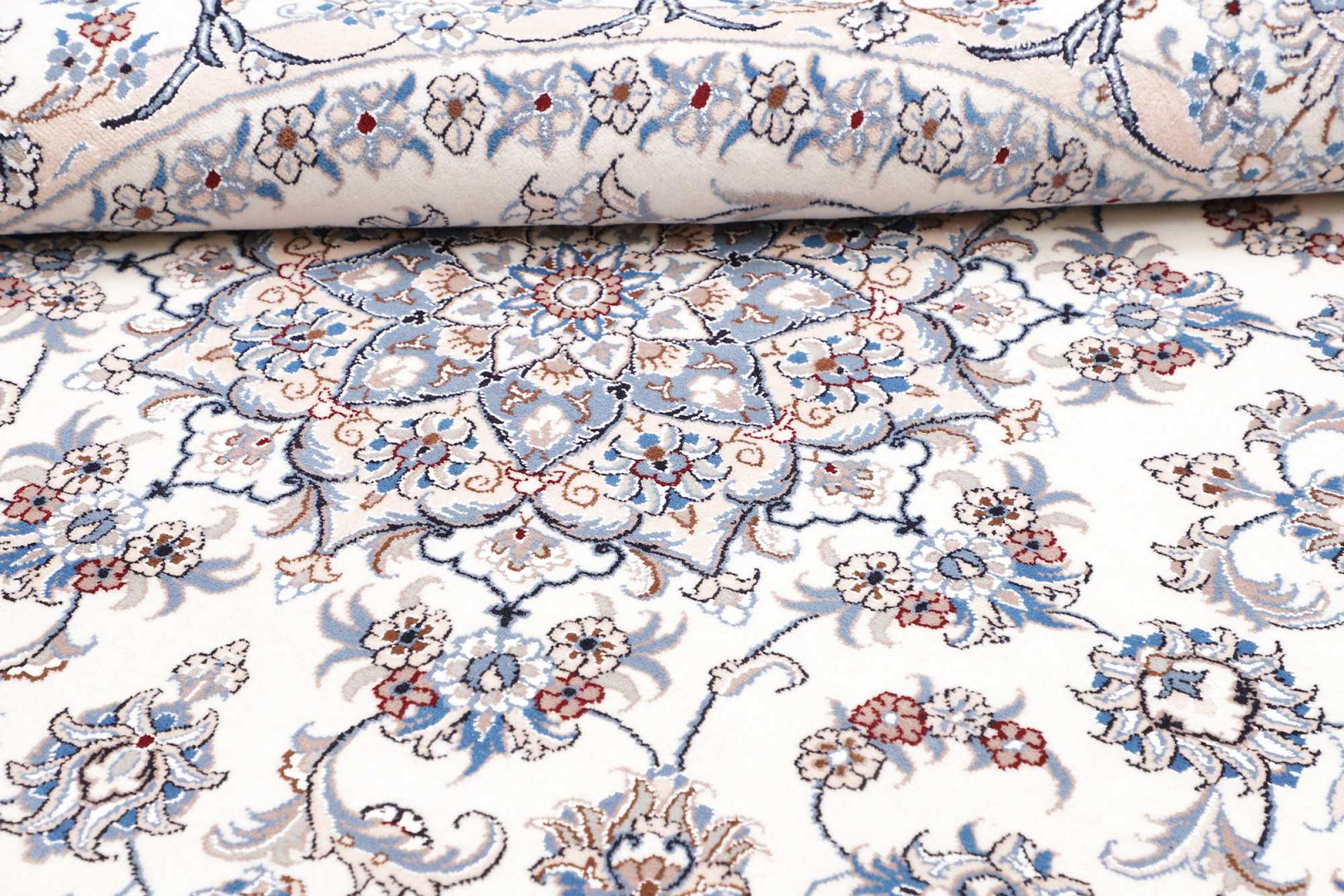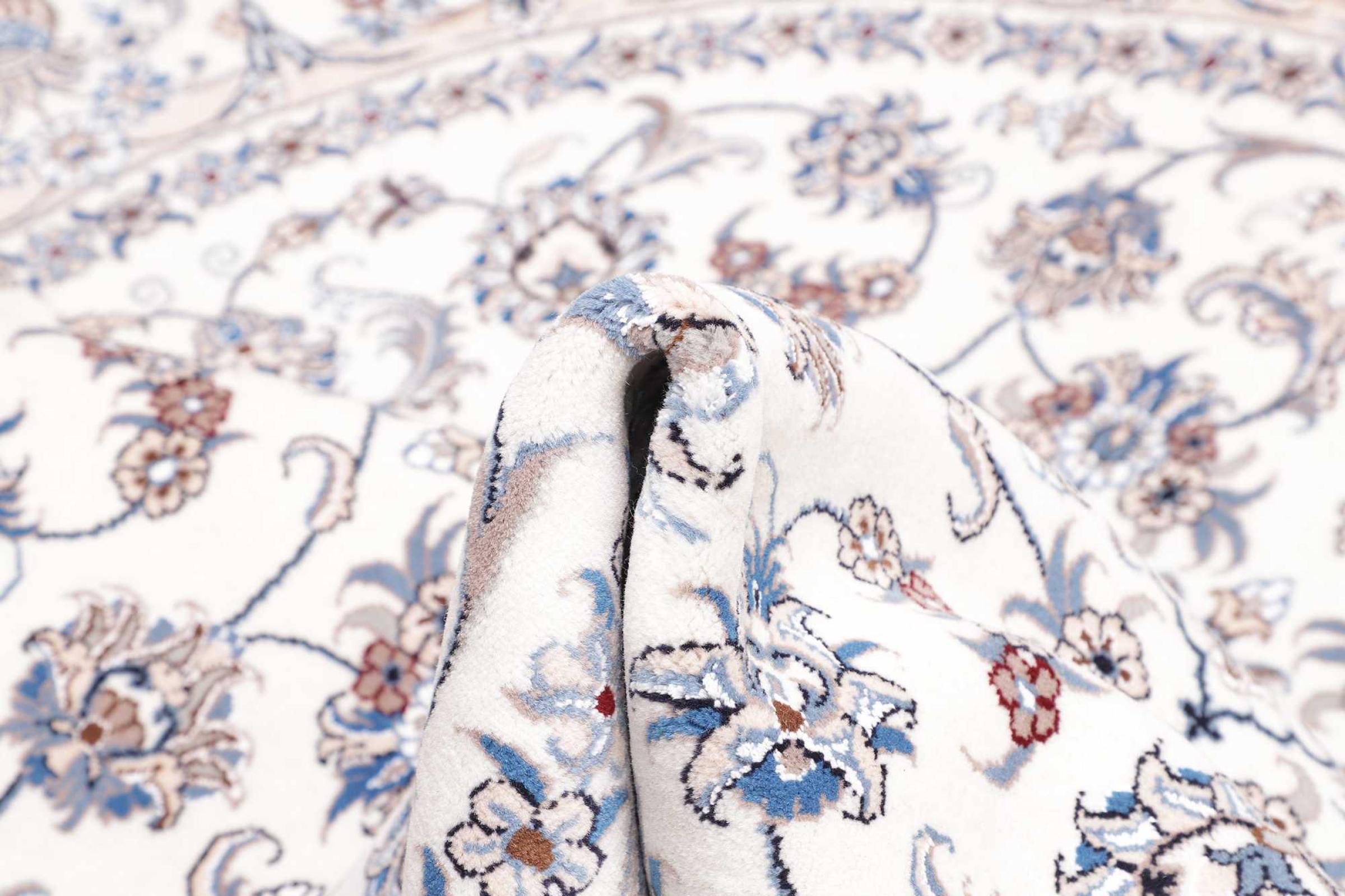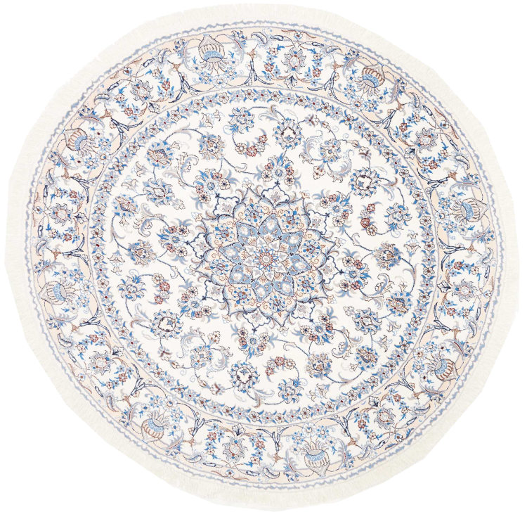 Las alfombras de la ciudad de Nain, en la frontera de uno de los mayores desiertos de Irán, están entre las alfombras persas más famosas del mundo. Su diseño típico es inconfundible con adornos florales, un medallón central y tonos beige y rojo o azul. Gracias a sus designaciones 4La, 6La, 9La y 12La, las sutilezas de una alfombra de Nain se pueden ver a simple vista. Cuanto más bajo sea el número "La", más alta es la densidad del nudo y por lo tanto más fina es la alfombra.