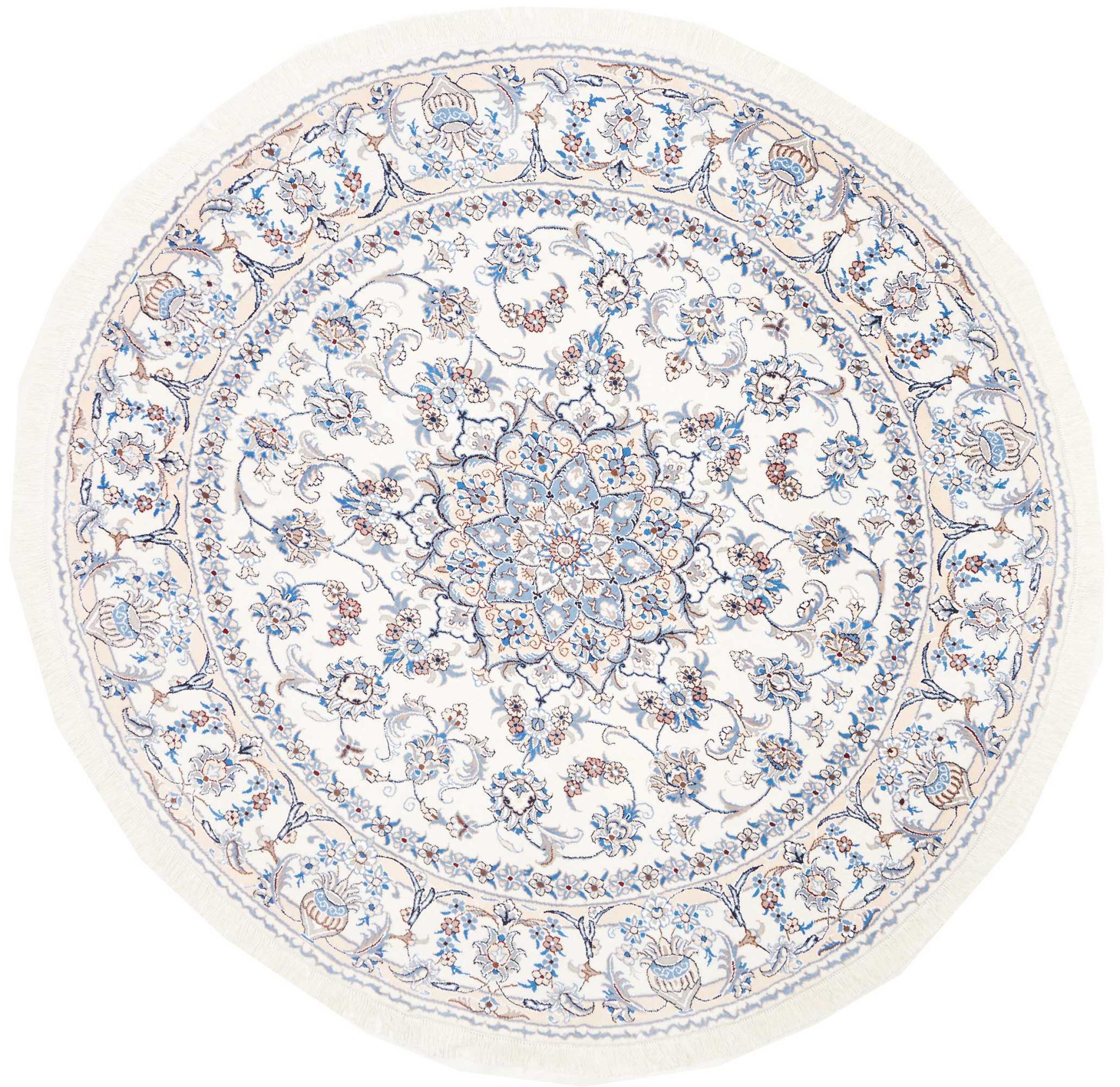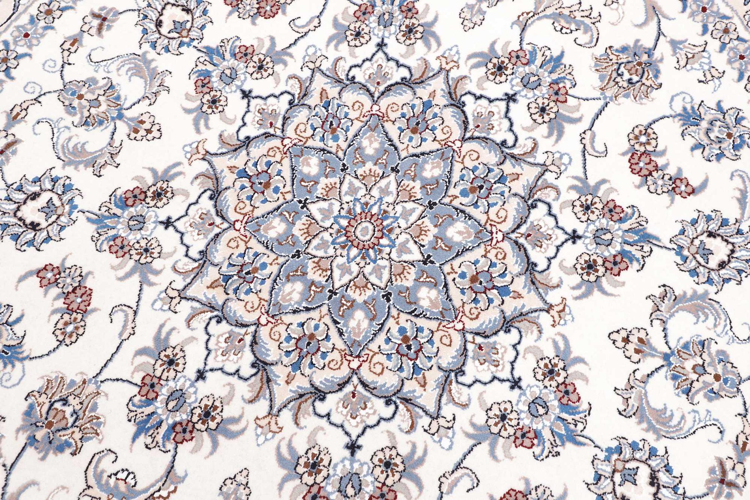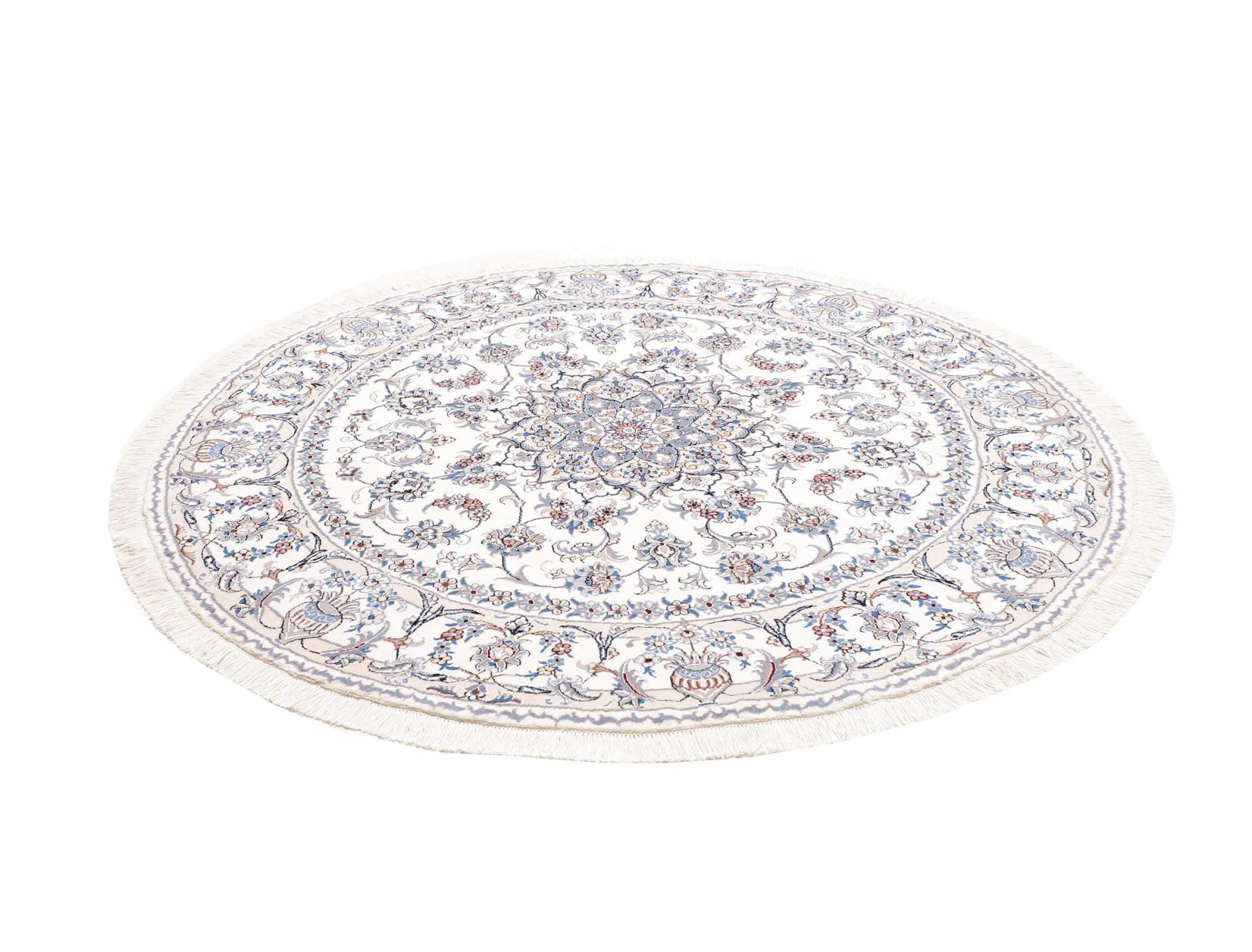 Las alfombras de la ciudad de Nain, en la frontera de uno de los mayores desiertos de Irán, están entre las alfombras persas más famosas del mundo. Su diseño típico es inconfundible con adornos florales, un medallón central y tonos beige y rojo o azul. Gracias a sus designaciones 4La, 6La, 9La y 12La, las sutilezas de una alfombra de Nain se pueden ver a simple vista. Cuanto más bajo sea el número "La", más alta es la densidad del nudo y por lo tanto más fina es la alfombra.