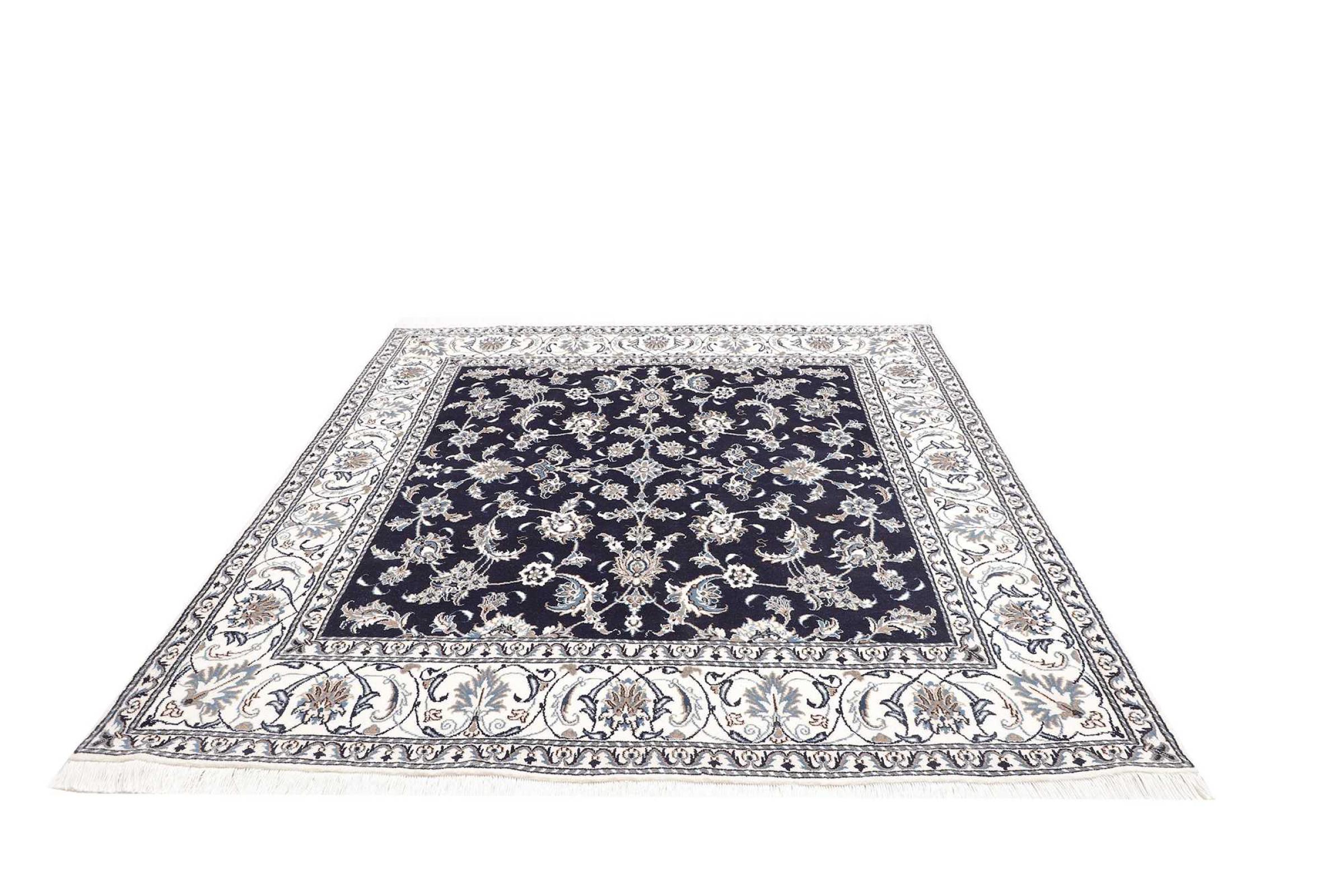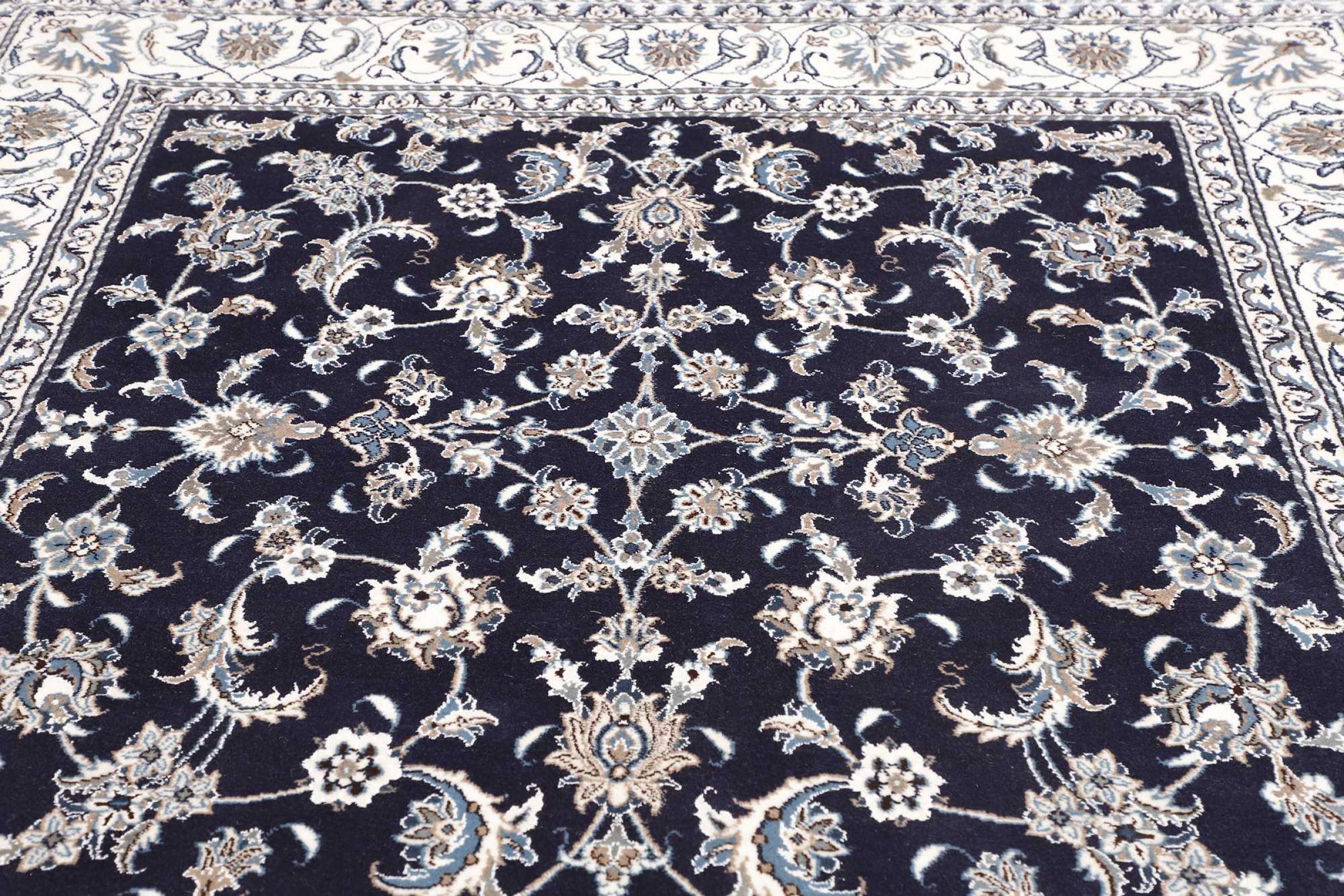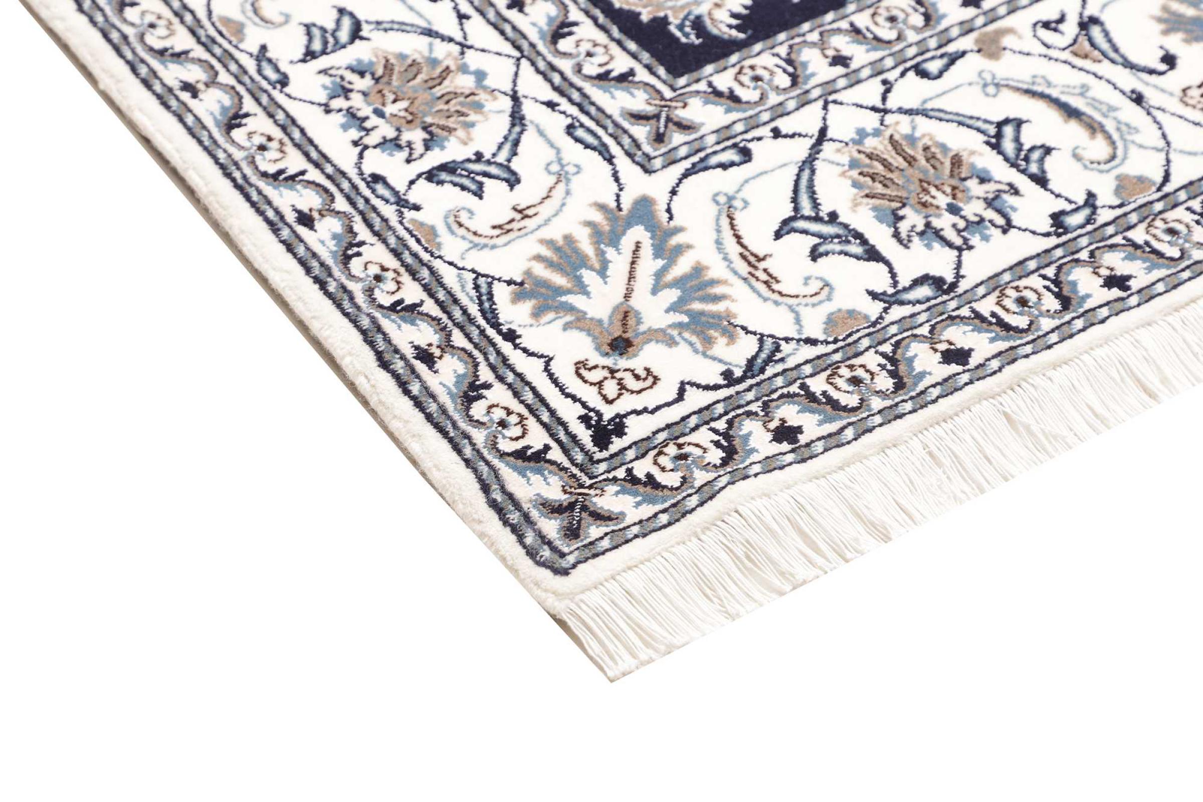 Esta alfombra Nain está clasificada como 12La. Tiene un aspecto elegante y refinado con su colorido típico de Naín. Esta alfombra persa fue anudada a mano en la ciudad de Naín, situada en el extremo occidental del desierto de Dasht-e-Kavir, con lana de alta calidad y seda natural. Con un tamaño de 12La, no está tan finamente detallada con ornamentos como una Nain 9La o 6La.