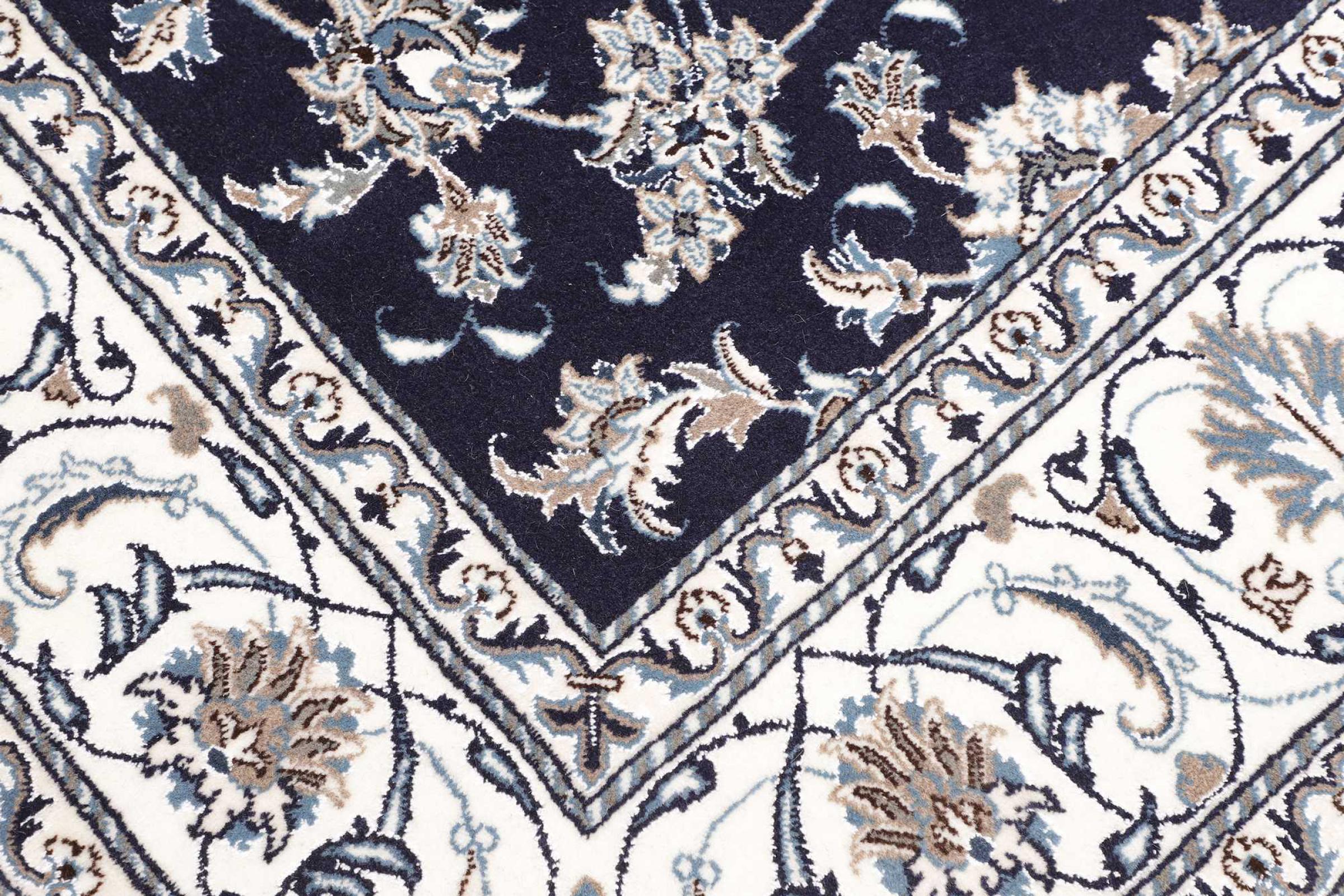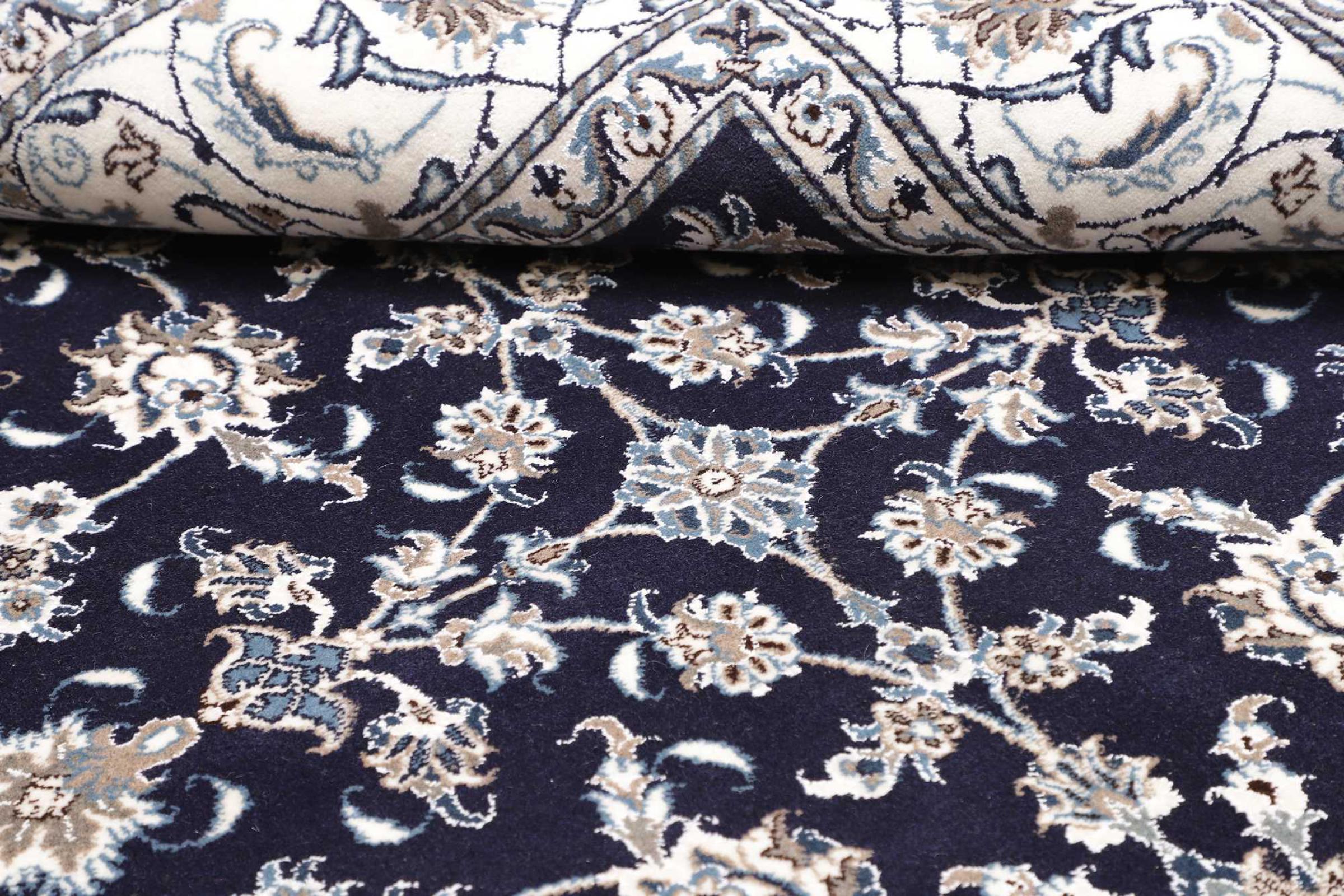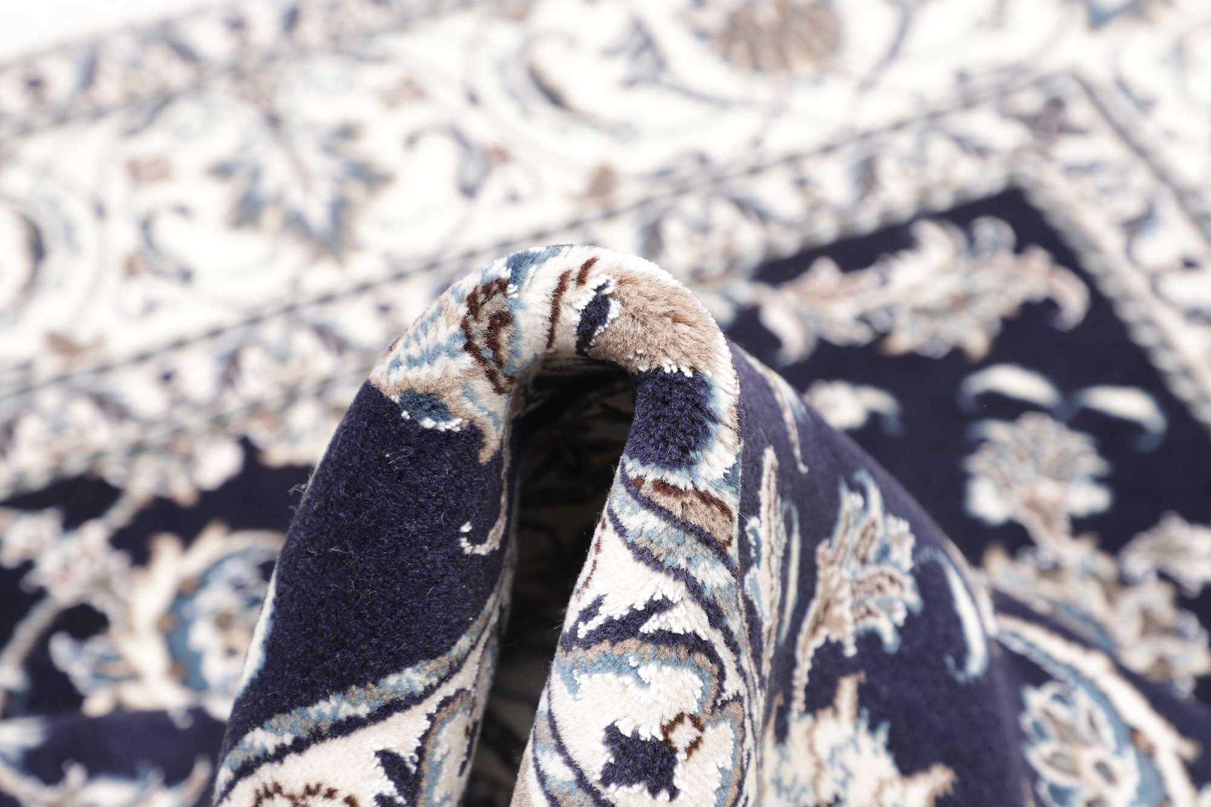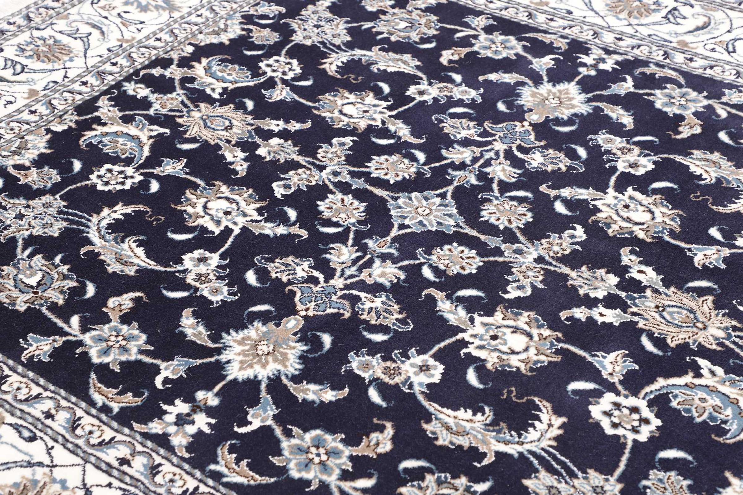Esta alfombra Nain está clasificada como 12La. Tiene un aspecto elegante y refinado con su colorido típico de Naín. Esta alfombra persa fue anudada a mano en la ciudad de Naín, situada en el extremo occidental del desierto de Dasht-e-Kavir, con lana de alta calidad y seda natural. Con un tamaño de 12La, no está tan finamente detallada con ornamentos como una Nain 9La o 6La.