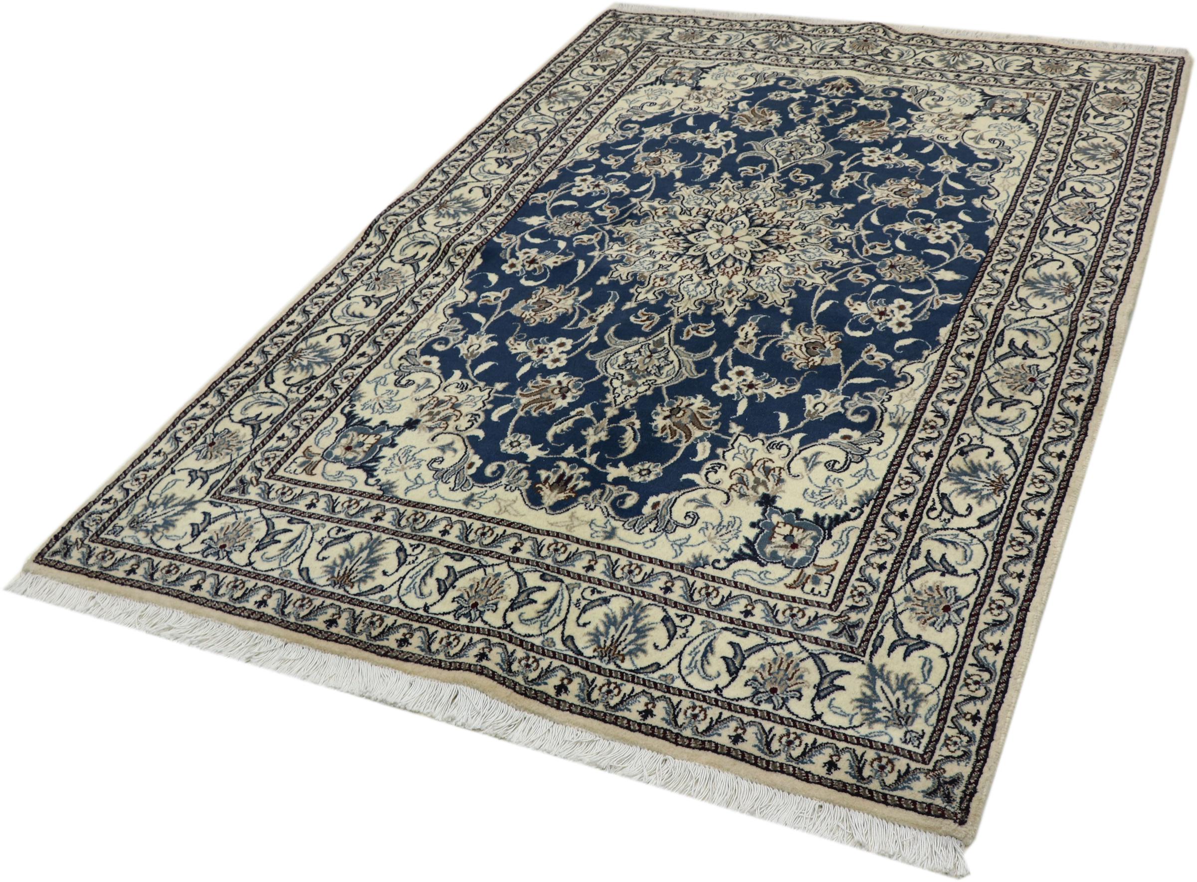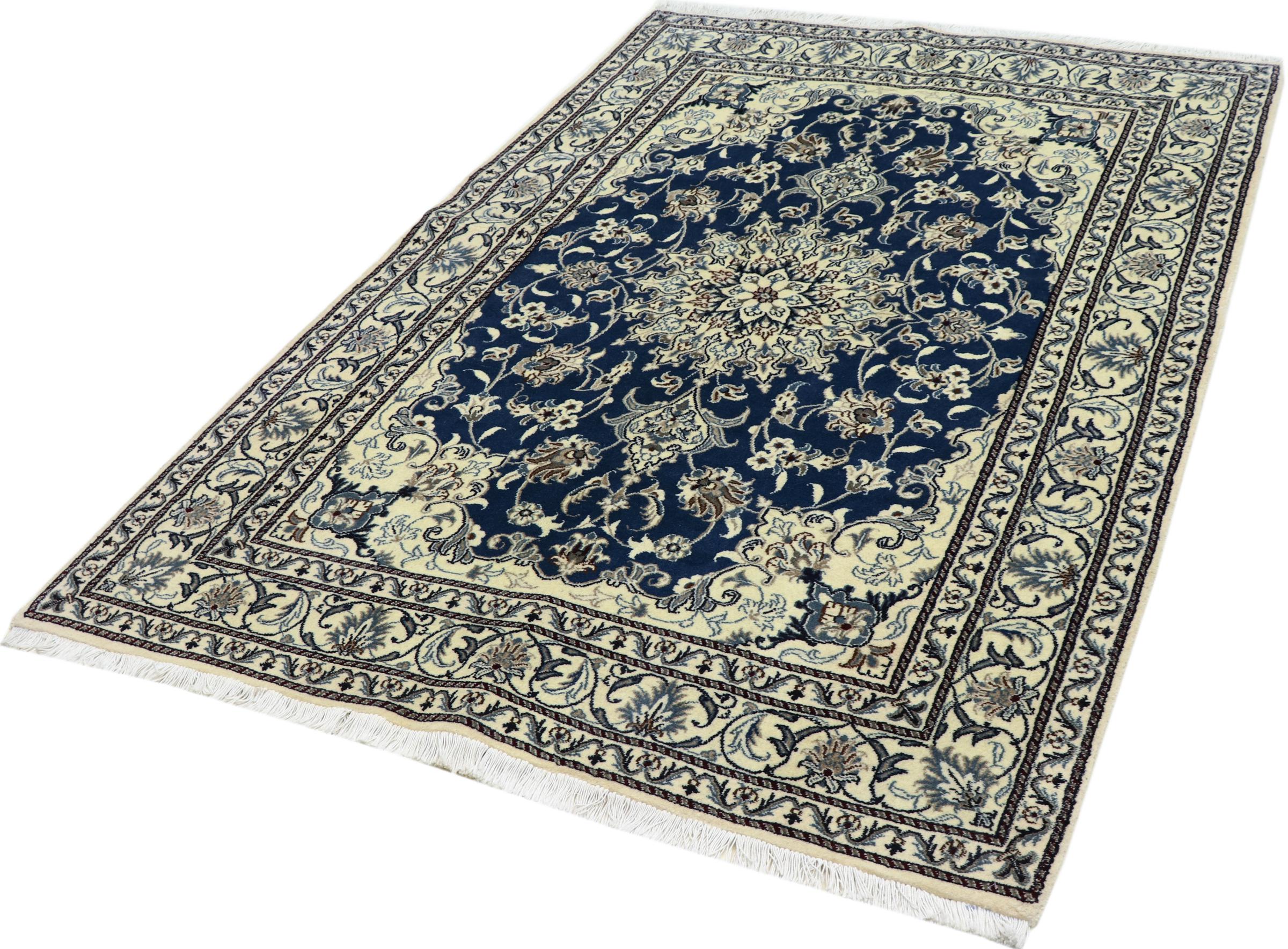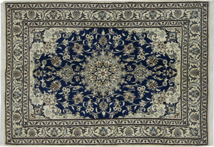 Las alfombras de la ciudad de Nain, en la frontera de uno de los mayores desiertos de Irán, están entre las alfombras persas más famosas del mundo. Su diseño típico es inconfundible con adornos florales, un medallón central y tonos beige y rojo o azul. Gracias a sus designaciones 4La, 6La, 9La y 12La, las sutilezas de una alfombra de Nain se pueden ver a simple vista. Cuanto más bajo sea el número "La", más alta es la densidad del nudo y por lo tanto más fina es la alfombra.