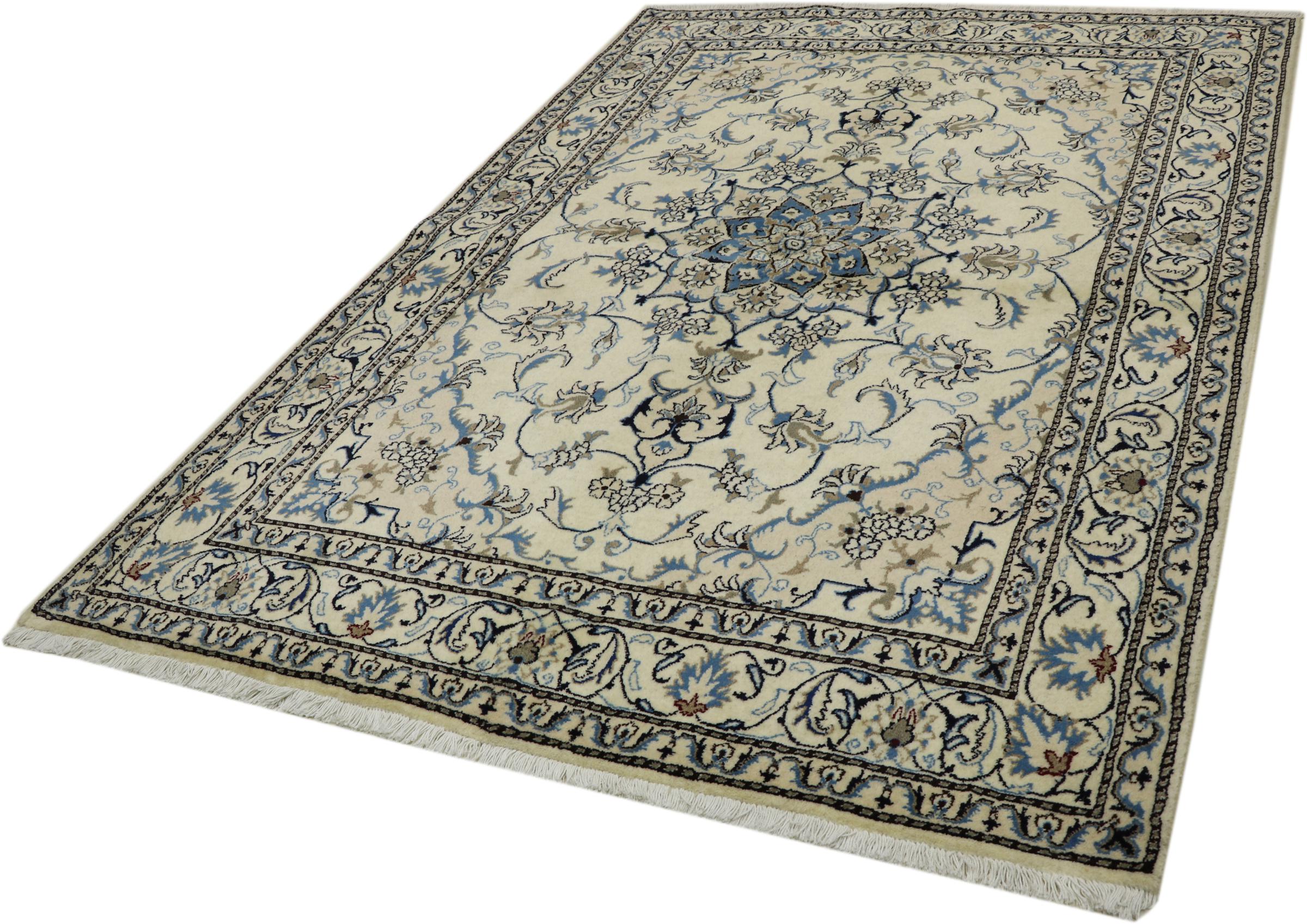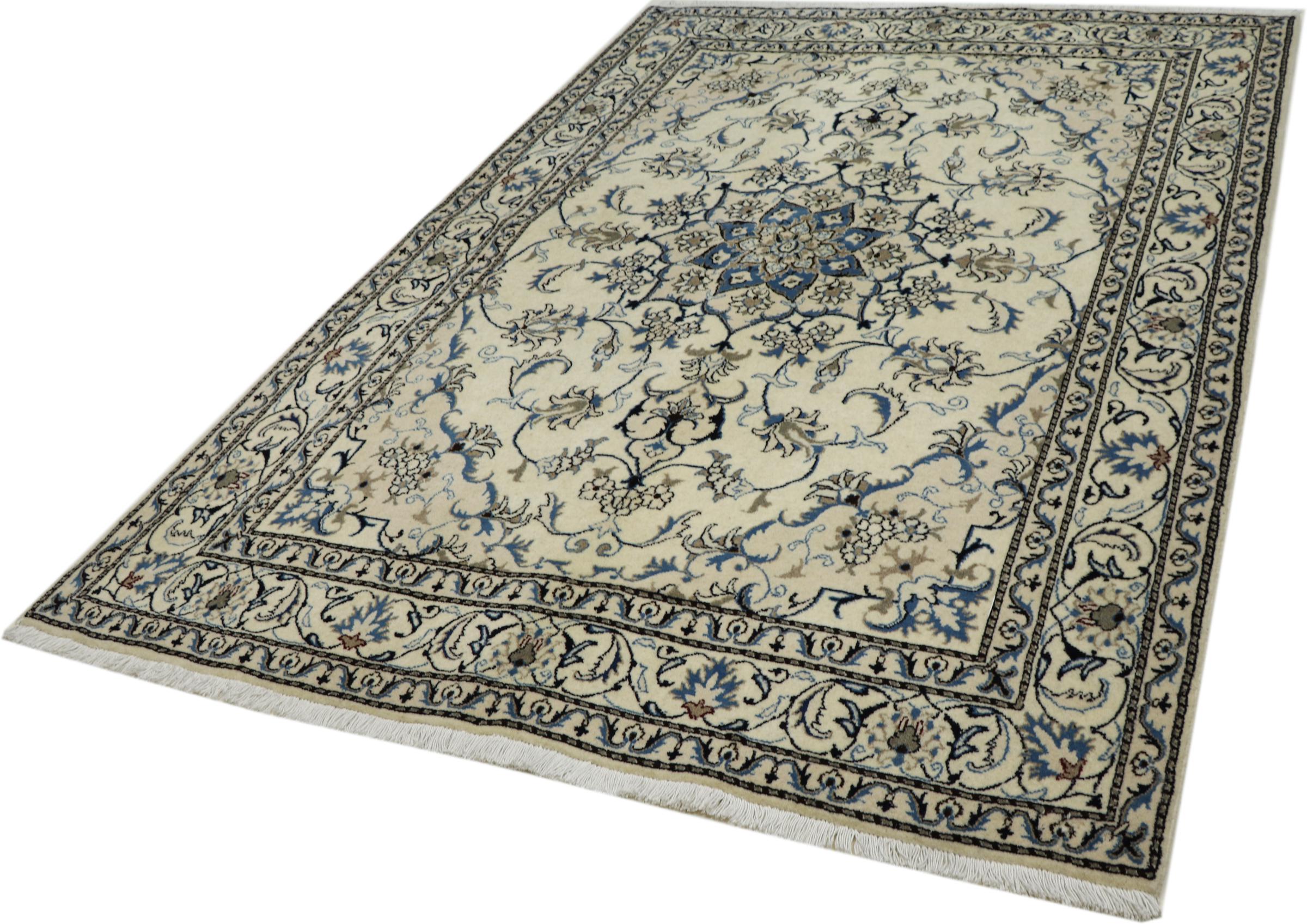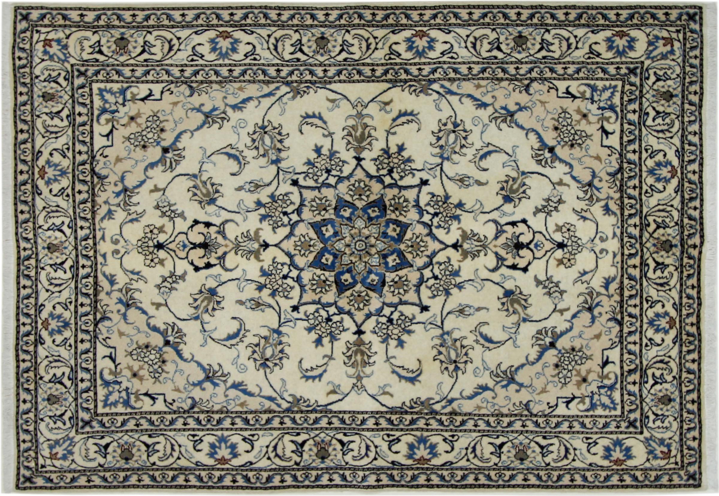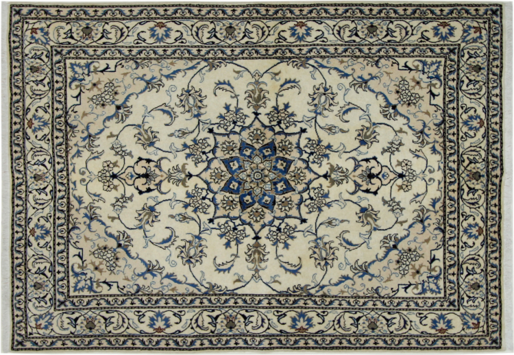 Las alfombras de la ciudad de Nain, en la frontera de uno de los mayores desiertos de Irán, están entre las alfombras persas más famosas del mundo. Su diseño típico es inconfundible con adornos florales, un medallón central y tonos beige y rojo o azul. Gracias a sus designaciones 4La, 6La, 9La y 12La, las sutilezas de una alfombra de Nain se pueden ver a simple vista. Cuanto más bajo sea el número "La", más alta es la densidad del nudo y por lo tanto más fina es la alfombra.