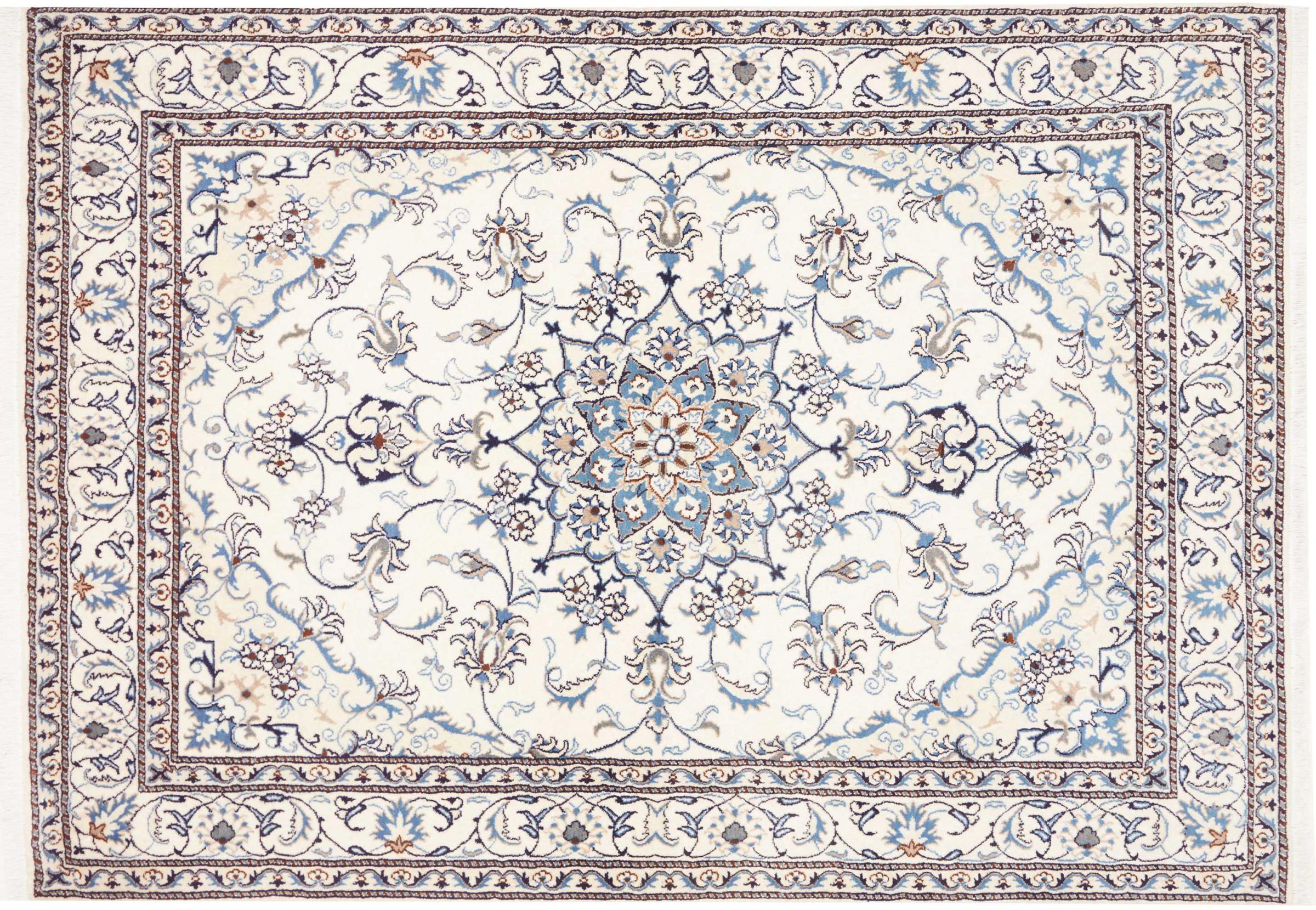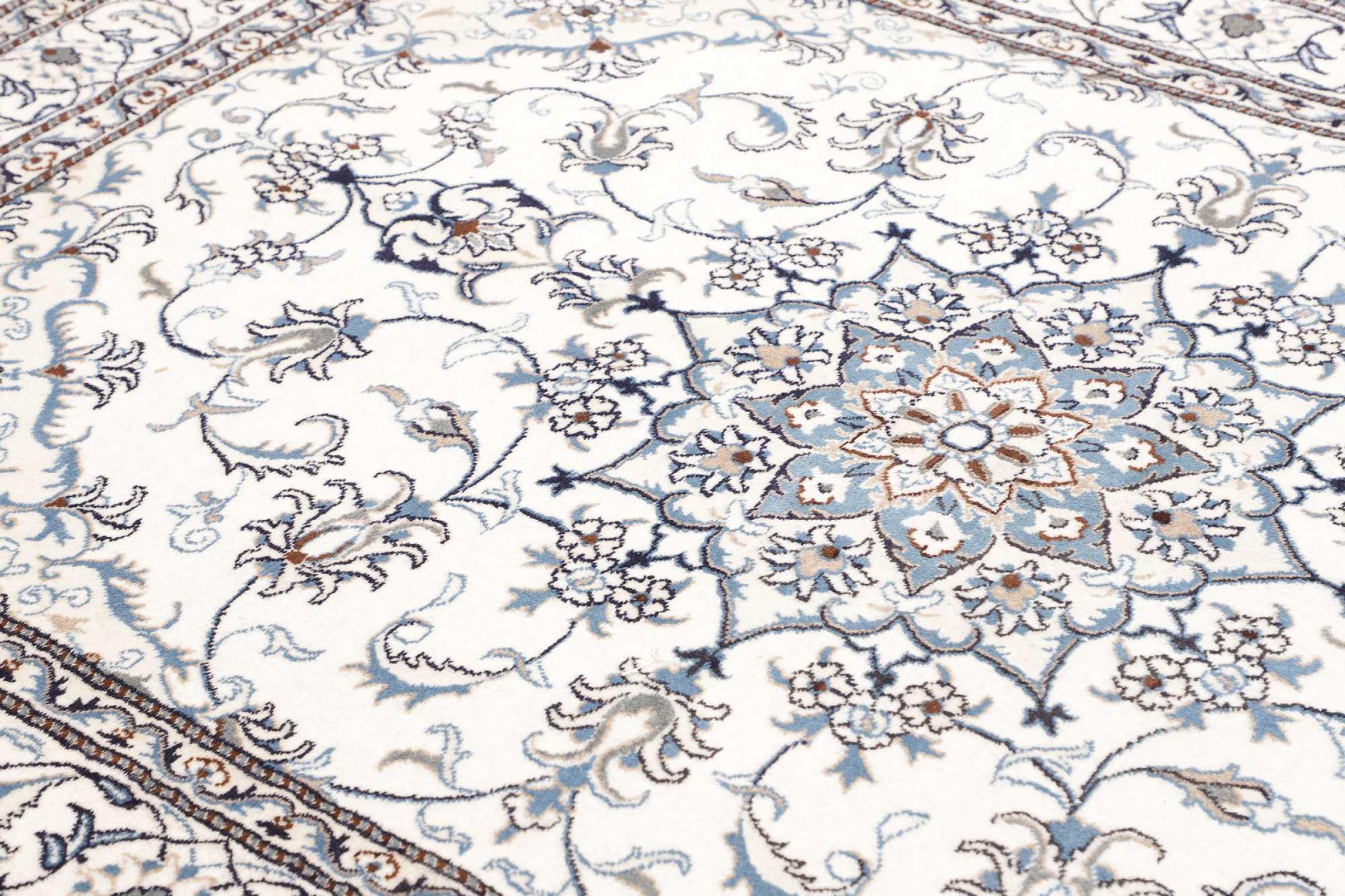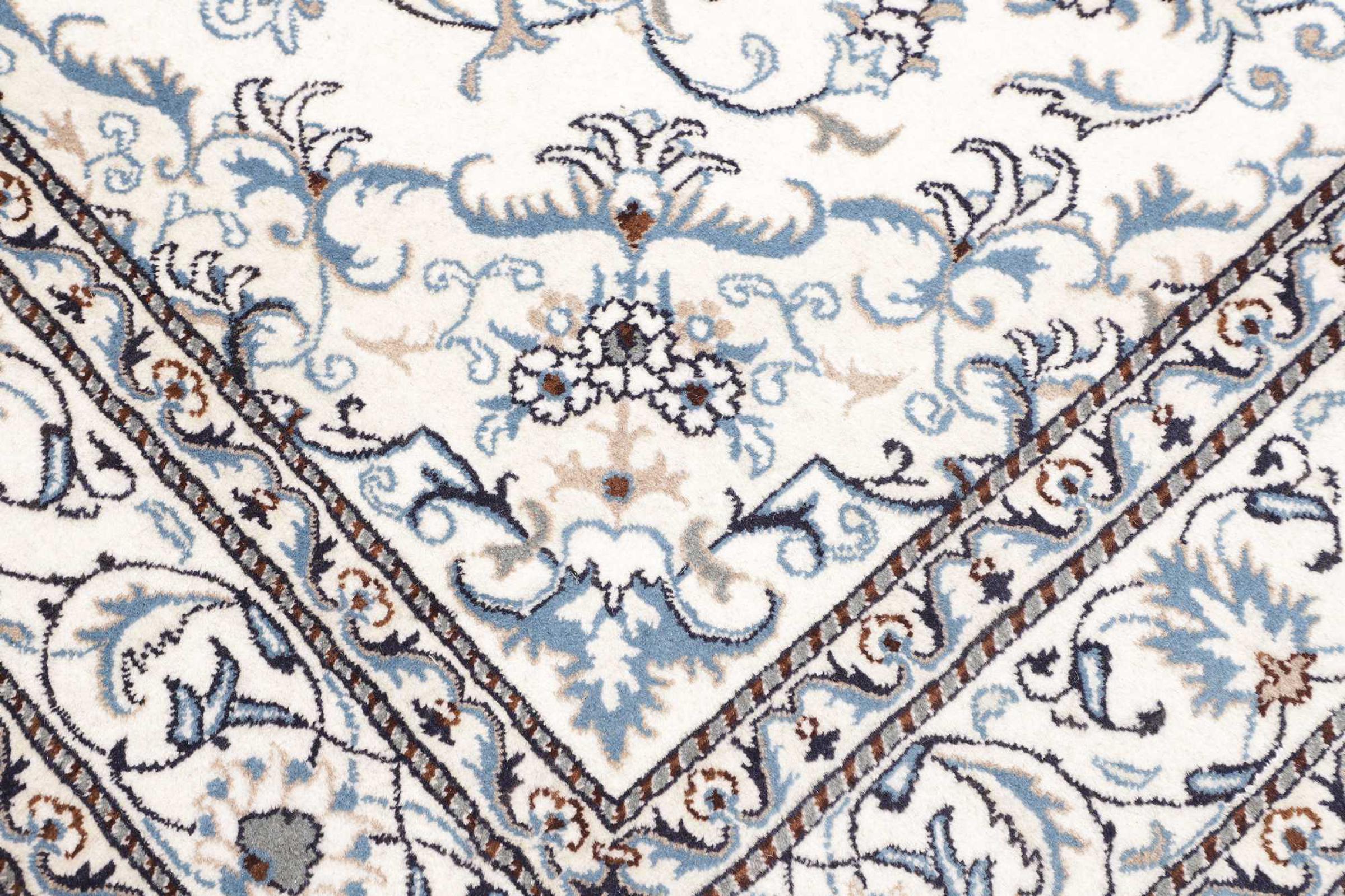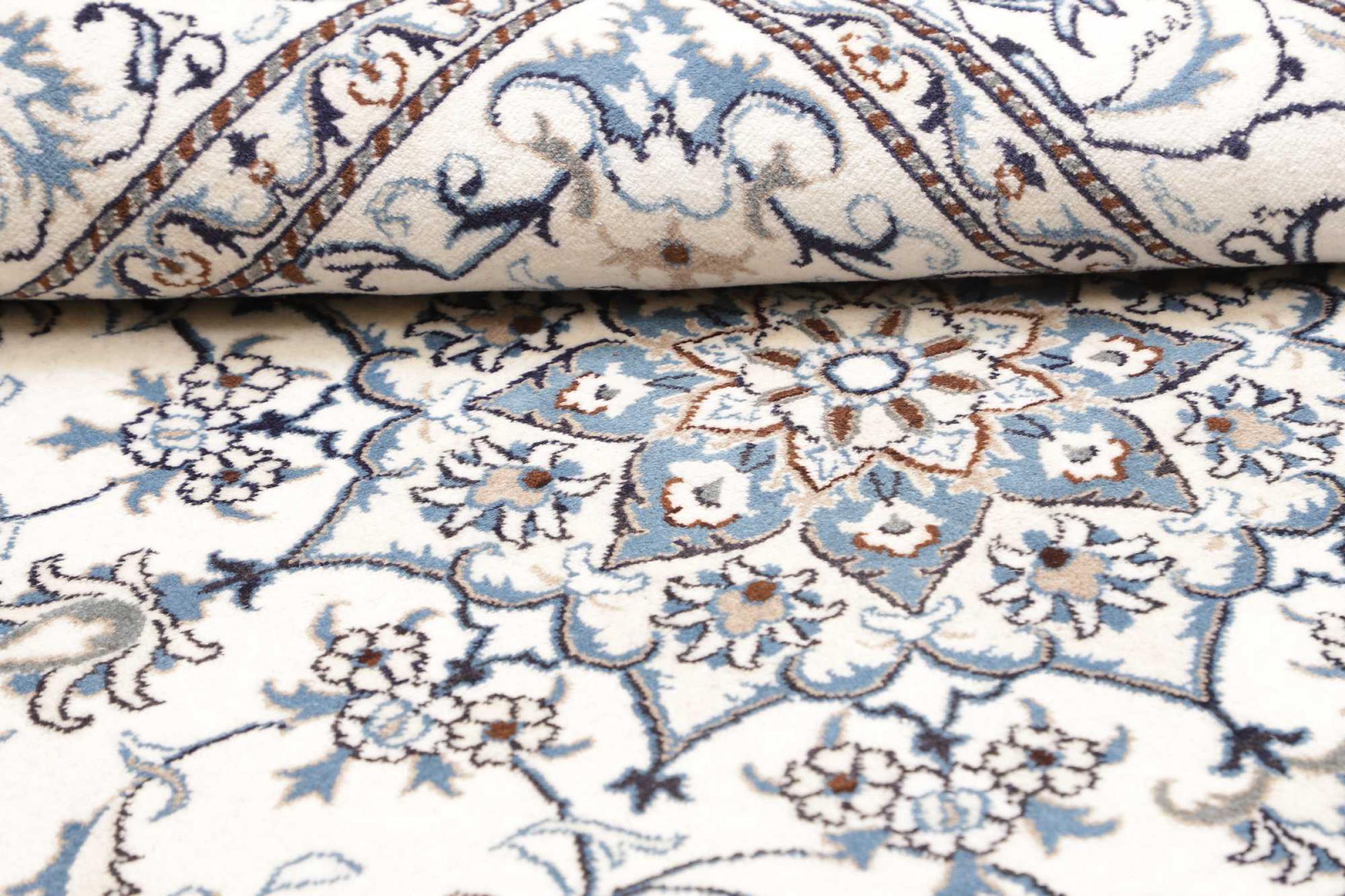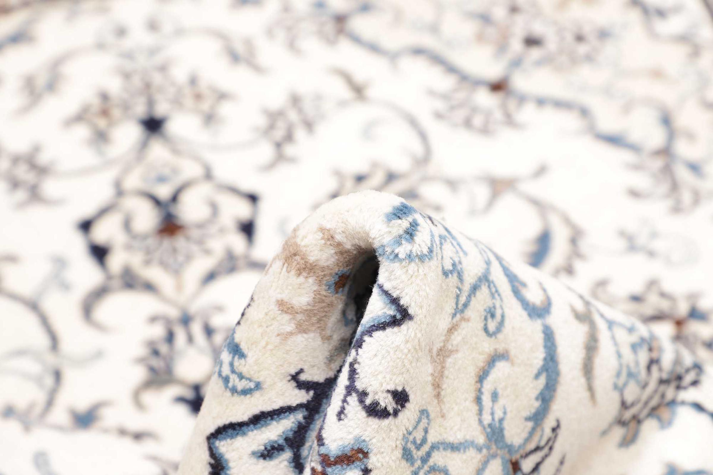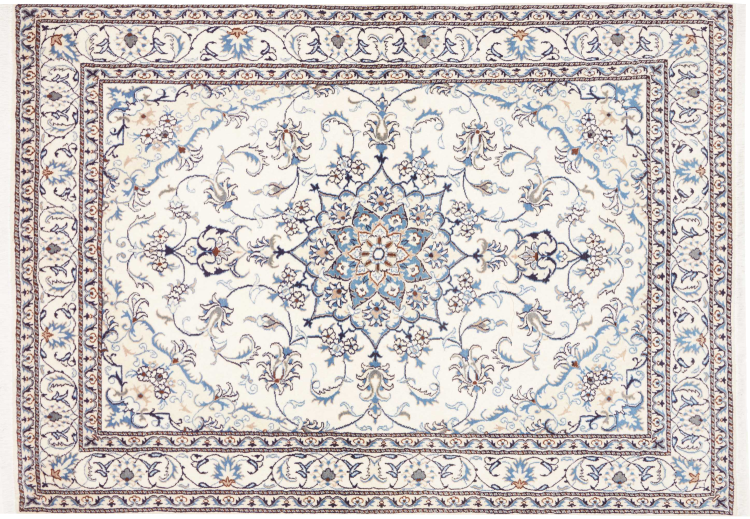 Las alfombras de la ciudad de Nain, en la frontera de uno de los mayores desiertos de Irán, están entre las alfombras persas más famosas del mundo. Su diseño típico es inconfundible con adornos florales, un medallón central y tonos beige y rojo o azul. Gracias a sus designaciones 4La, 6La, 9La y 12La, las sutilezas de una alfombra de Nain se pueden ver a simple vista. Cuanto más bajo sea el número "La", más alta es la densidad del nudo y por lo tanto más fina es la alfombra.