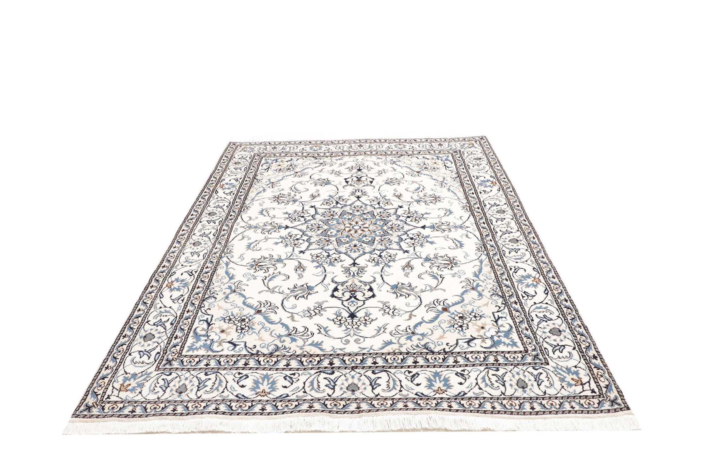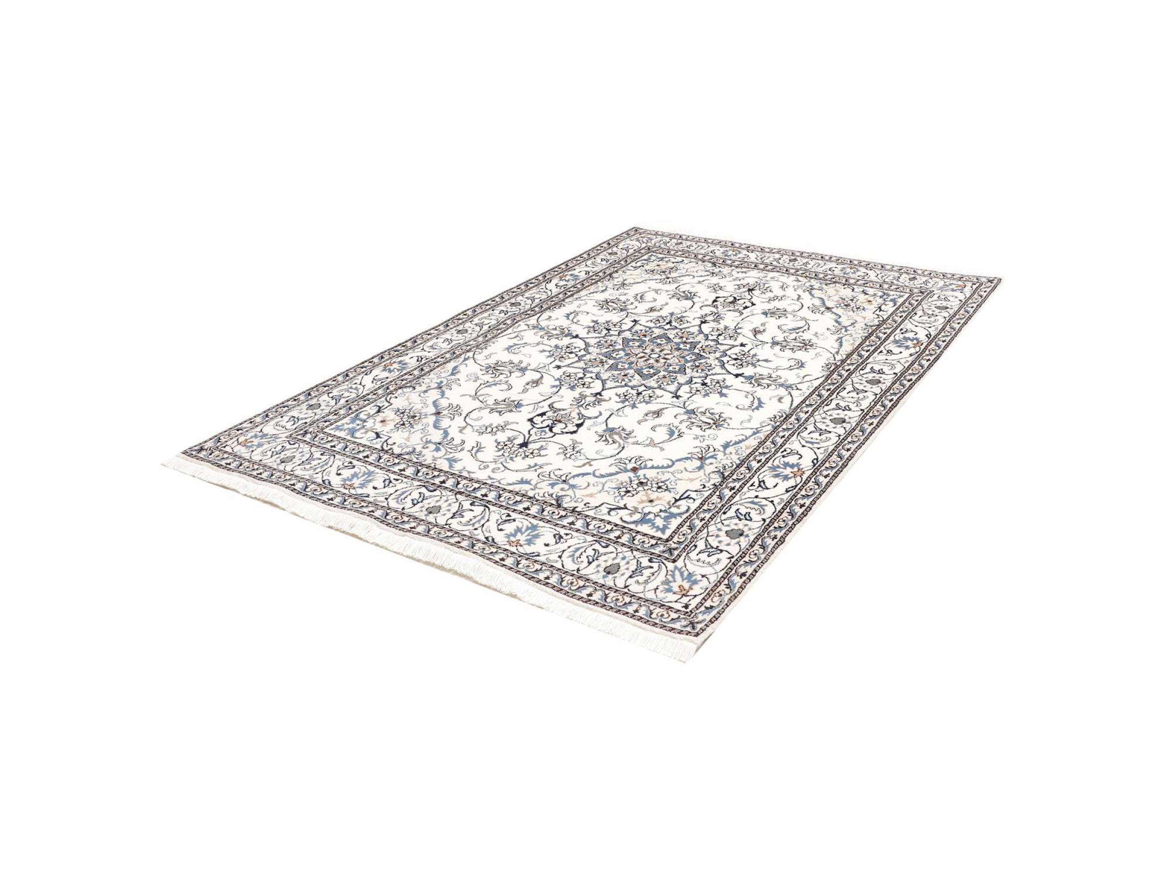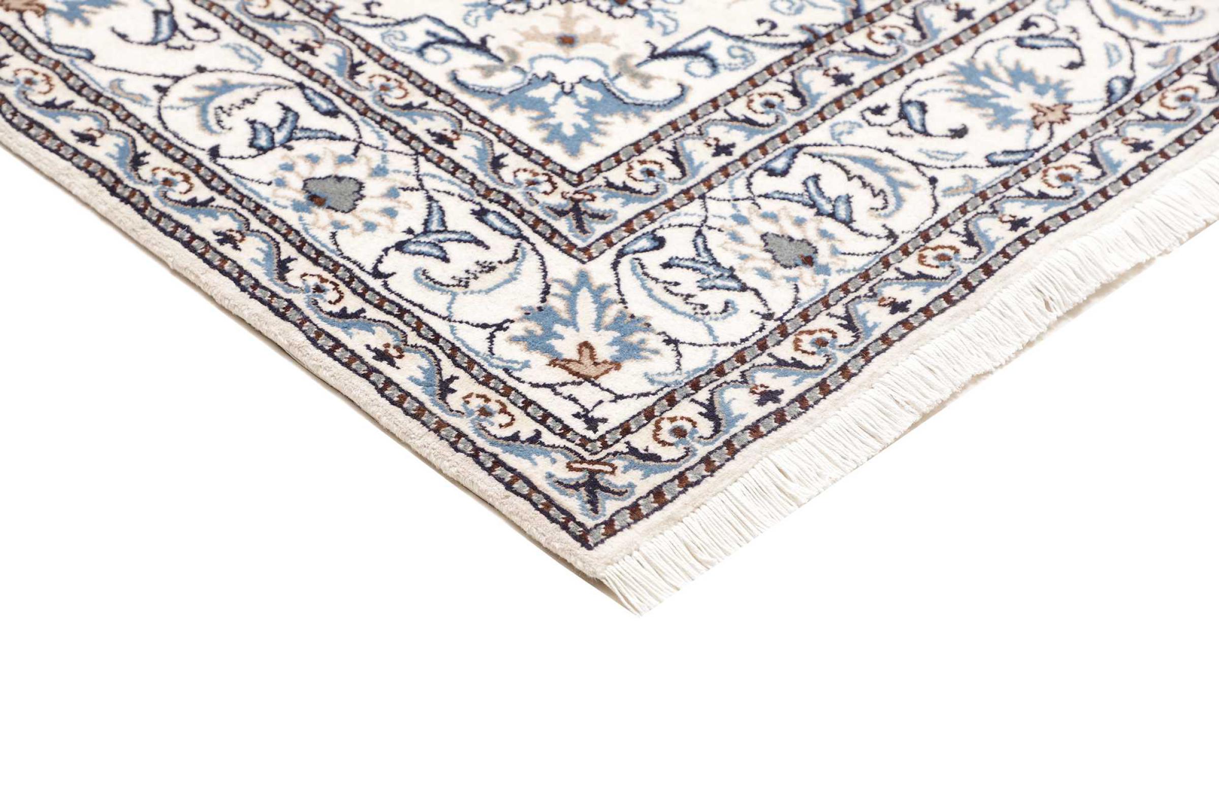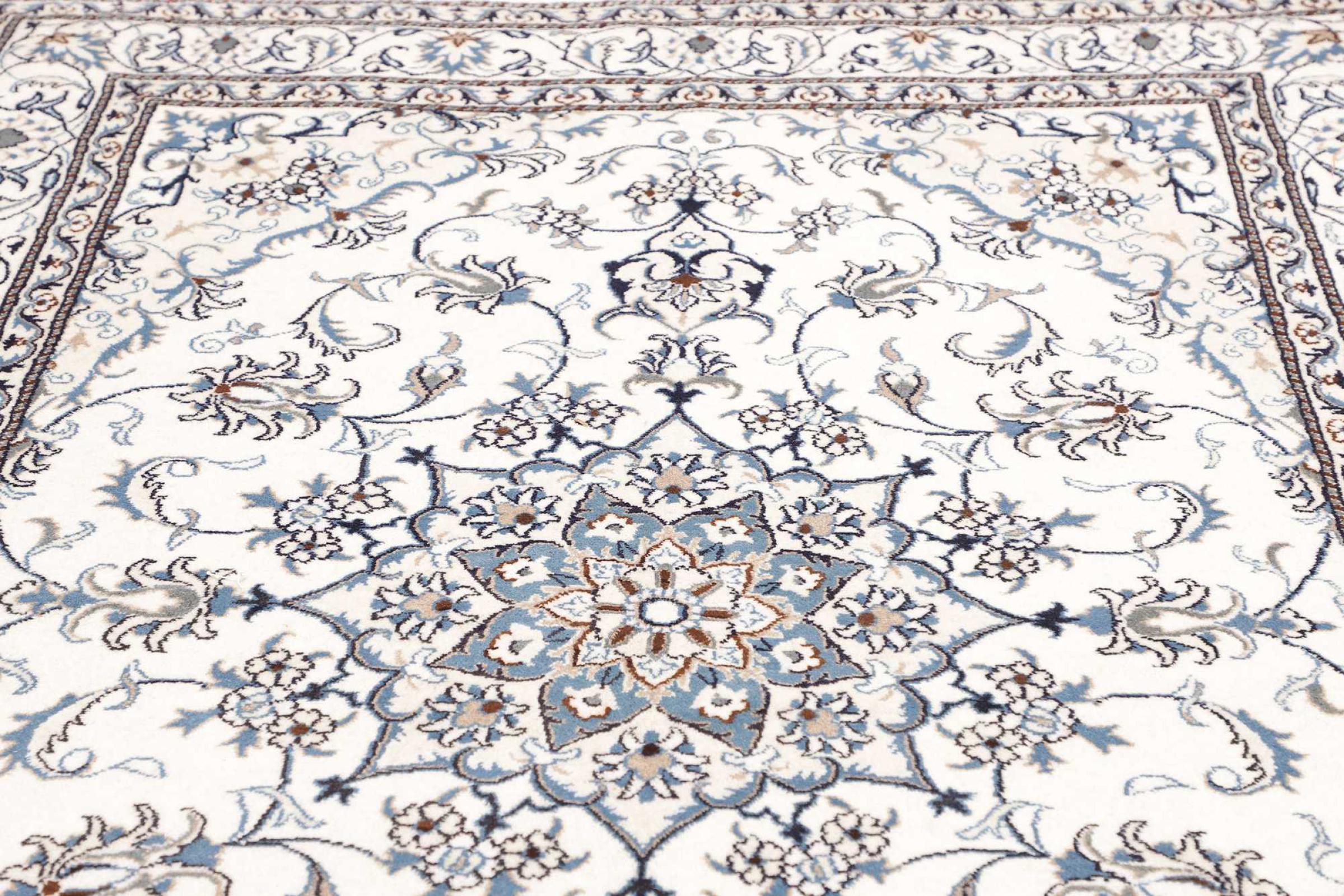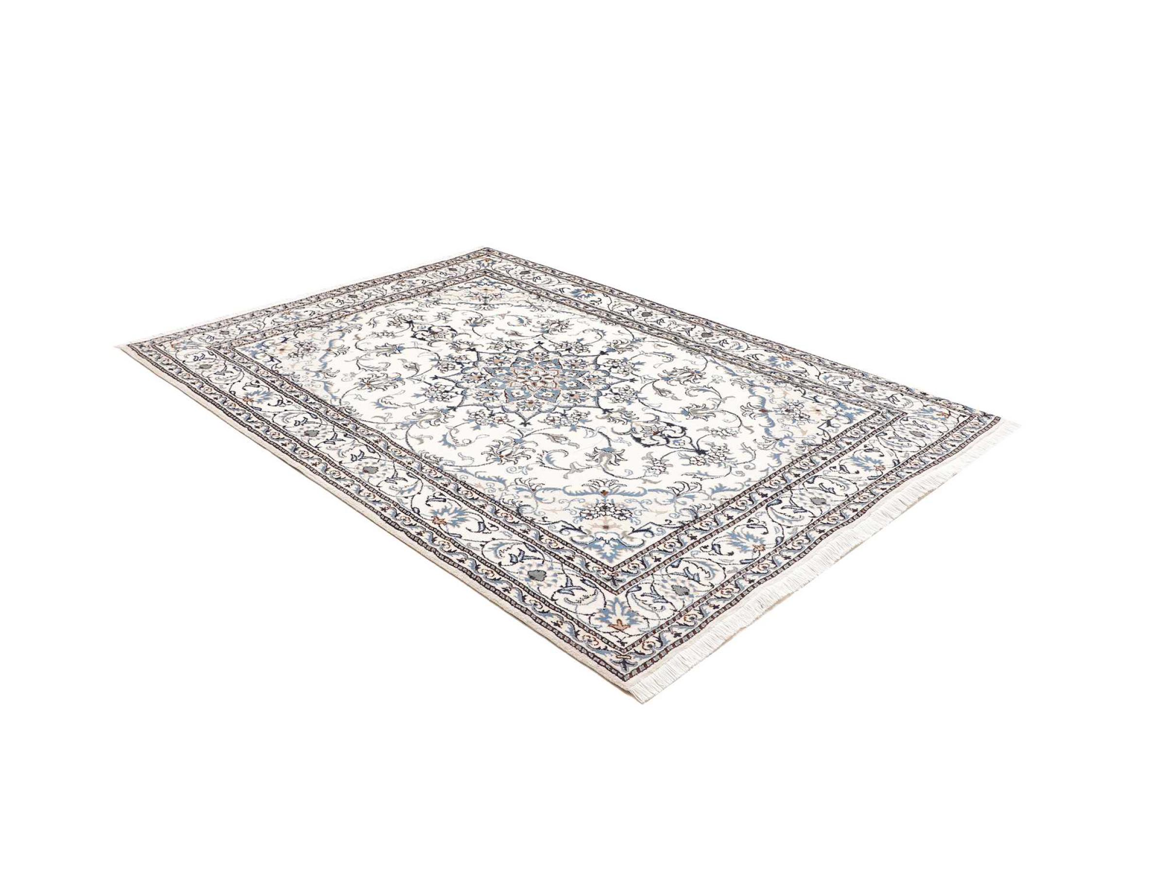 Las alfombras de la ciudad de Nain, en la frontera de uno de los mayores desiertos de Irán, están entre las alfombras persas más famosas del mundo. Su diseño típico es inconfundible con adornos florales, un medallón central y tonos beige y rojo o azul. Gracias a sus designaciones 4La, 6La, 9La y 12La, las sutilezas de una alfombra de Nain se pueden ver a simple vista. Cuanto más bajo sea el número "La", más alta es la densidad del nudo y por lo tanto más fina es la alfombra.