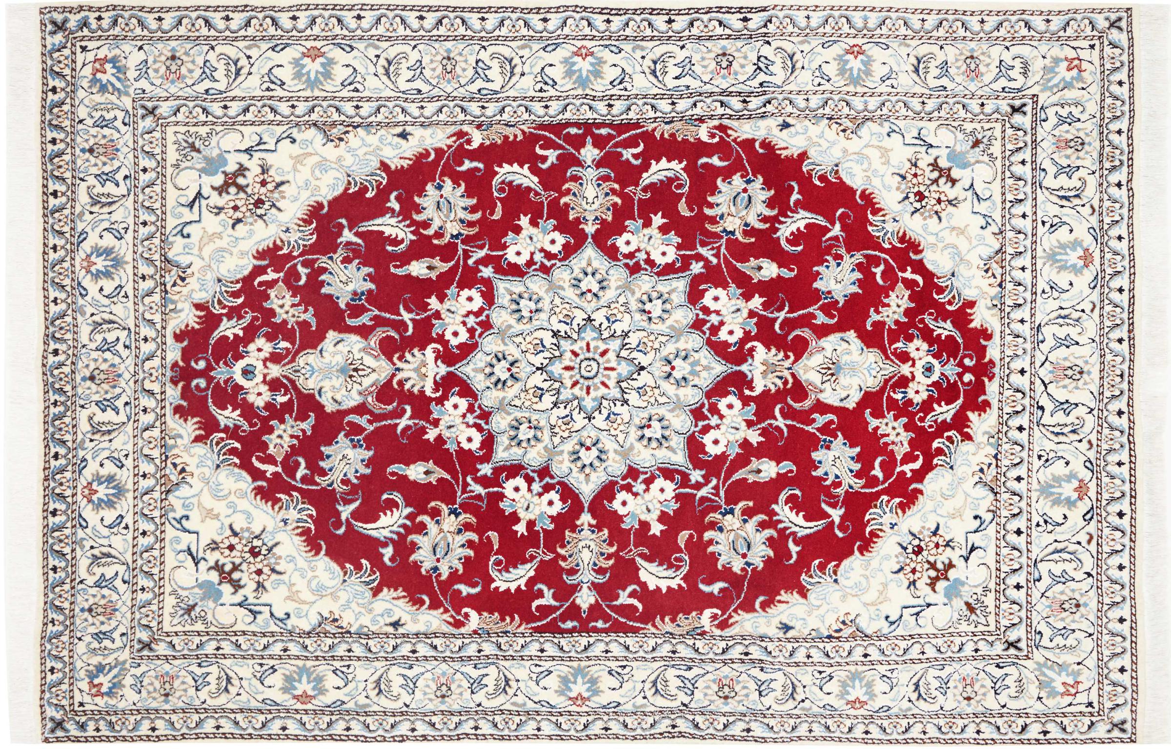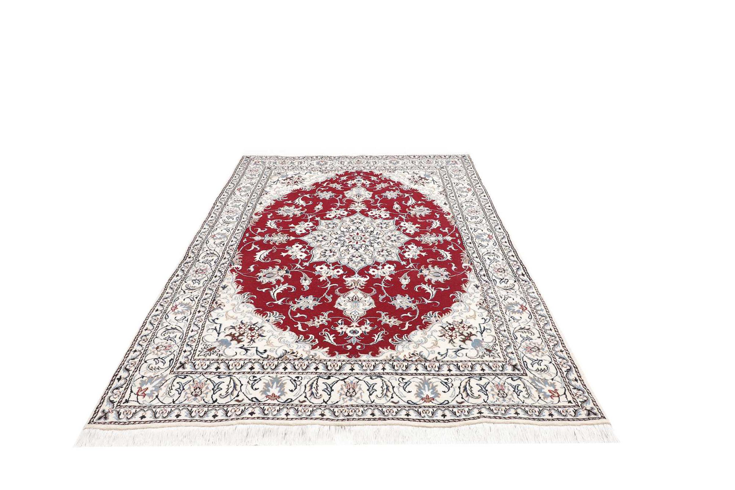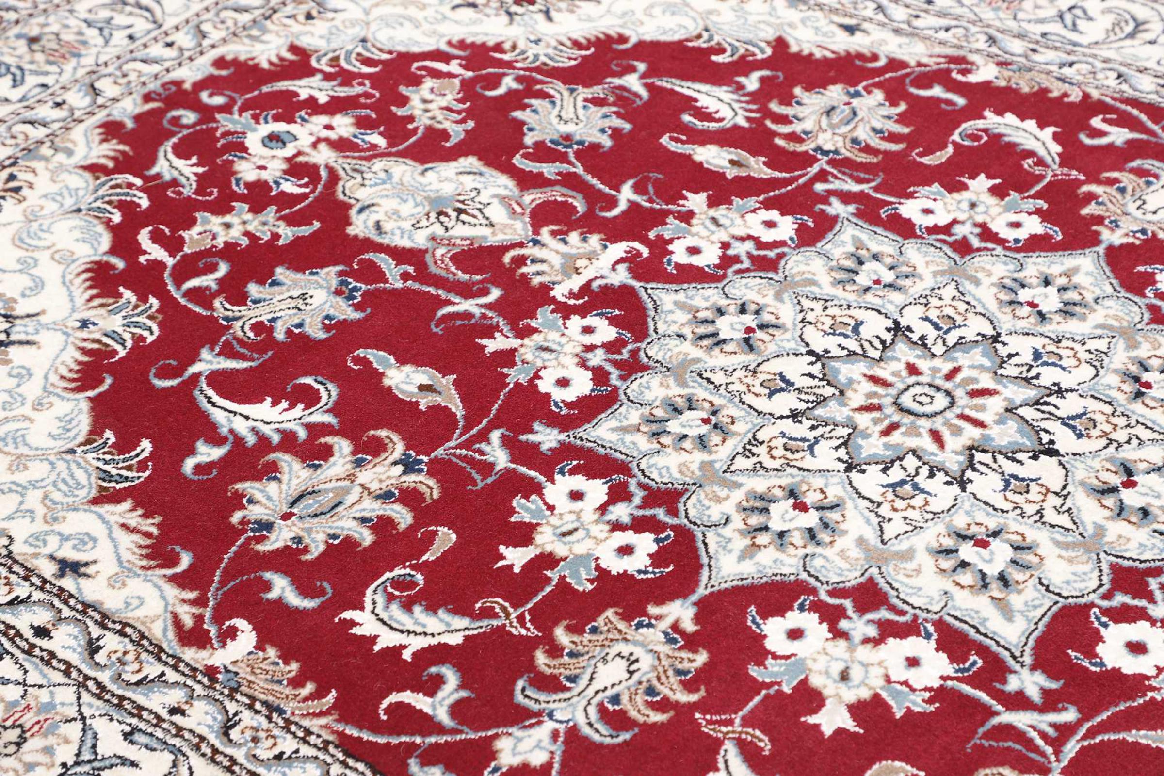Las alfombras de la ciudad de Nain, en la frontera de uno de los mayores desiertos de Irán, están entre las alfombras persas más famosas del mundo. Su diseño típico es inconfundible con adornos florales, un medallón central y tonos beige y rojo o azul. Gracias a sus designaciones 4La, 6La, 9La y 12La, las sutilezas de una alfombra de Nain se pueden ver a simple vista. Cuanto más bajo sea el número "La", más alta es la densidad del nudo y por lo tanto más fina es la alfombra.